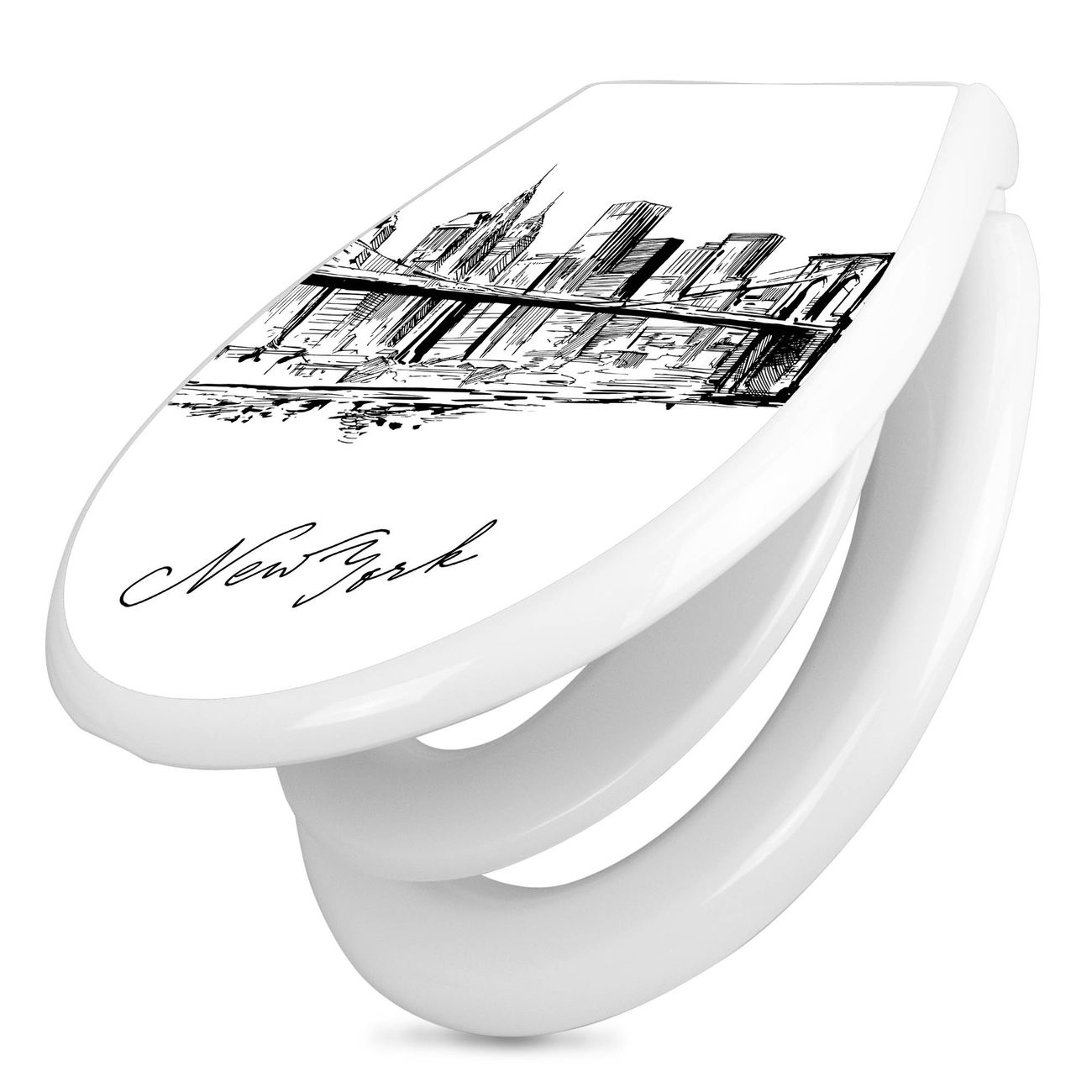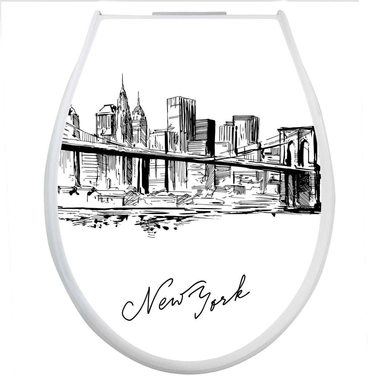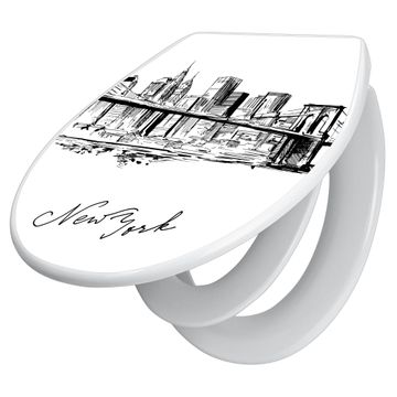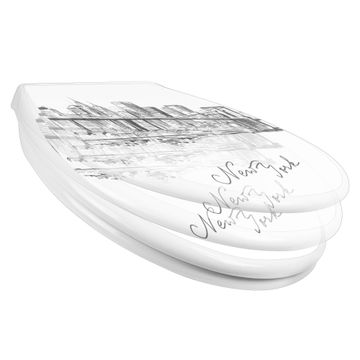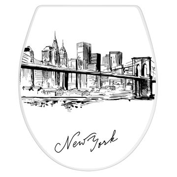 Toilettendeckel weiß mit Absenkautomatik Motiv New York Skizze