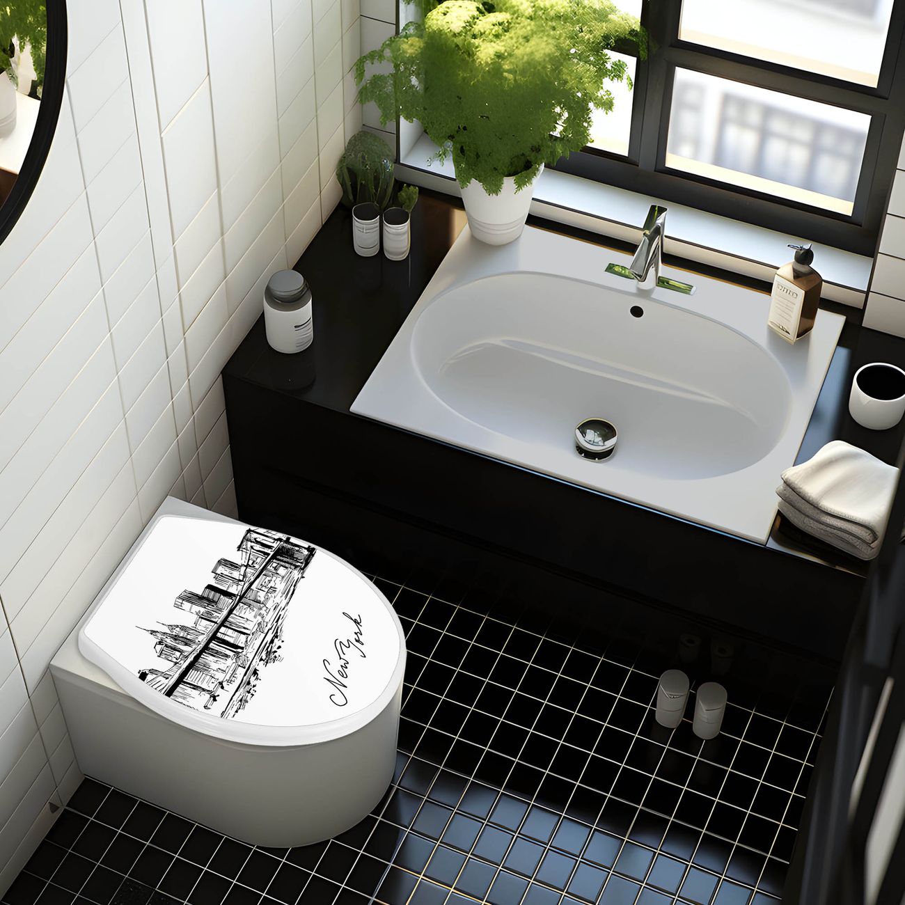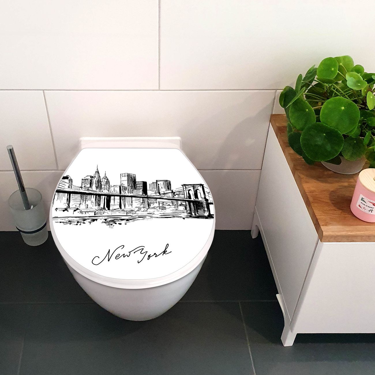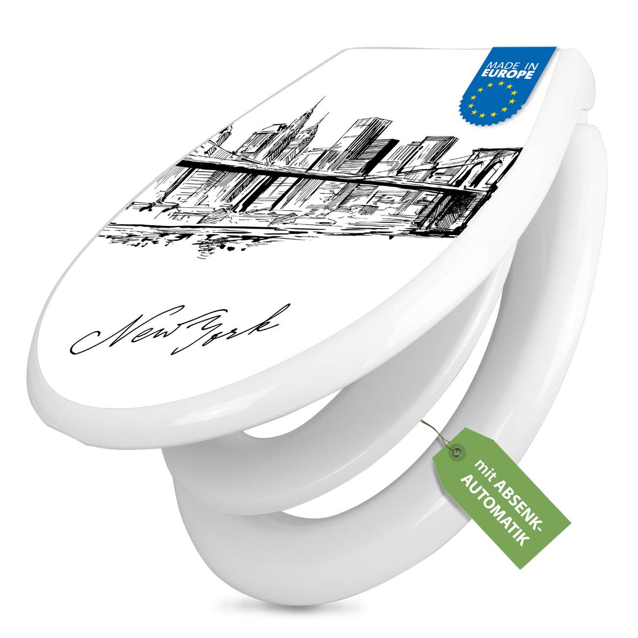 Toilettendeckel weiß mit Absenkautomatik Motiv New York Skizze