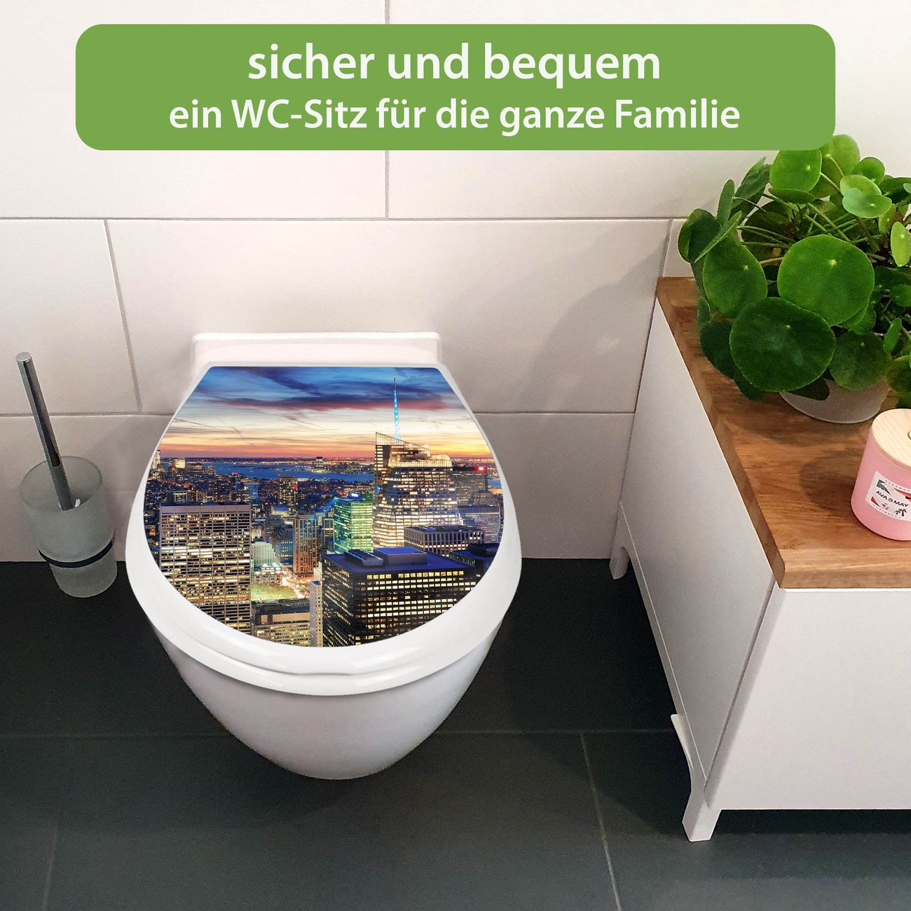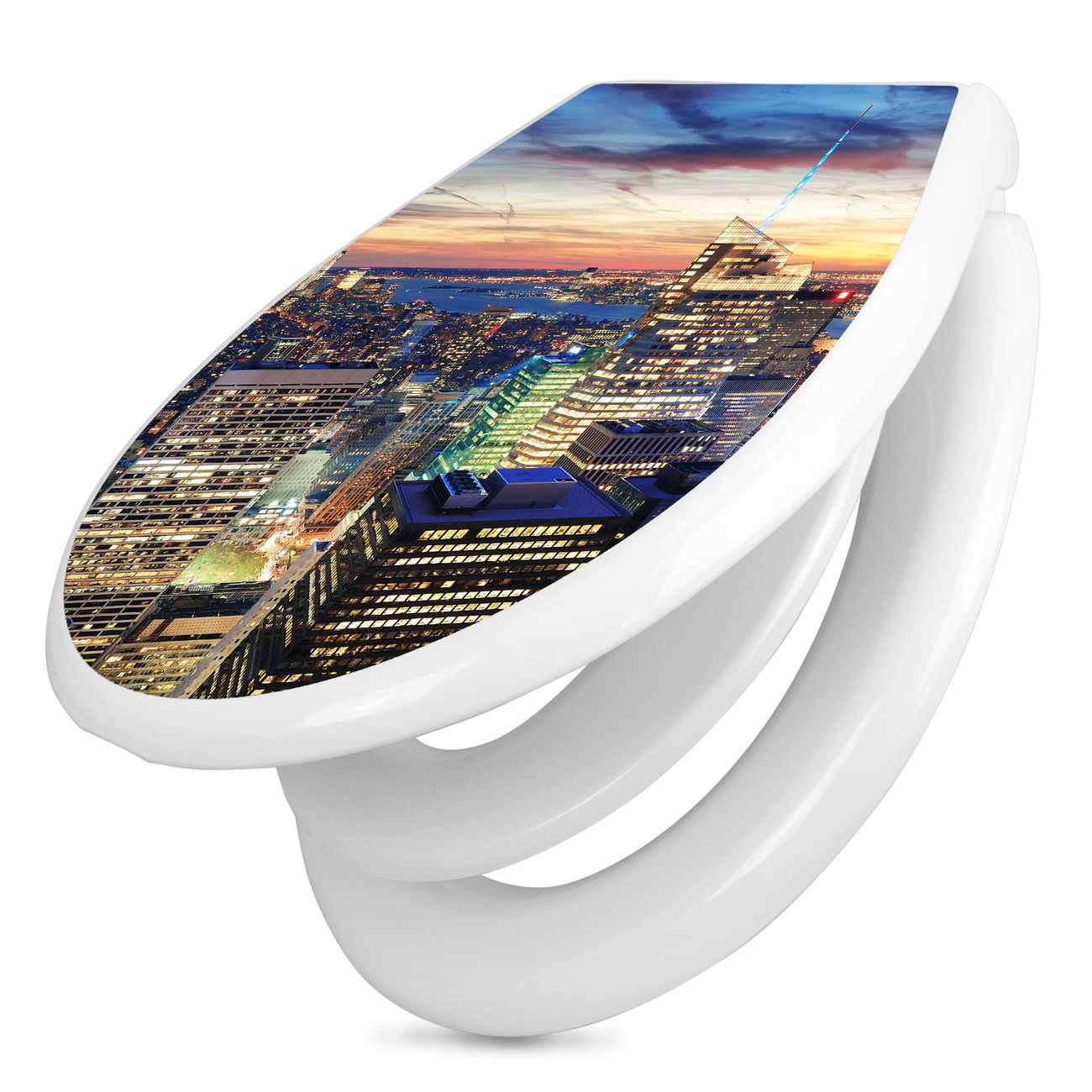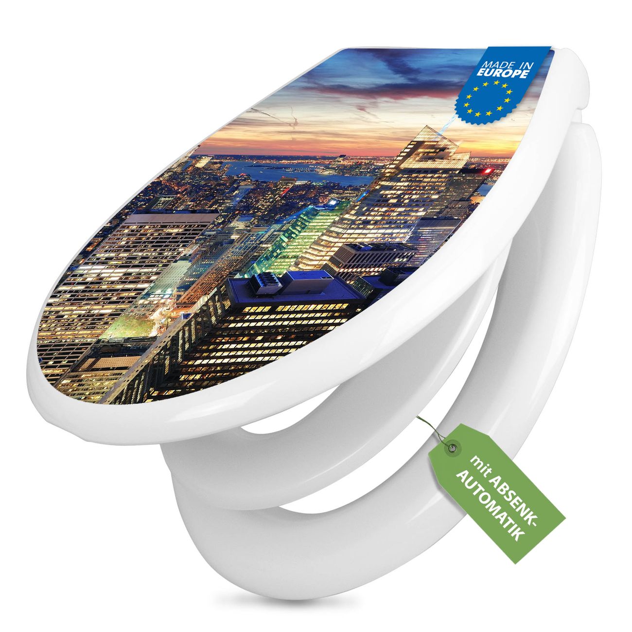 Toilettendeckel weiß mit Absenkautomatik Motiv New York Sunset