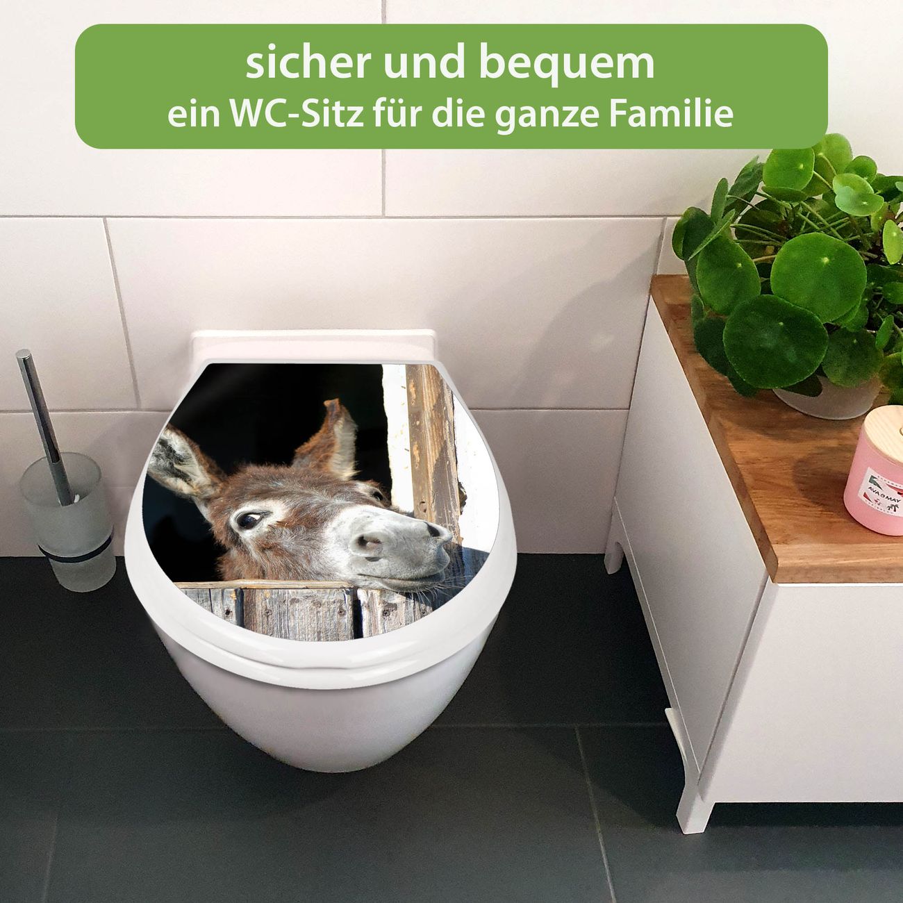 FUNKTION:Mit dem banjado Familien WC Sitz mit Absenkautomatik und dem Motiv Motiv Nicki verbinden Sie Design mit Funktionalität. Sie erhalten den Toilettendeckel in bewährt guter Qualität mit Montagematerial passend auf alle Euro-WC-Becken. Die Gesamtgröße beträgt 37,1cm x 44,9cm x 5cm, die Grundfarbe ist weiß.</p> DESIGN:Der Klodeckel in weiß mit Motiv Motiv Nicki hat eine ansprechende Optik, eine besondere Form und ist sehr stabil. Das Motiv besteht aus einer farbbrillianten Motivfolie, die durch ein Schutzlaminat zusätzlich vor Kratzern schützt. Der integrierte Kindersitz fügt sich harmonisch ein. DETAILS:Der Toilettensitz mit Soft Close besteht aus hochwertigem Polypropylen, ist geruchlos, ungiftig und kann mit handelsüblicher Seife gereinigt werden. Die Montage kann von von oben oder von unten erfolgen und ist kinderleicht. NUTZEN:Mit Hilfe der detaillierten Aufbauanleitung ermöglichen wir eine schnelle und unkomplizierte Montage. Die banjado Klobrille ist universell geeignet für alle Euro-WC-Schüsseln. Der Kindersitz kann unkompliziert entfernt werden. BANJADO:Ihr WC-Deckel wird in Sachsen in einer kleinen Manufaktur von Hand veredelt. Die Motivfolie ist lösungsmittelfrei und schutzlaminiert für einen langen Halt. Wir wünschen viel Freude bei der Auswahl eines schönen Motivs.