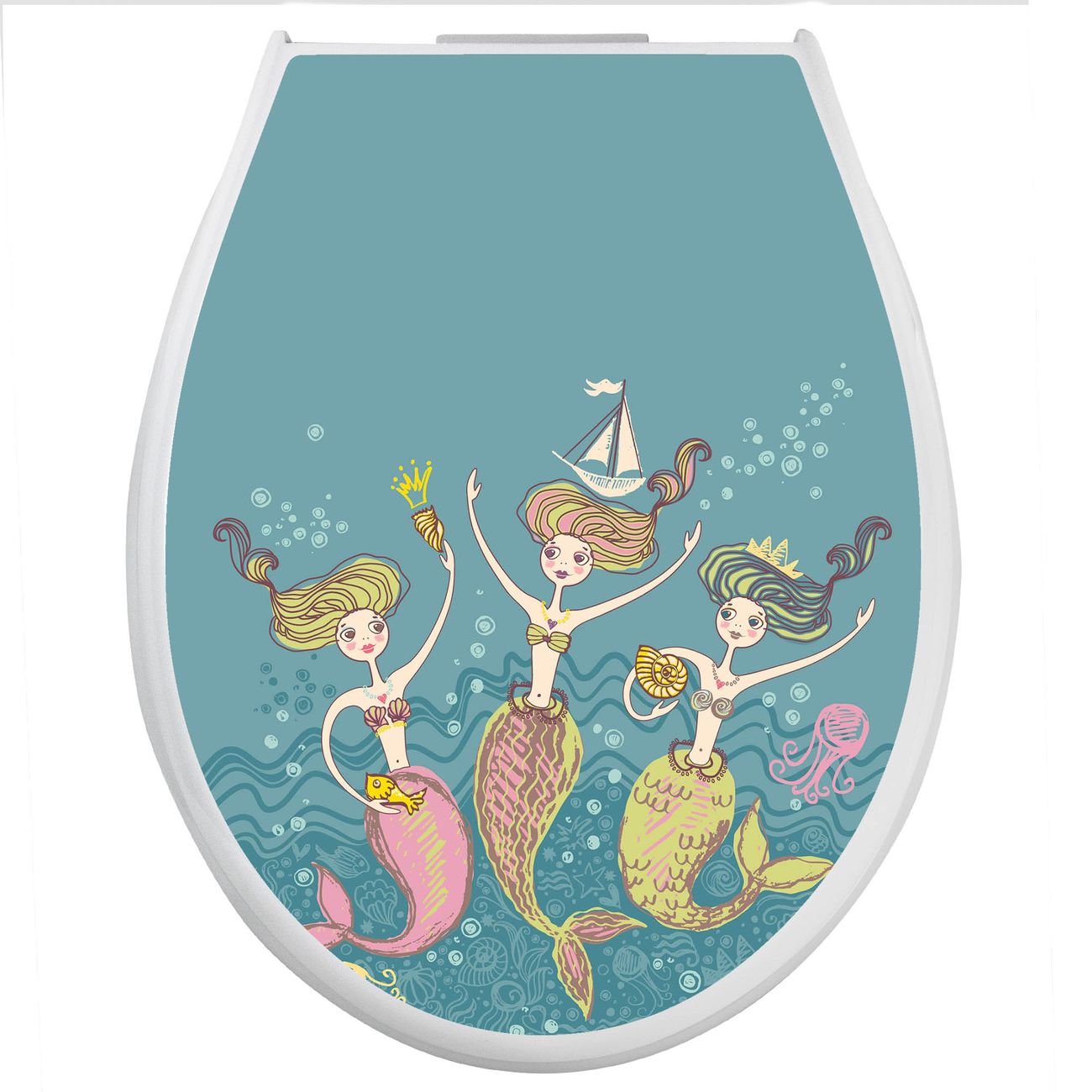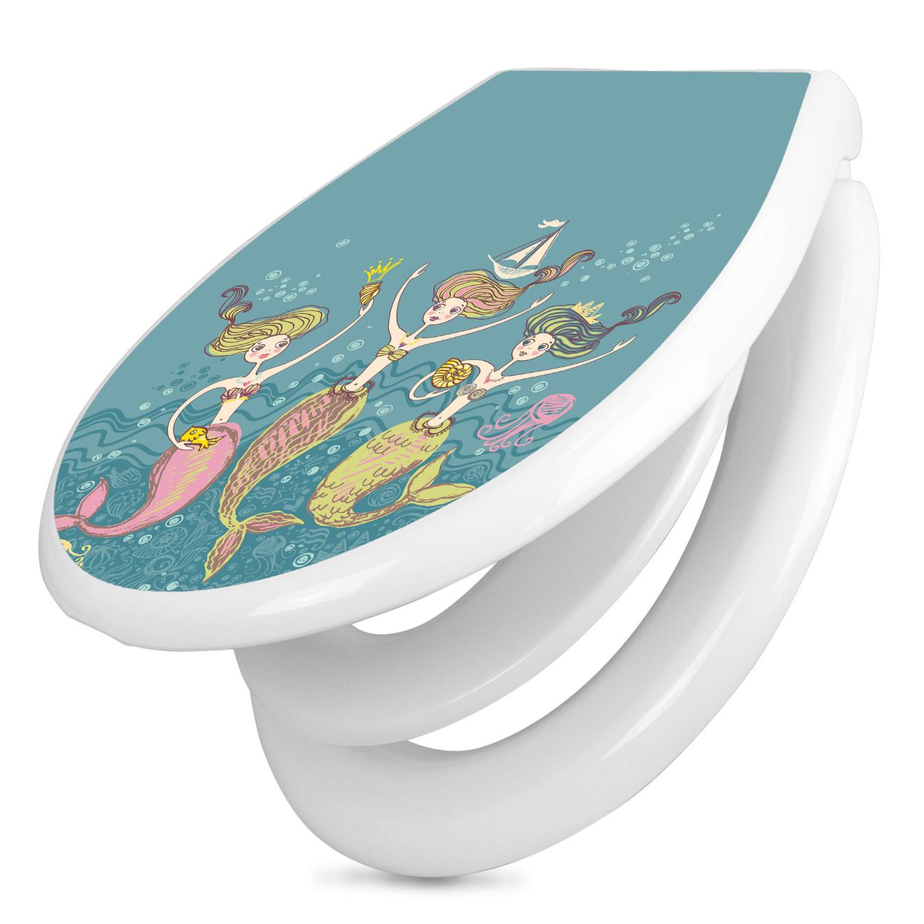 Toilettendeckel weiß mit Absenkautomatik Motiv Nixen
