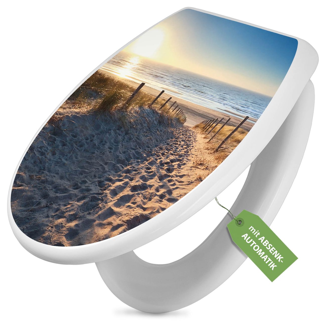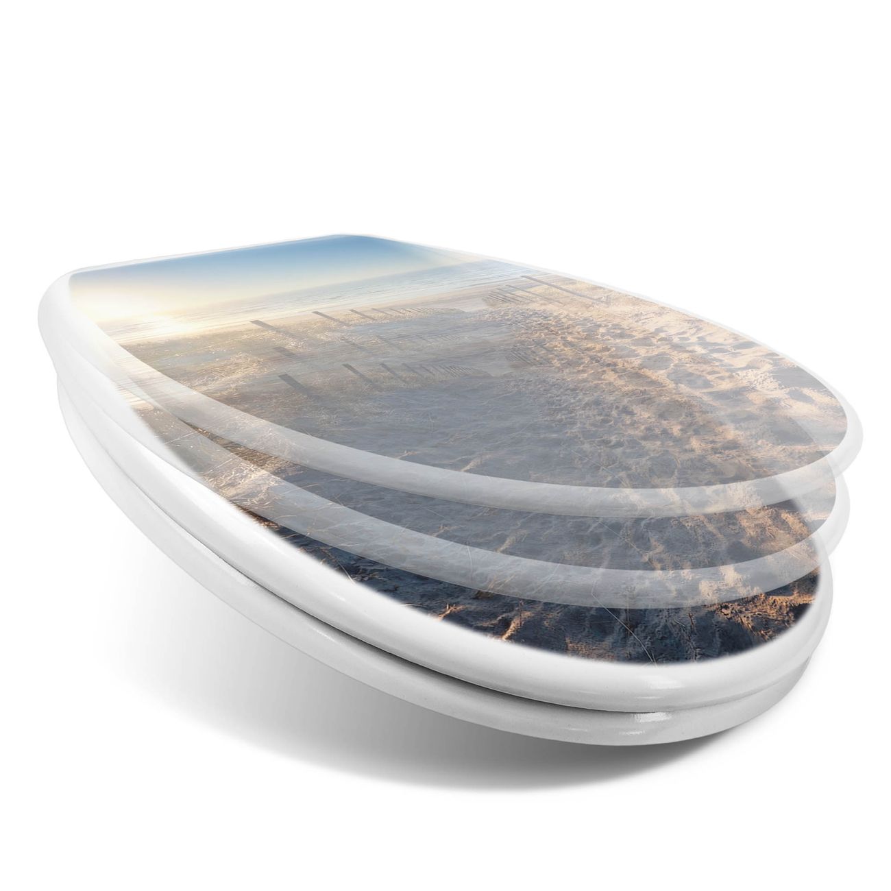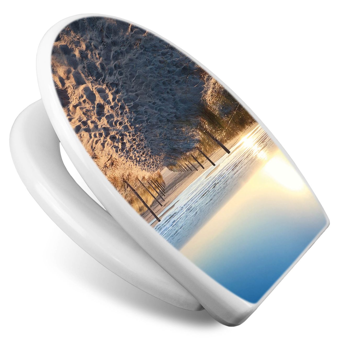 Toilettendeckel weiß mit Absenkautomatik Motiv Nordseestrand