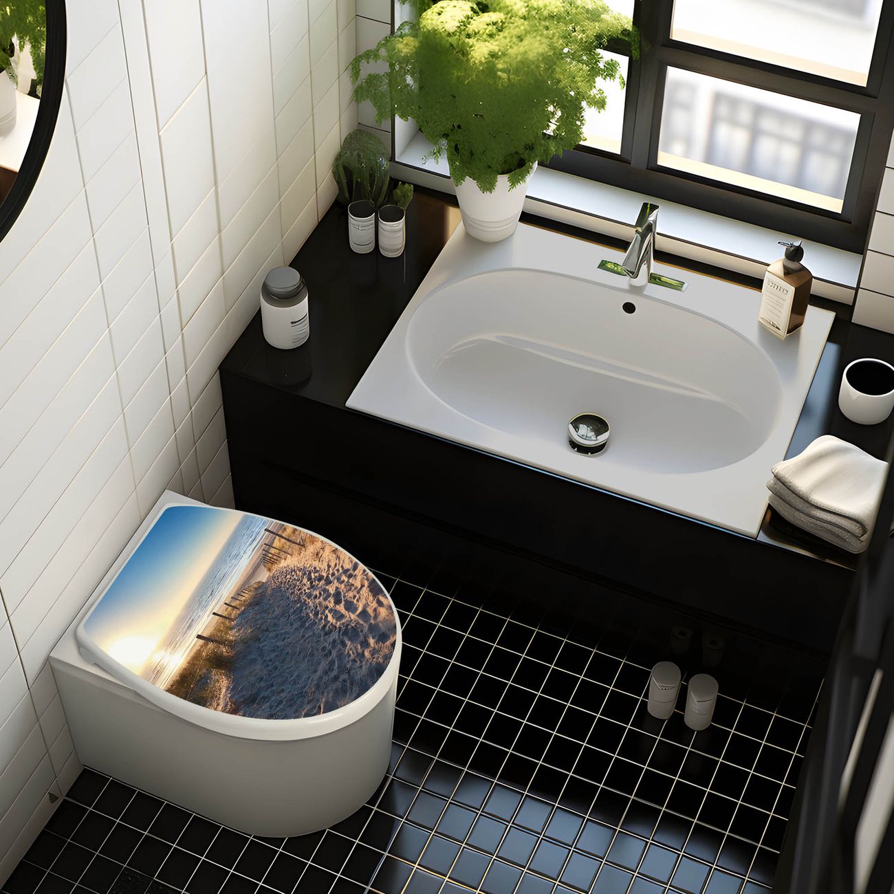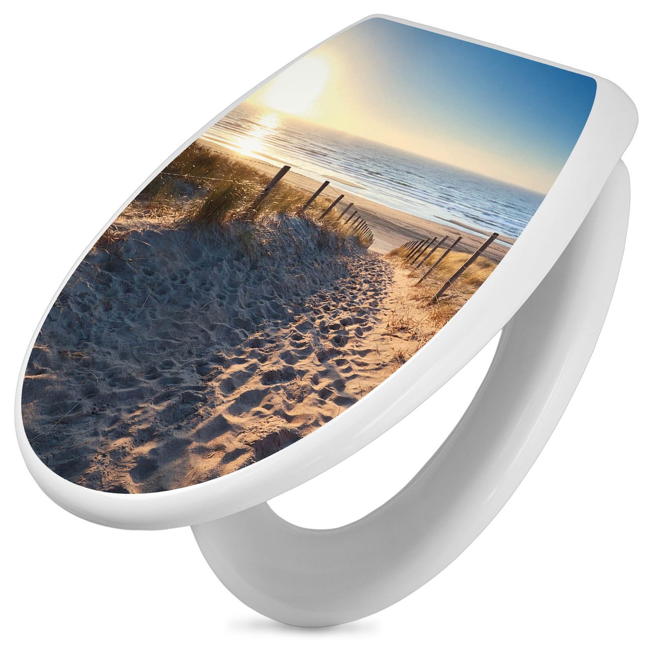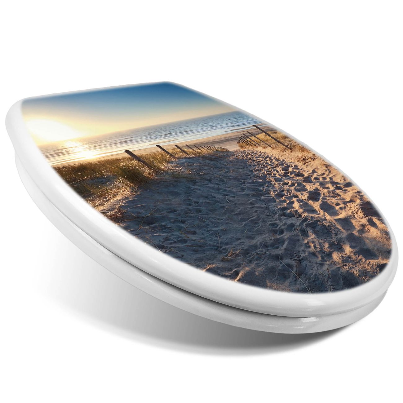 Toilettendeckel weiß mit Absenkautomatik Motiv Nordseestrand
