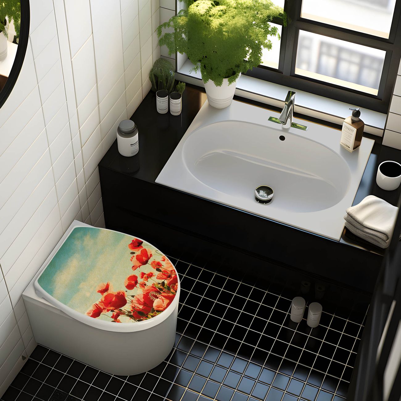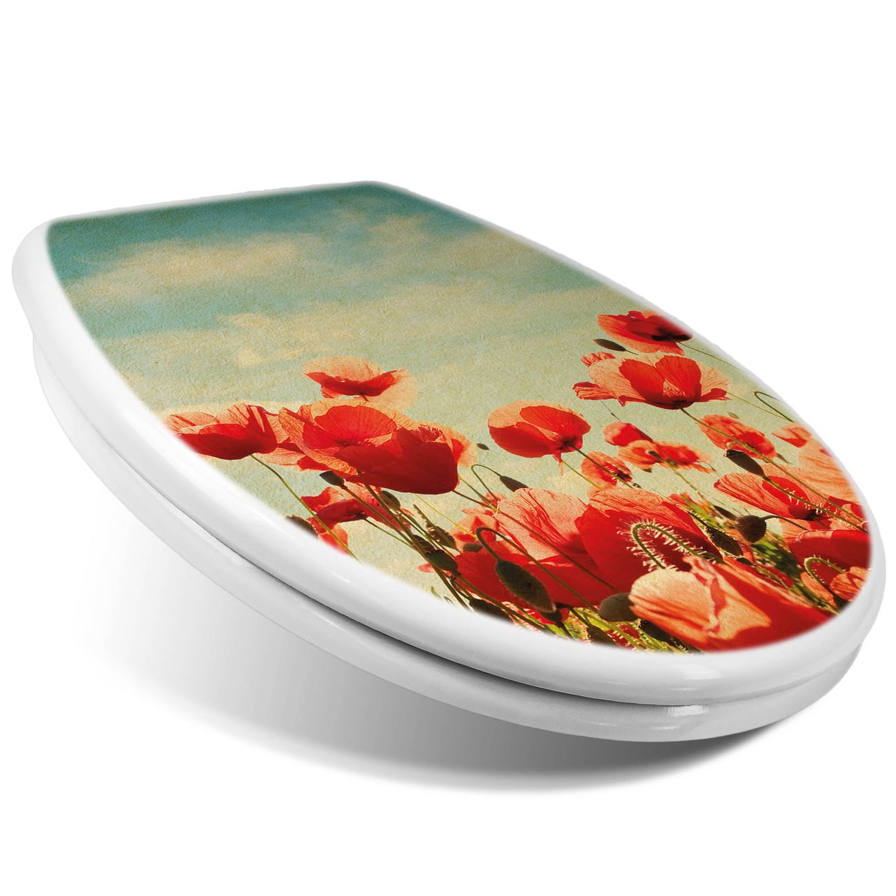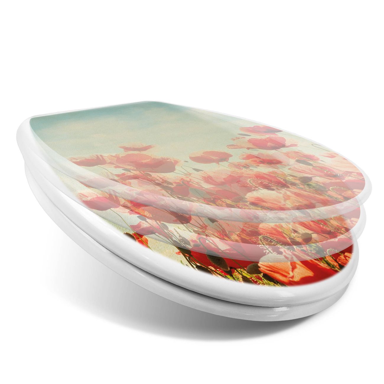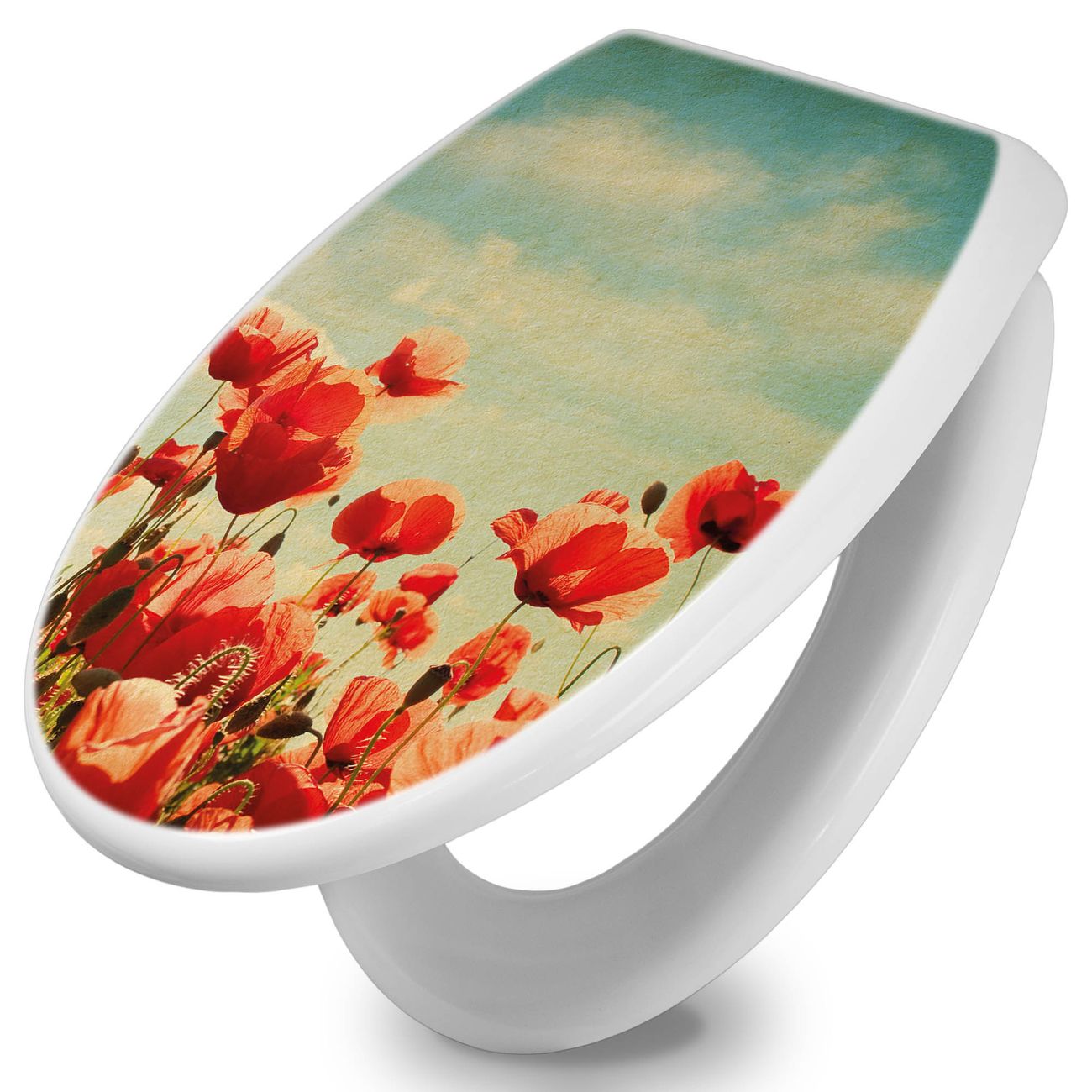 Toilettendeckel weiß mit Absenkautomatik Motiv Oktobermohn