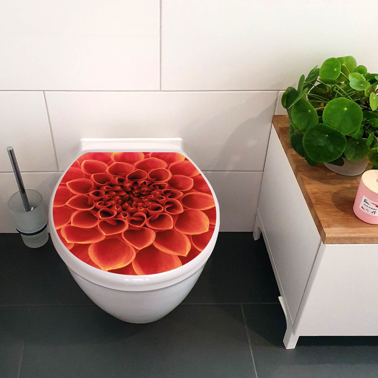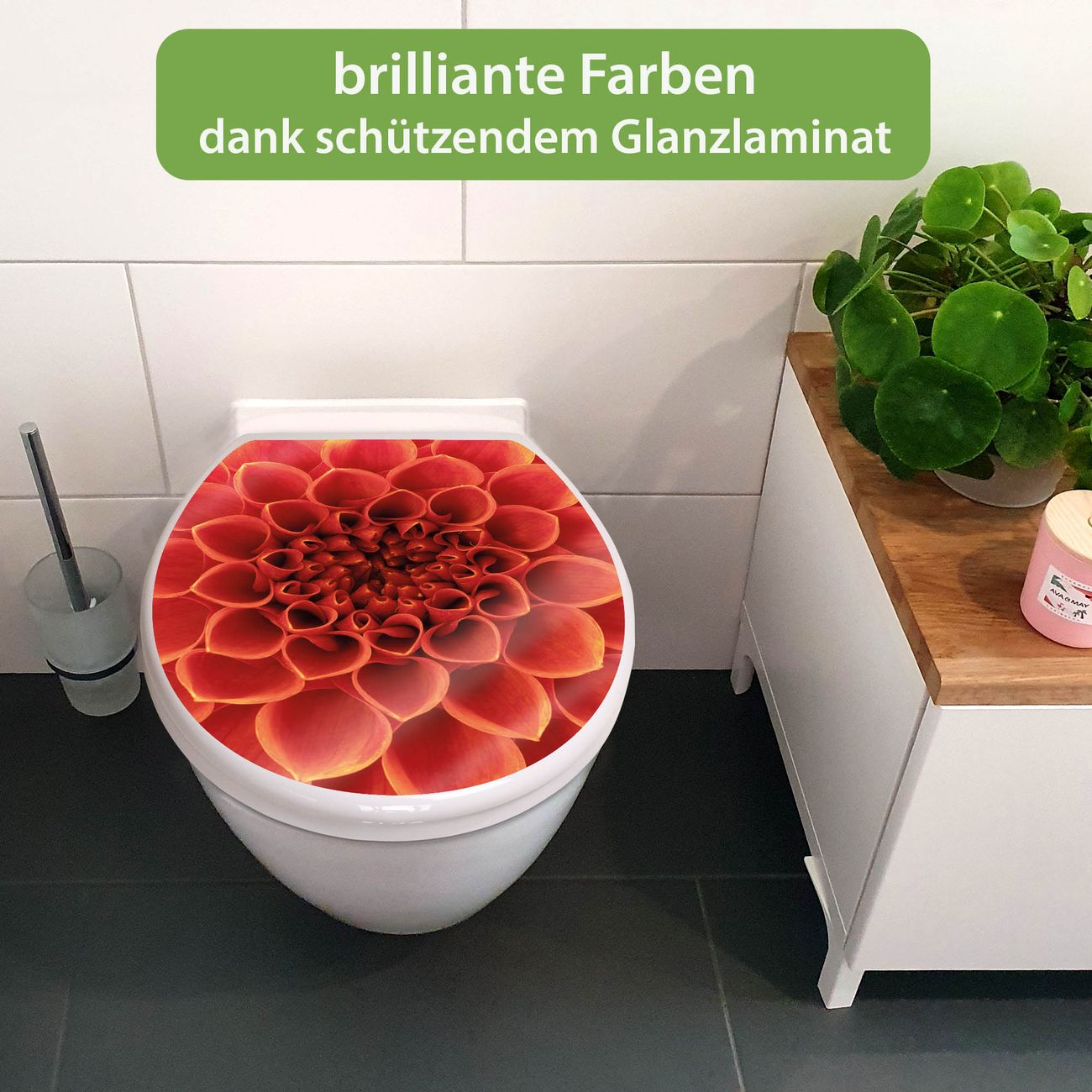 Toilettendeckel weiß mit Absenkautomatik Motiv Orange Chrysantheme