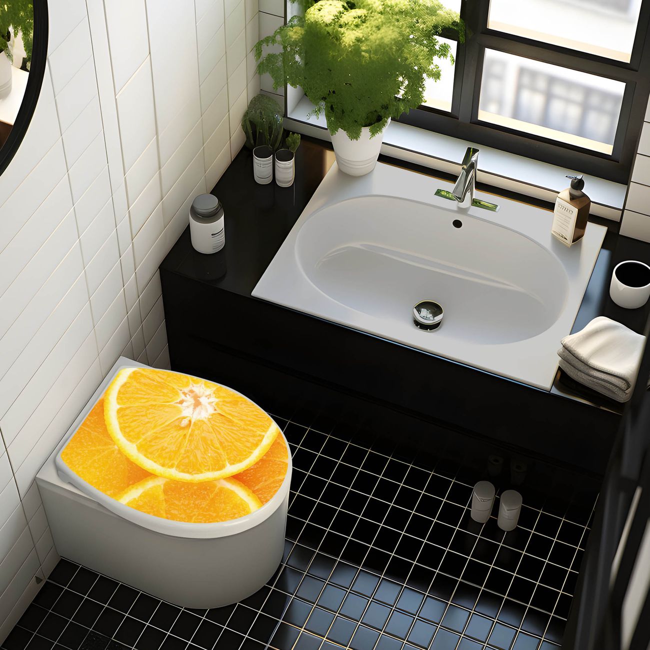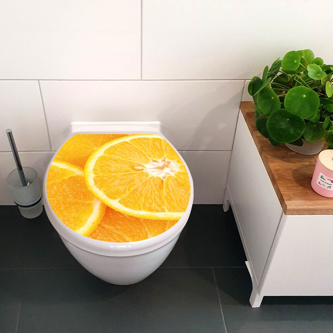 Toilettendeckel weiß mit Absenkautomatik Motiv Orangenscheiben