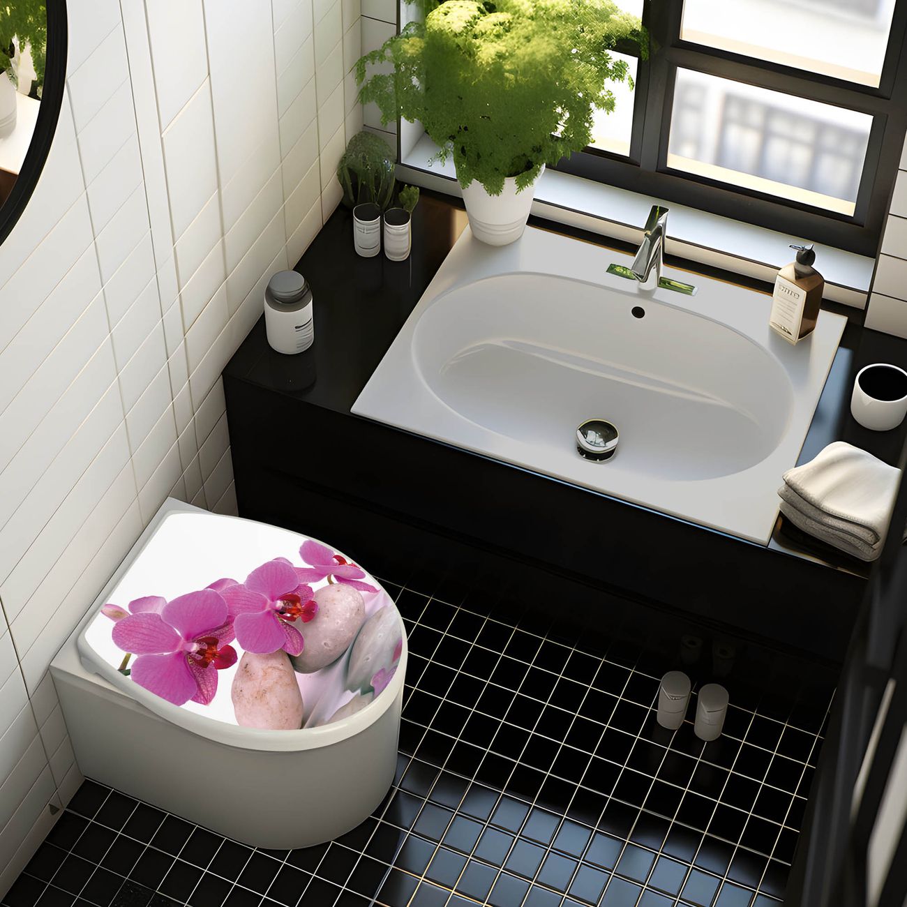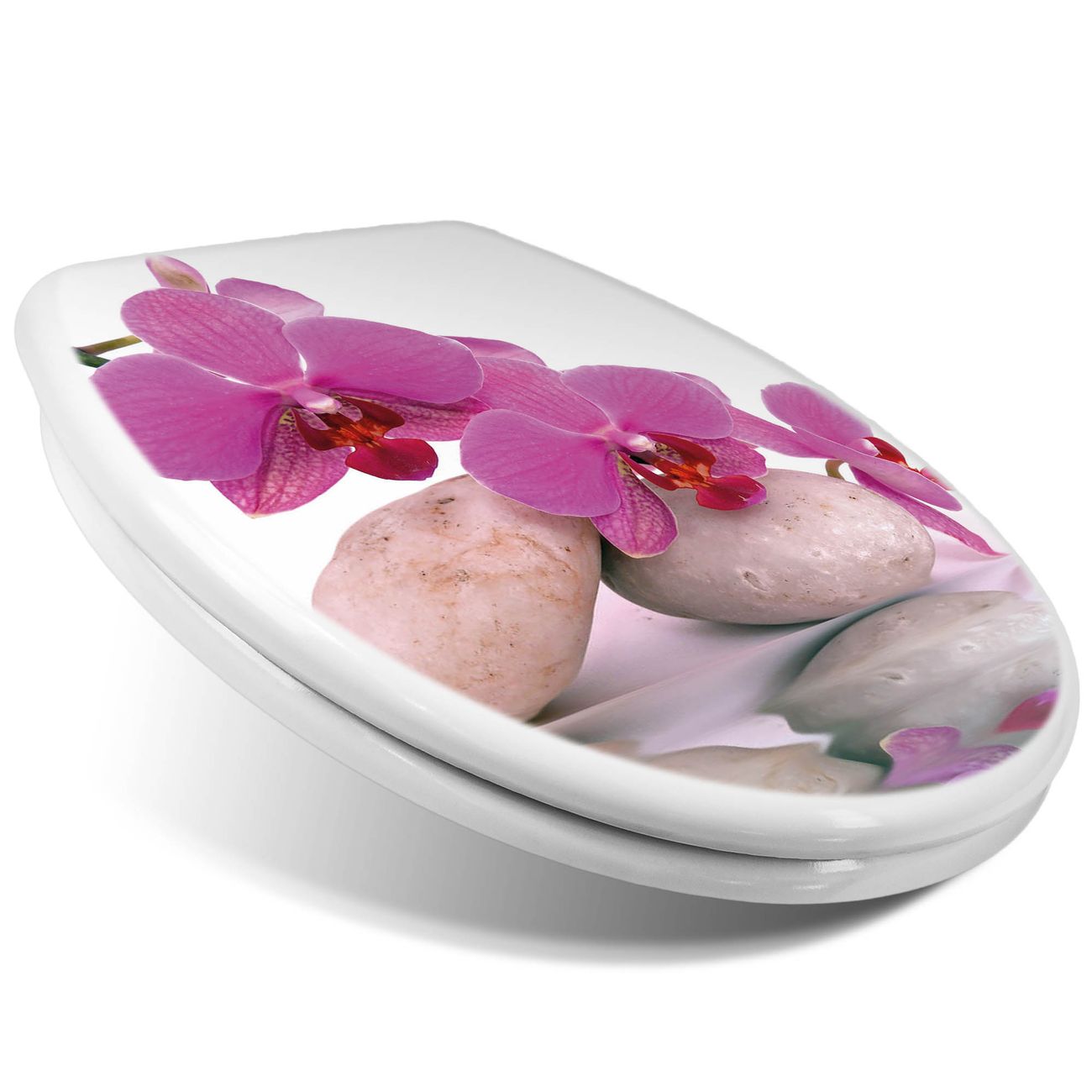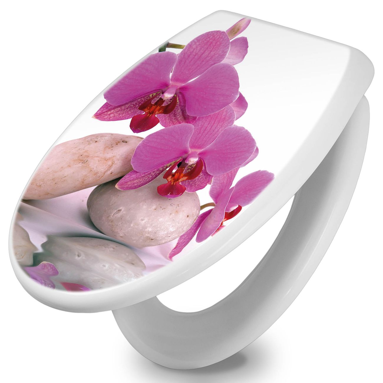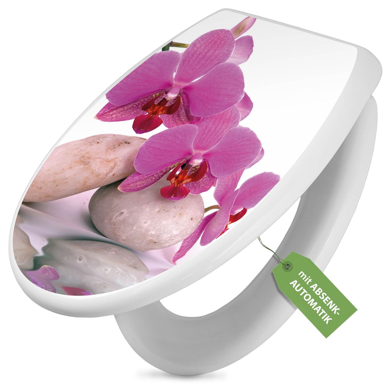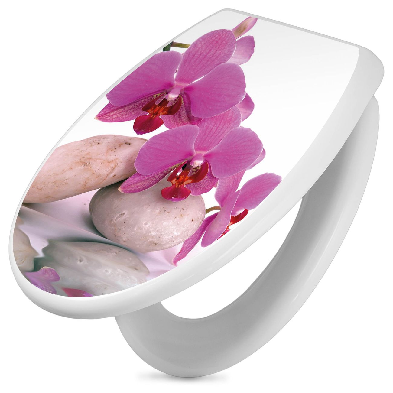 Toilettendeckel weiß mit Absenkautomatik Motiv Orchidee