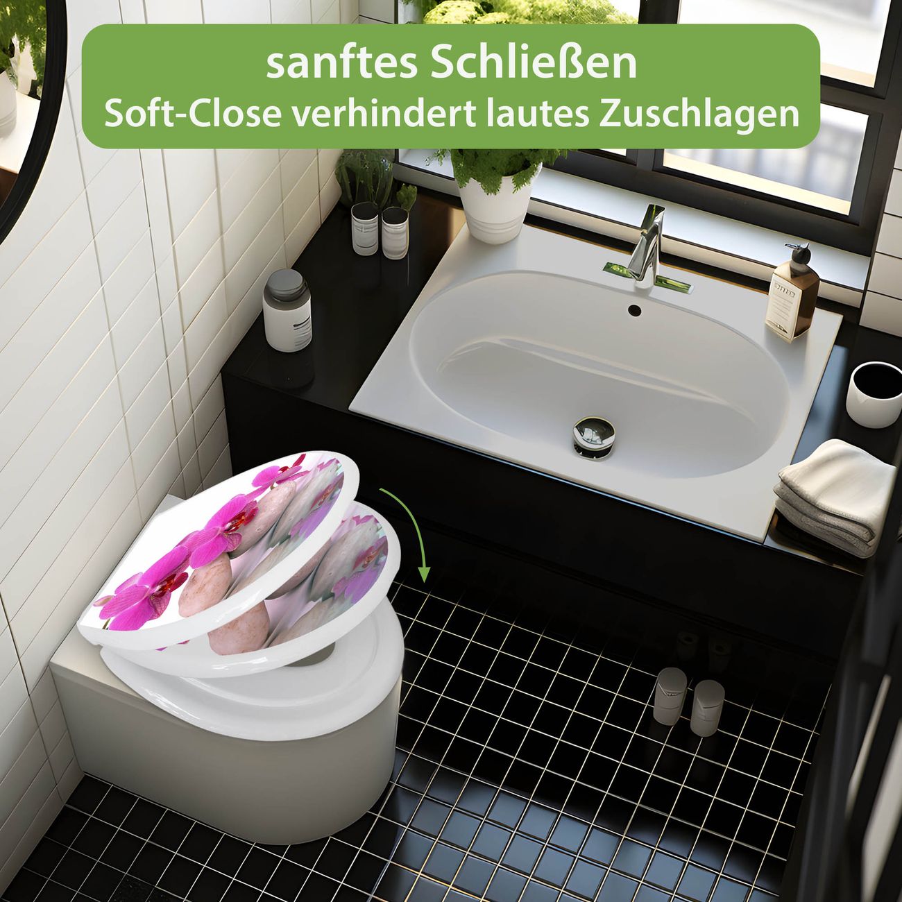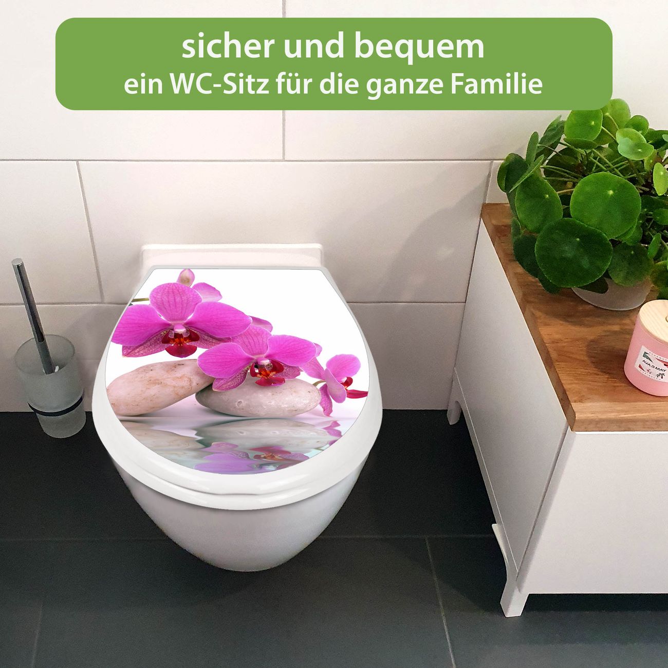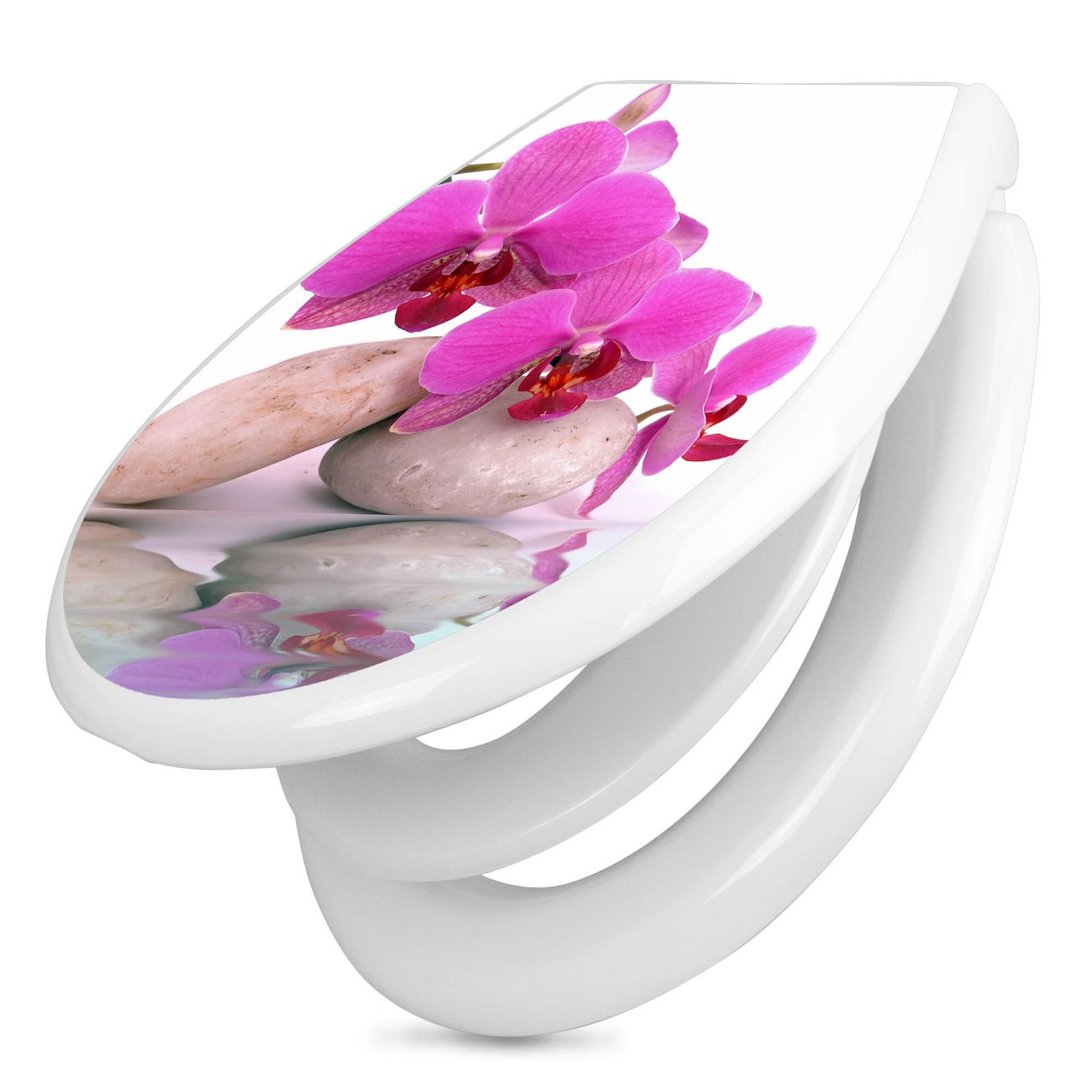 Toilettendeckel weiß mit Absenkautomatik Motiv Orchidee