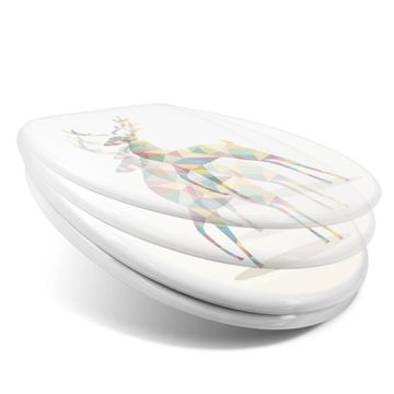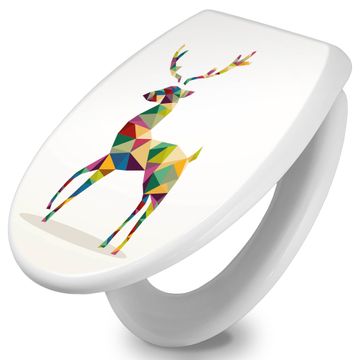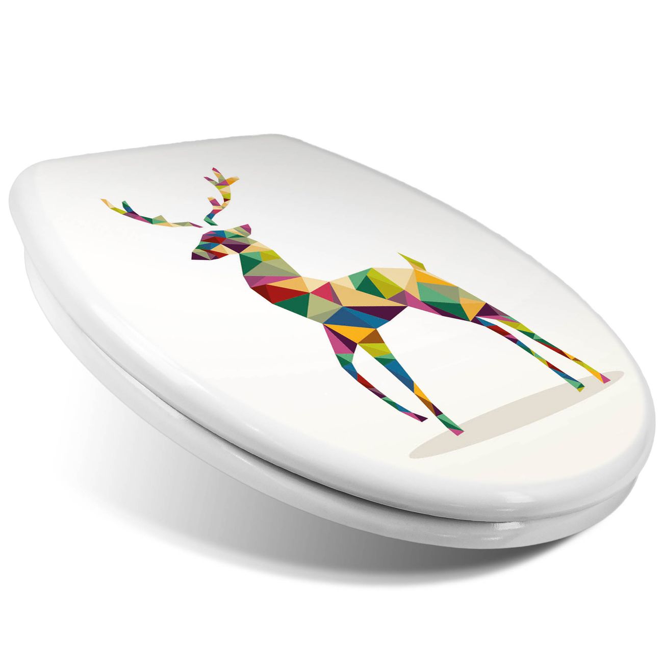 Toilettendeckel weiß mit Absenkautomatik Motiv Origami Hirsch