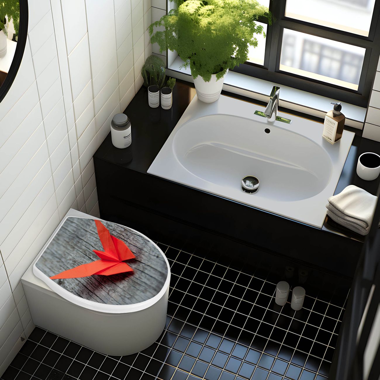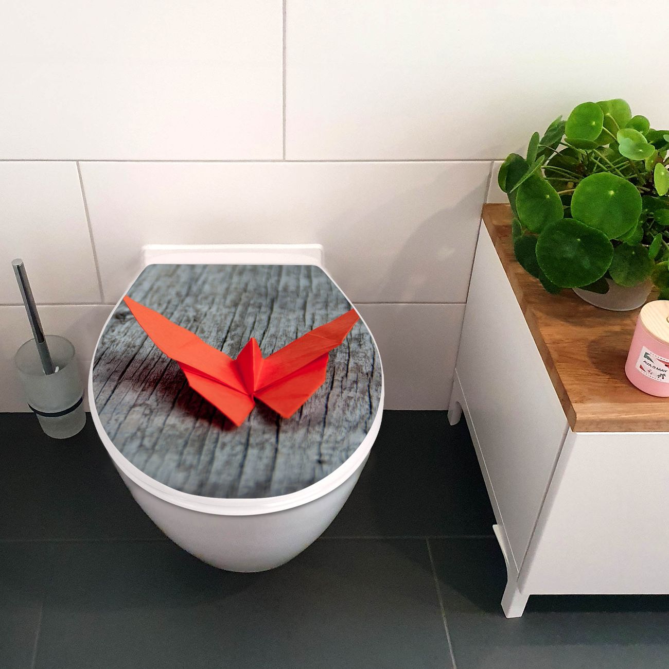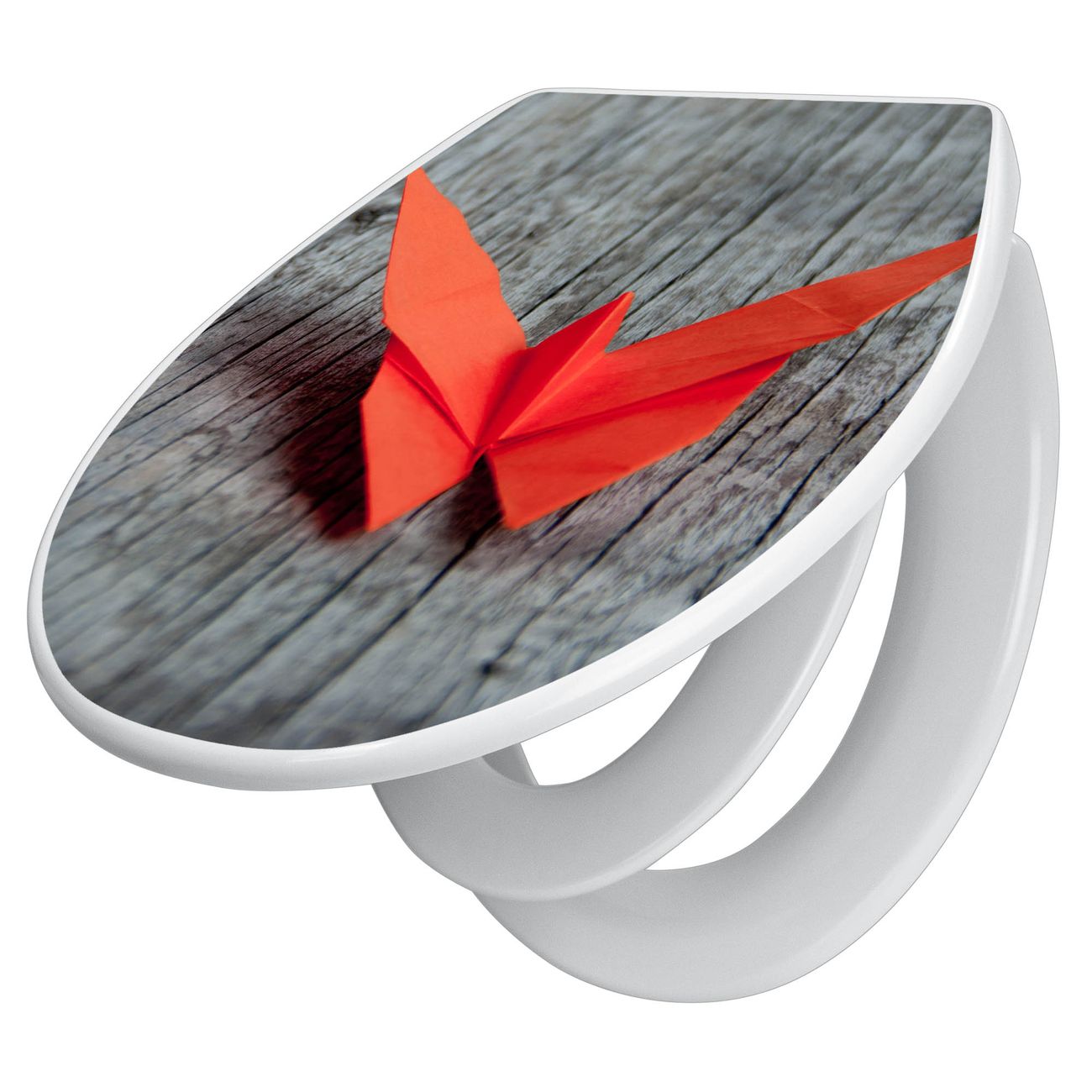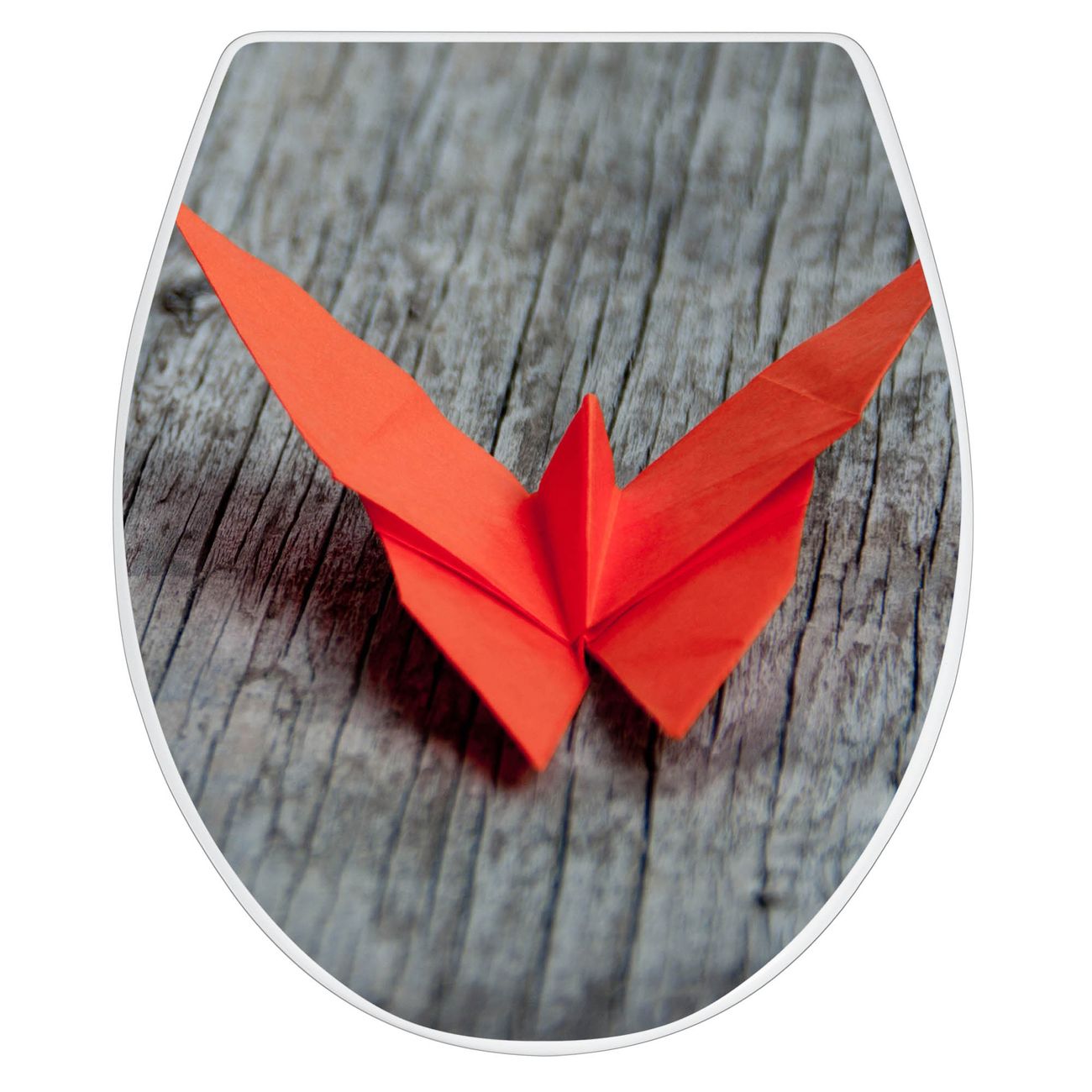 Toilettendeckel weiß mit Absenkautomatik Motiv Origami Schmetterling