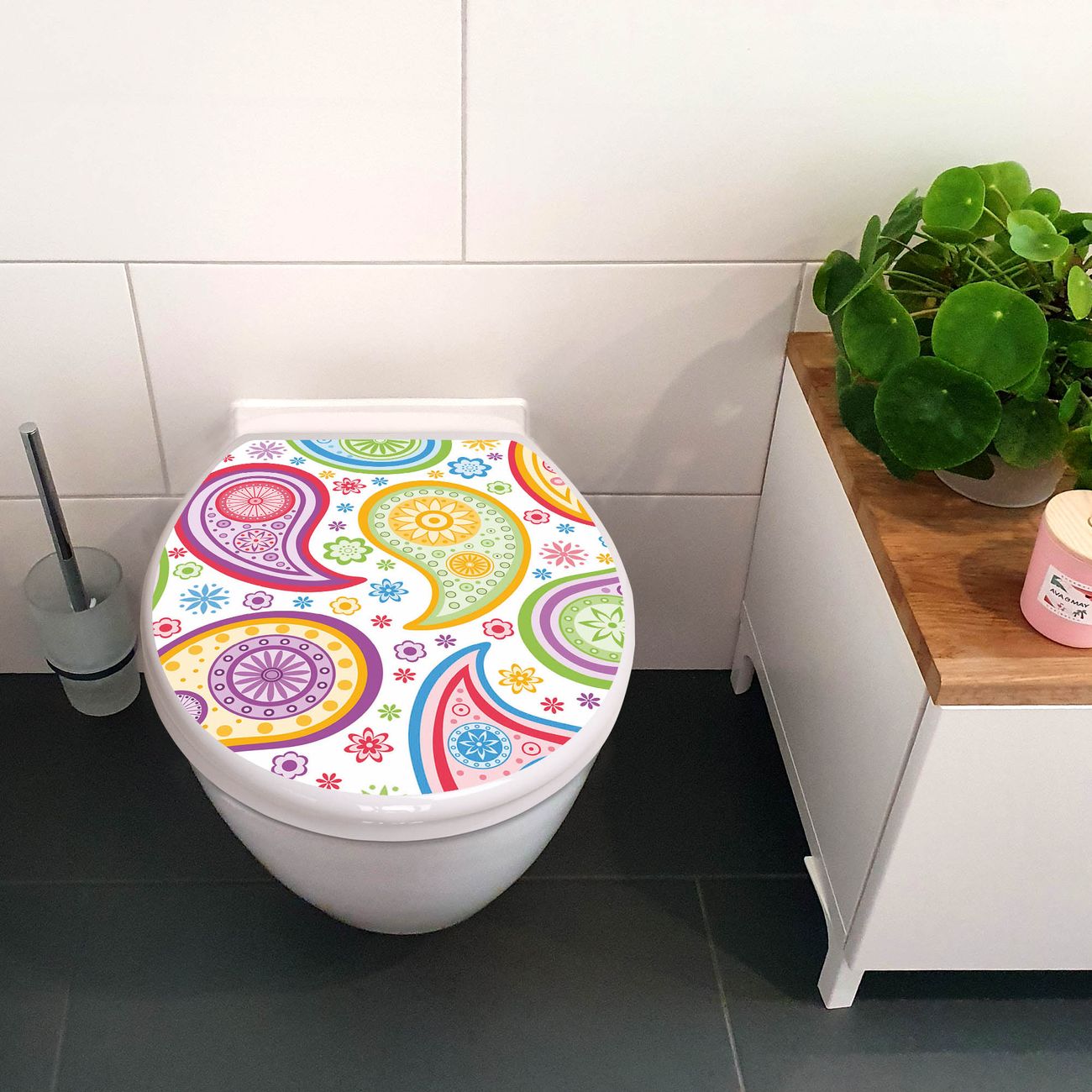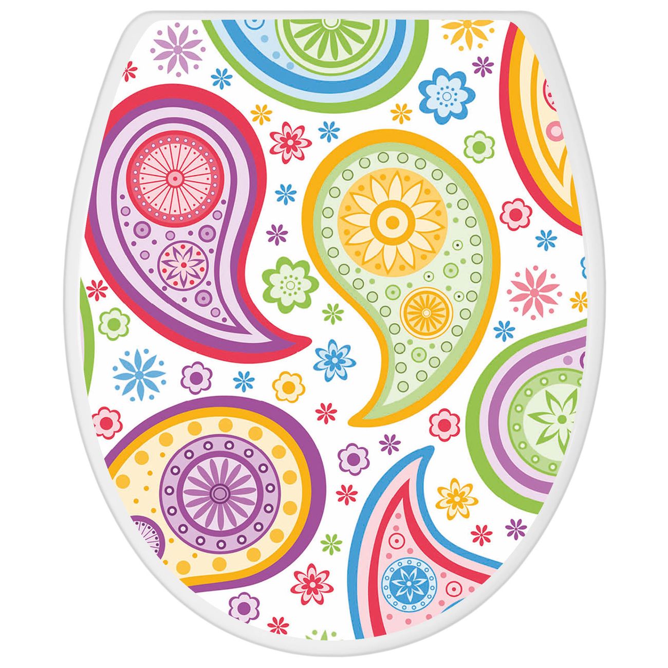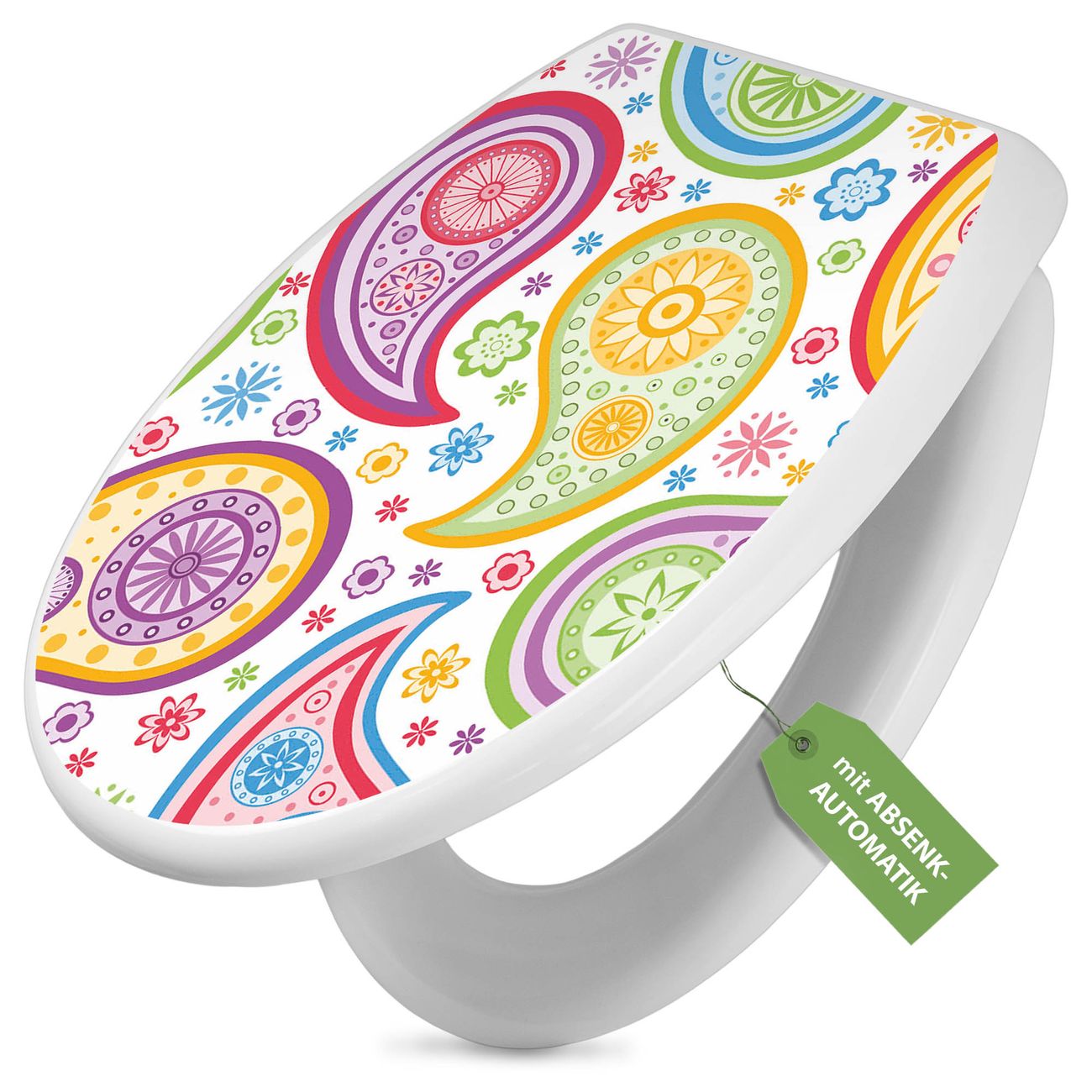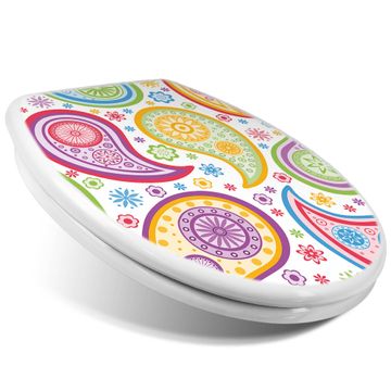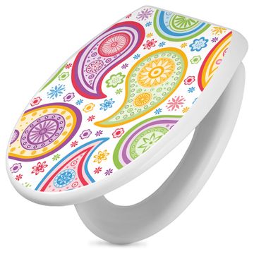 Toilettendeckel weiß mit Absenkautomatik Motiv Paisley bunt