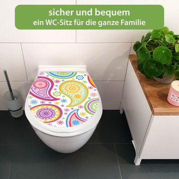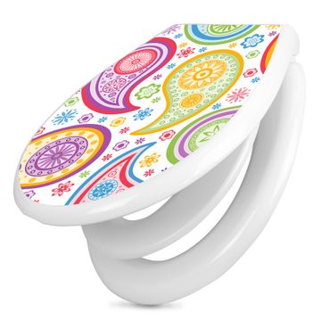 Toilettendeckel weiß mit Absenkautomatik Motiv Paisley bunt