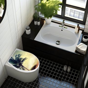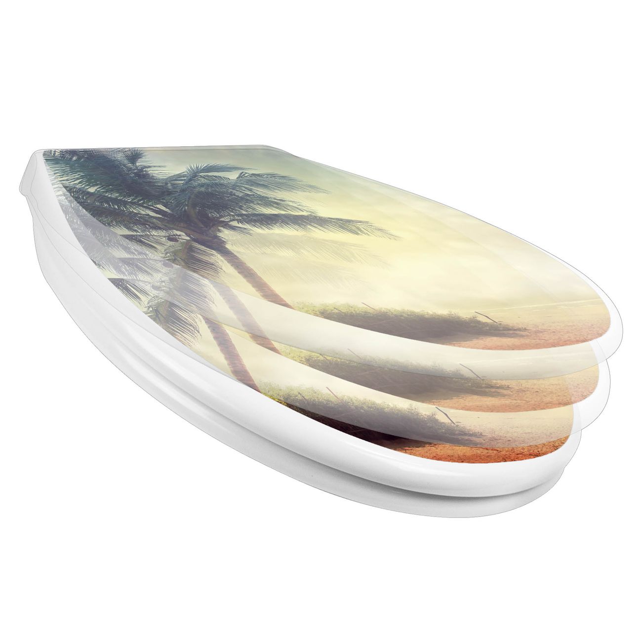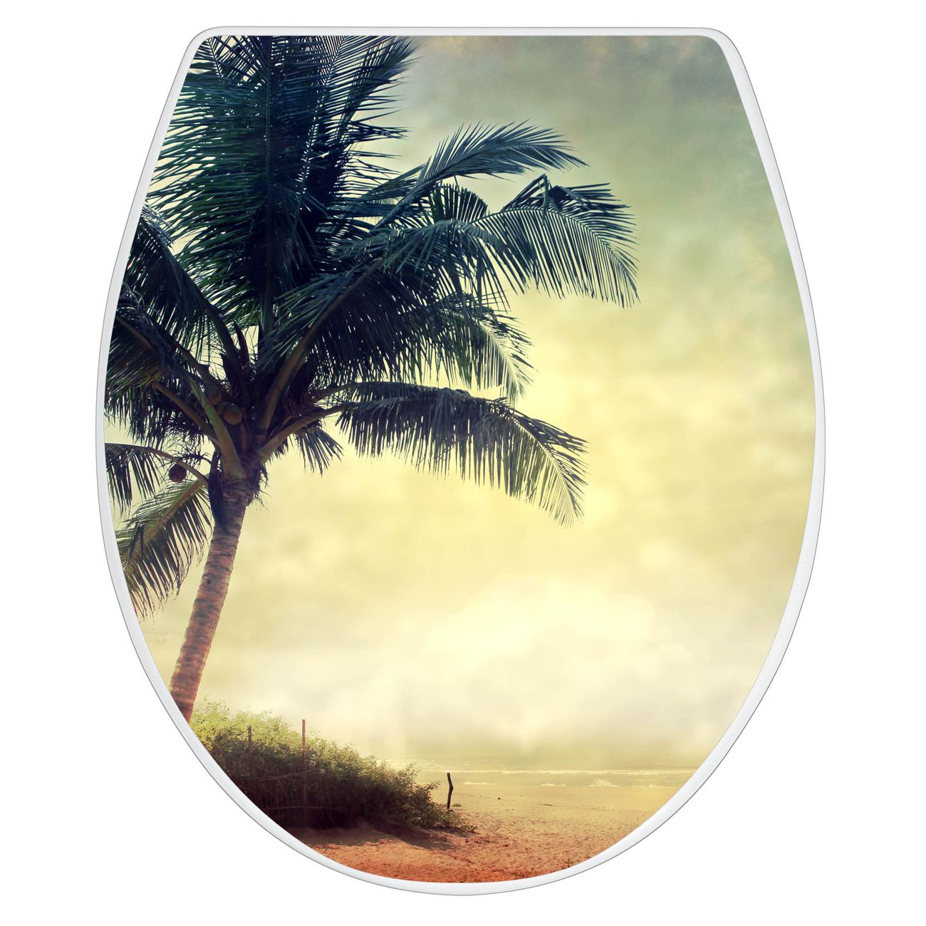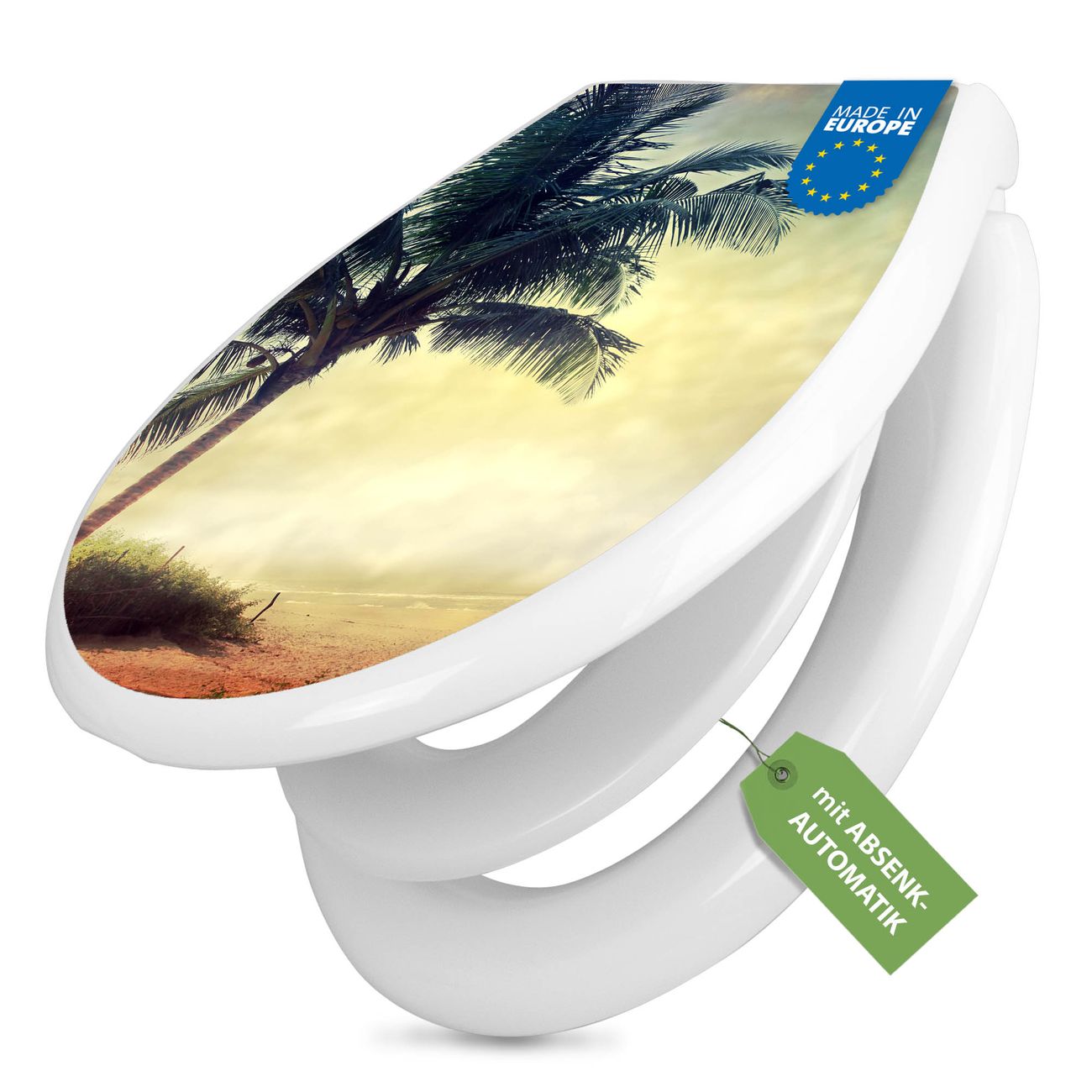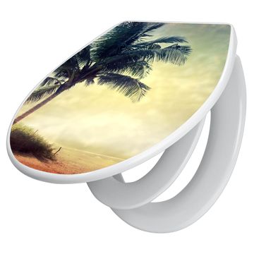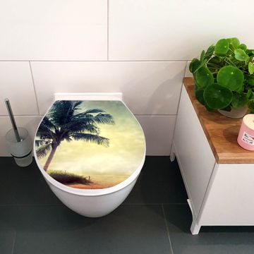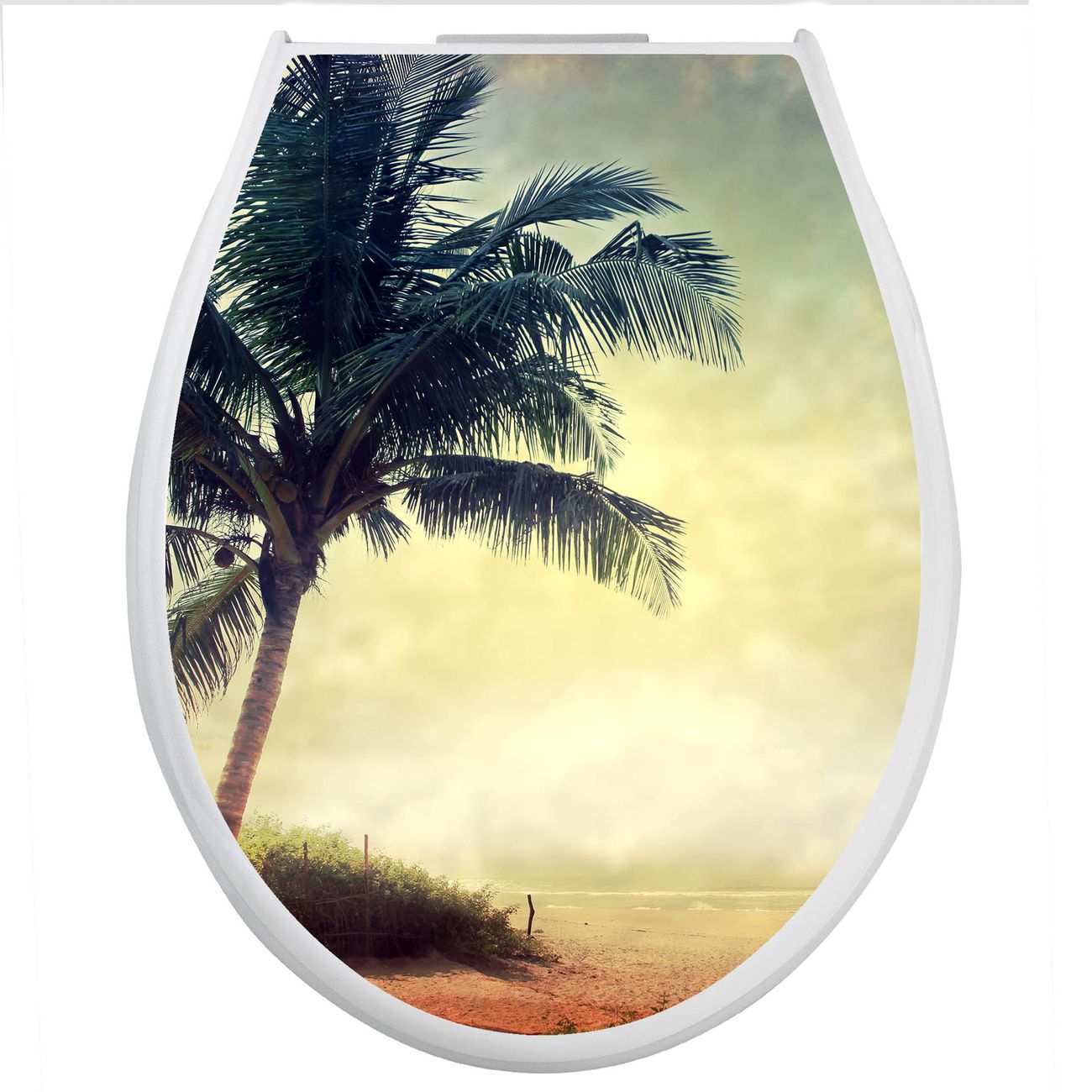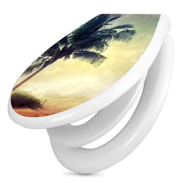 Toilettendeckel weiß mit Absenkautomatik Motiv Palme am Strand