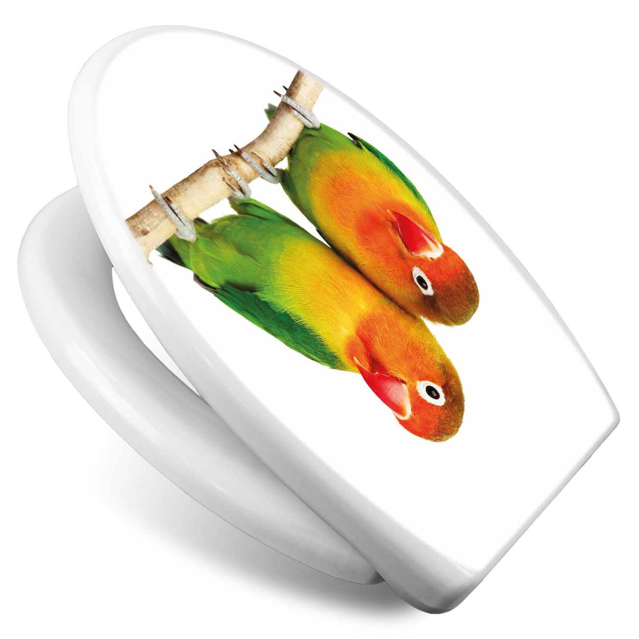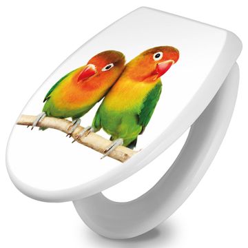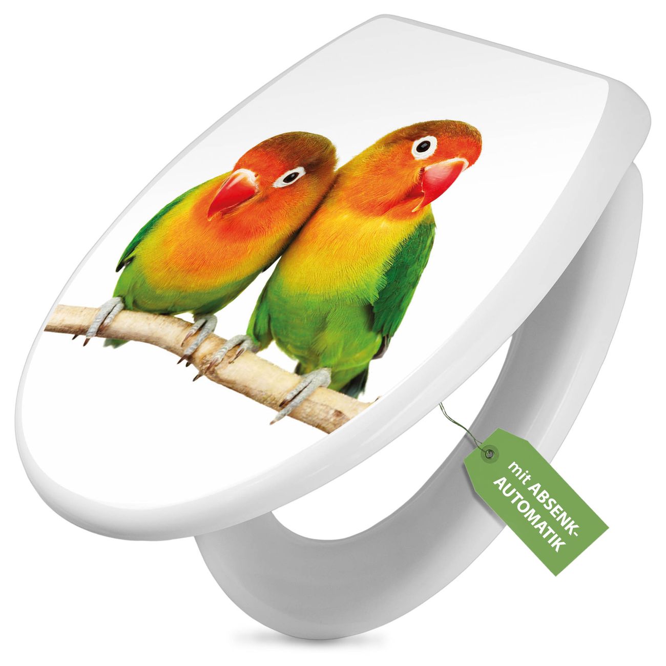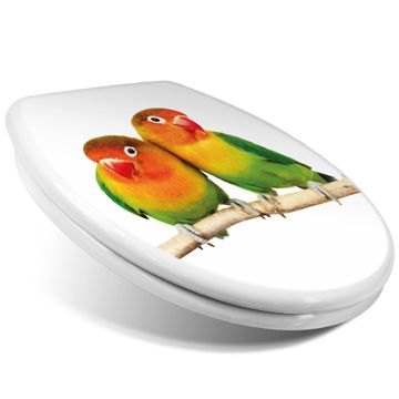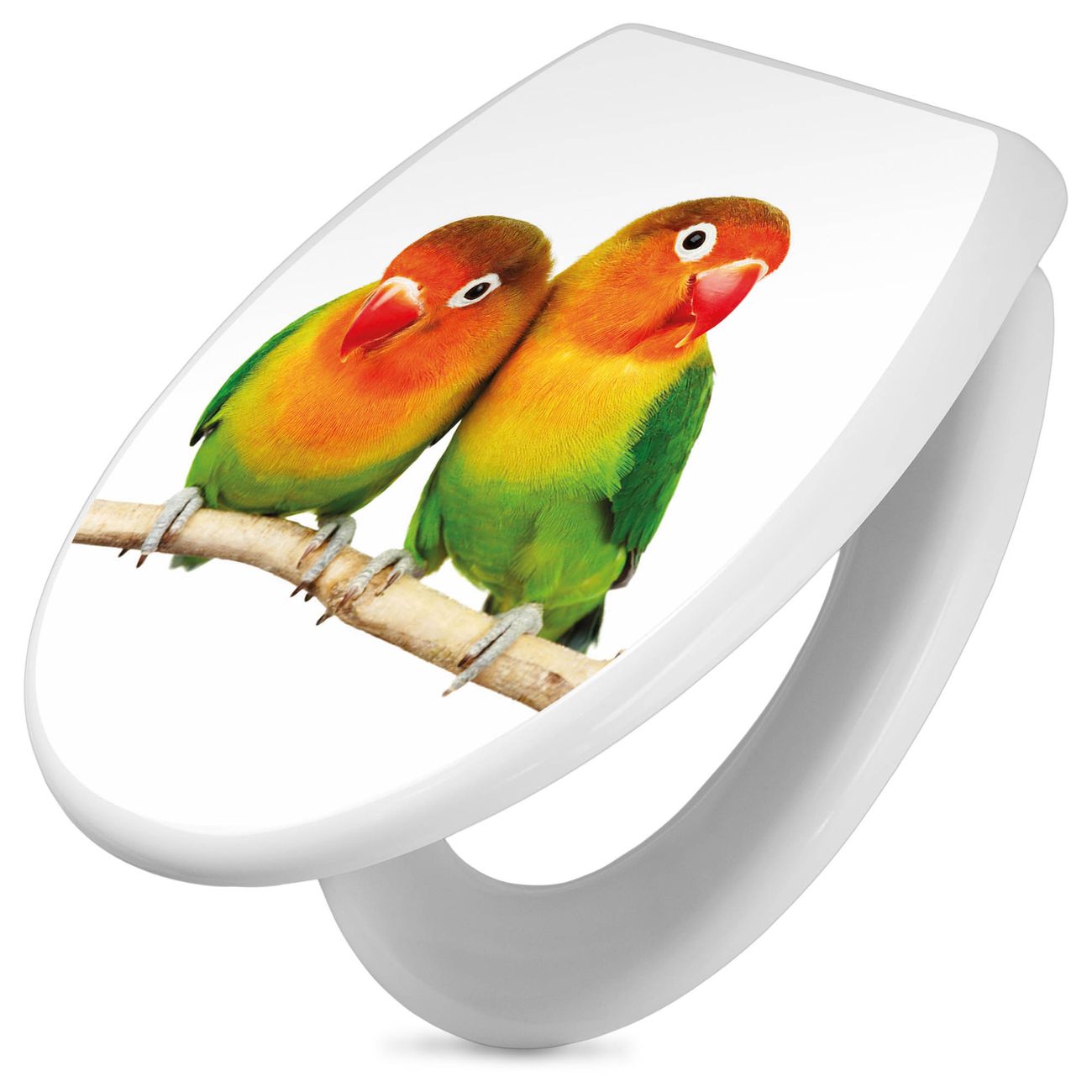Toilettendeckel weiß mit Absenkautomatik Motiv Papageien