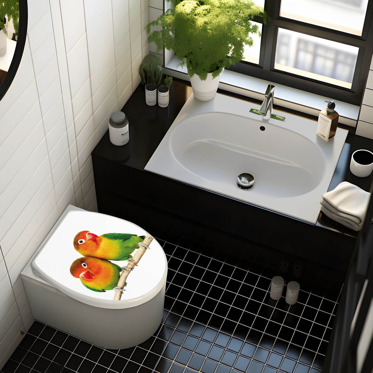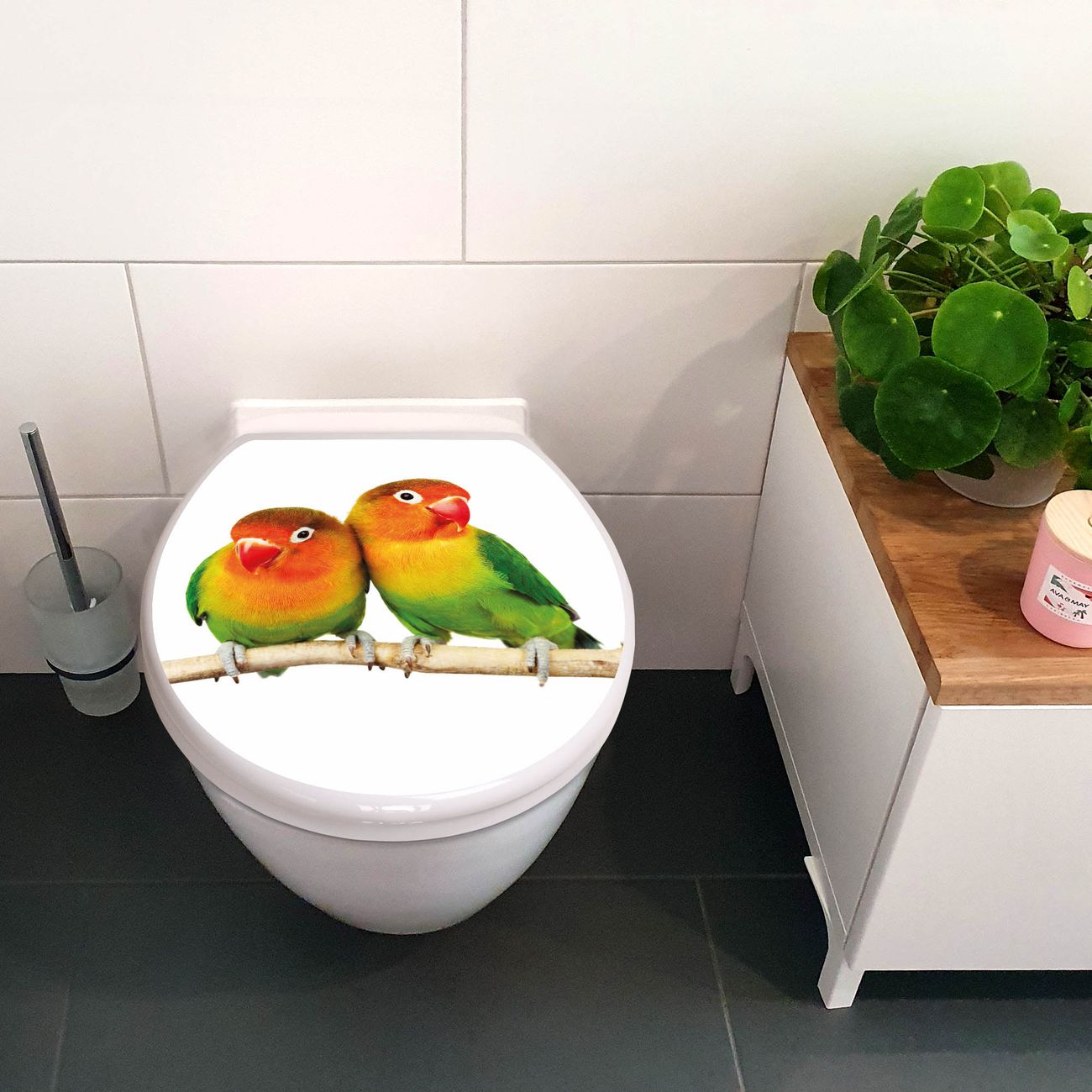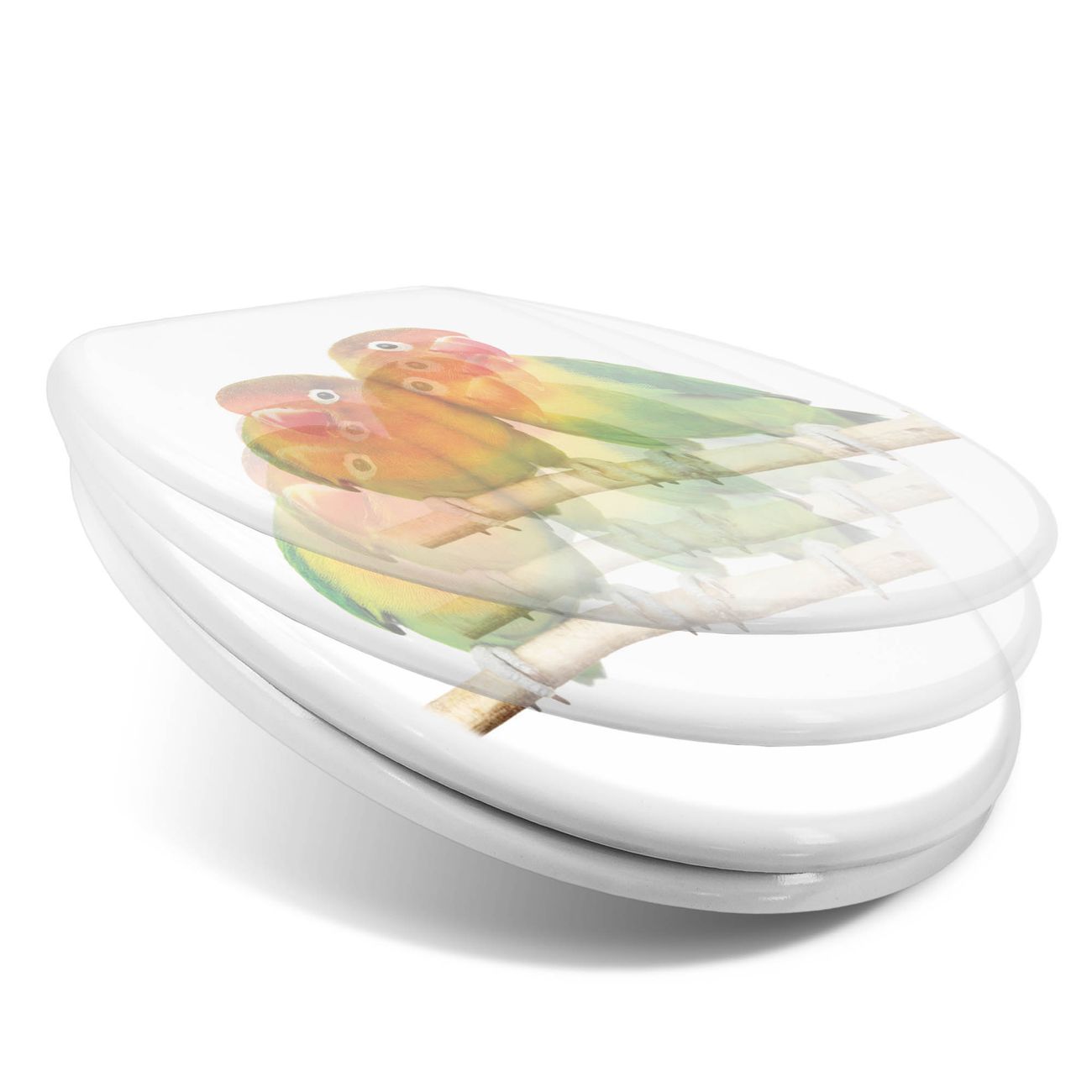 Toilettendeckel weiß mit Absenkautomatik Motiv Papageien