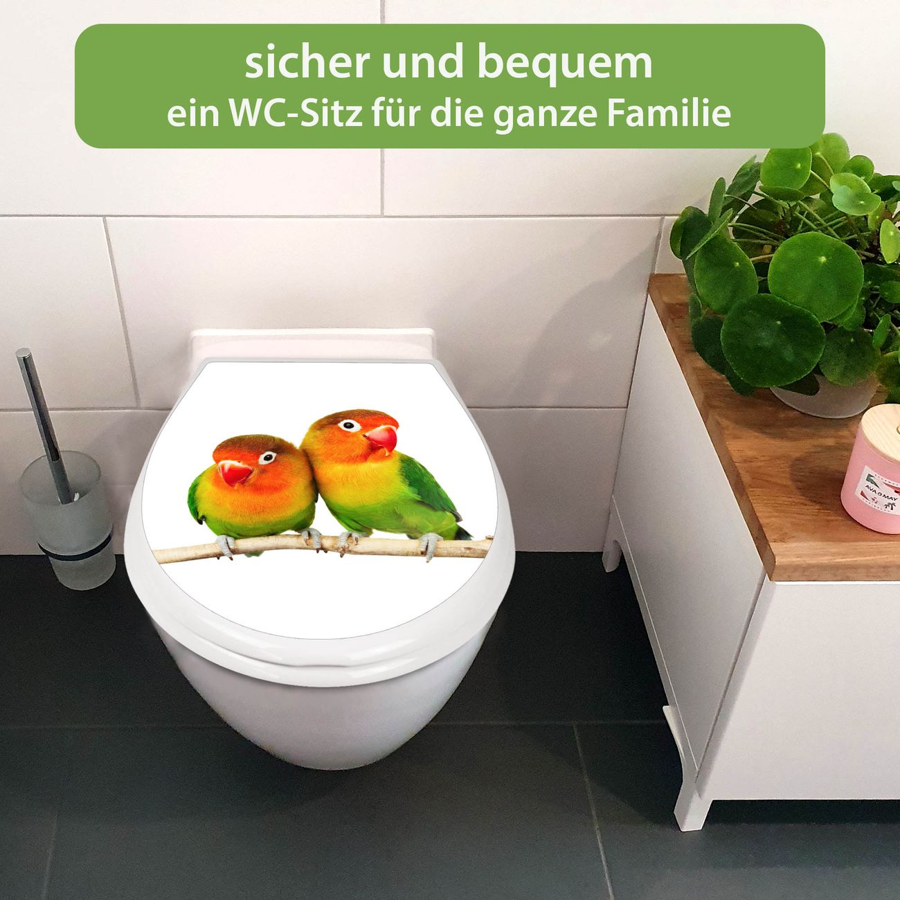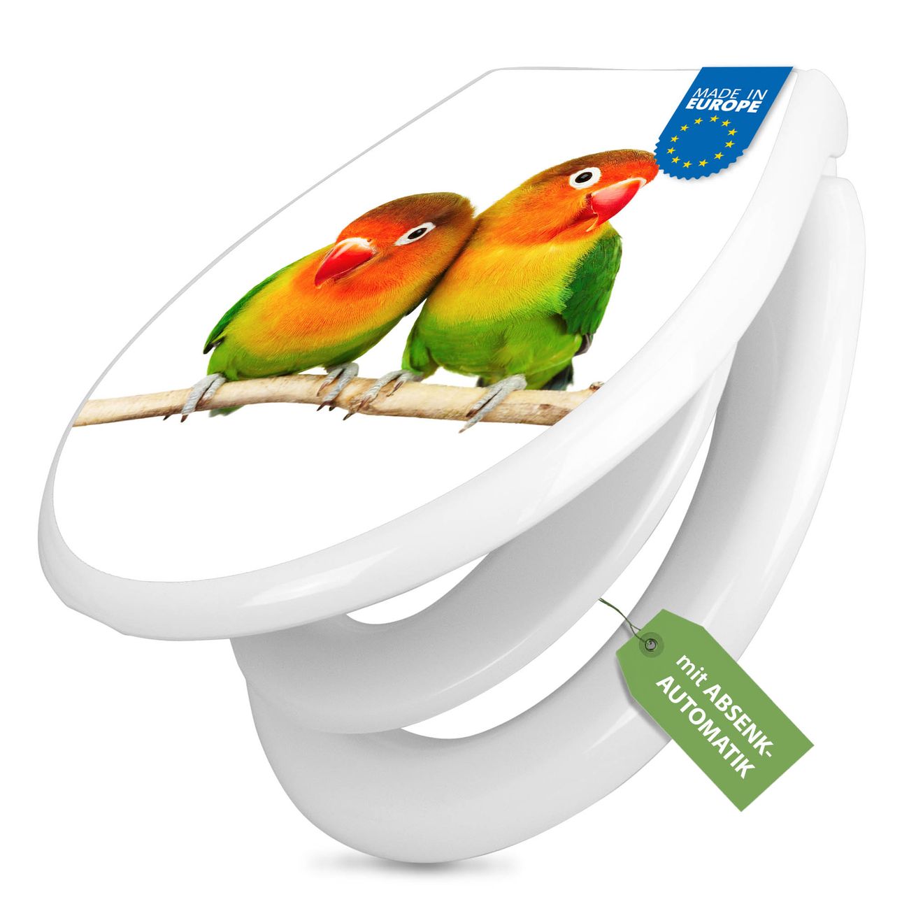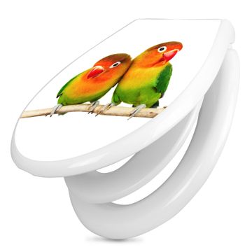 Toilettendeckel weiß mit Absenkautomatik Motiv Papageien
