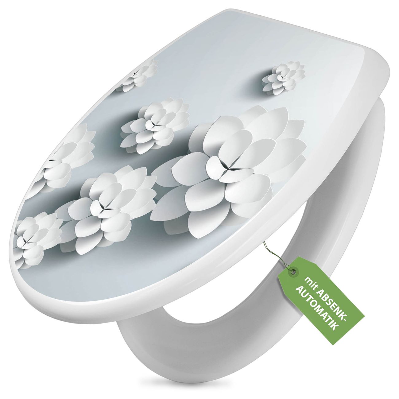 Toilettendeckel weiß mit Absenkautomatik Motiv Papier Lotus