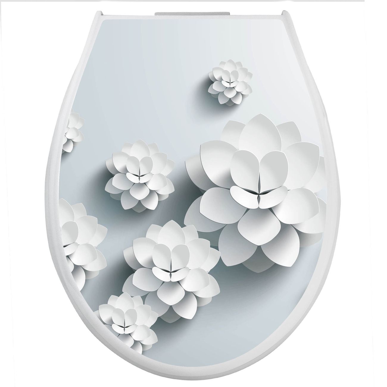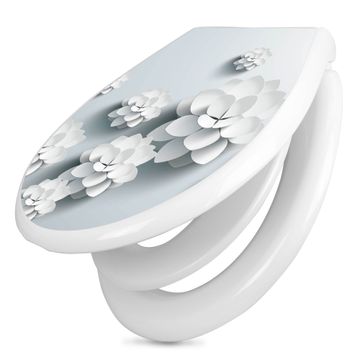 Toilettendeckel weiß mit Absenkautomatik Motiv Papier Lotus