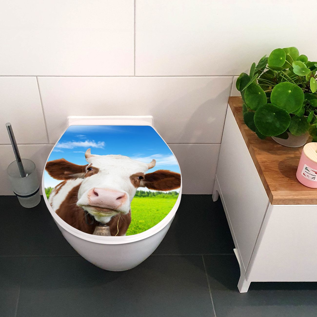 Toilettendeckel weiß mit Absenkautomatik Motiv Pardon