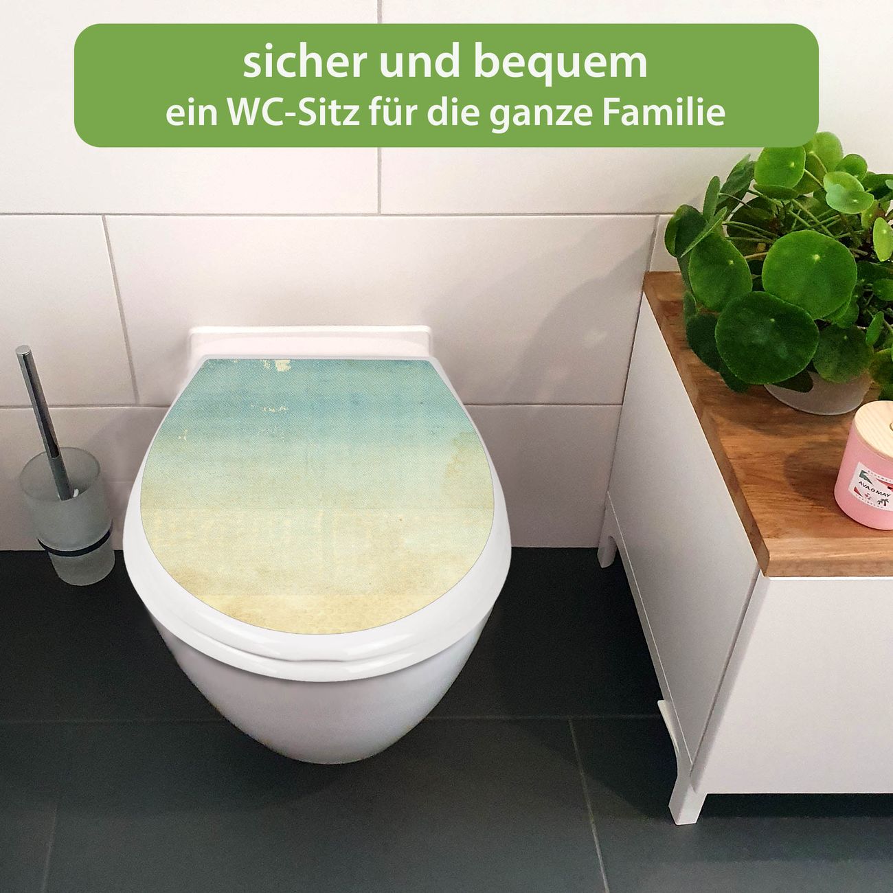 FUNKTION:Mit dem banjado Familien WC Sitz mit Absenkautomatik und dem Motiv Motiv Patina Papier verbinden Sie Design mit Funktionalität. Sie erhalten den Toilettendeckel in bewährt guter Qualität mit Montagematerial passend auf alle Euro-WC-Becken. Die Gesamtgröße beträgt 37,1cm x 44,9cm x 5cm, die Grundfarbe ist weiß.</p> DESIGN:Der Klodeckel in weiß mit Motiv Motiv Patina Papier hat eine ansprechende Optik, eine besondere Form und ist sehr stabil. Das Motiv besteht aus einer farbbrillianten Motivfolie, die durch ein Schutzlaminat zusätzlich vor Kratzern schützt. Der integrierte Kindersitz fügt sich harmonisch ein. DETAILS:Der Toilettensitz mit Soft Close besteht aus hochwertigem Polypropylen, ist geruchlos, ungiftig und kann mit handelsüblicher Seife gereinigt werden. Die Montage kann von von oben oder von unten erfolgen und ist kinderleicht. NUTZEN:Mit Hilfe der detaillierten Aufbauanleitung ermöglichen wir eine schnelle und unkomplizierte Montage. Die banjado Klobrille ist universell geeignet für alle Euro-WC-Schüsseln. Der Kindersitz kann unkompliziert entfernt werden. BANJADO:Ihr WC-Deckel wird in Sachsen in einer kleinen Manufaktur von Hand veredelt. Die Motivfolie ist lösungsmittelfrei und schutzlaminiert für einen langen Halt. Wir wünschen viel Freude bei der Auswahl eines schönen Motivs.