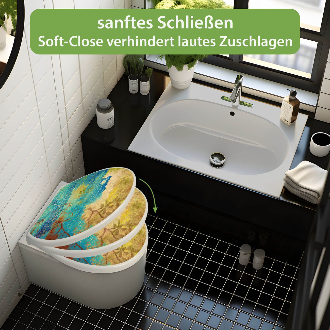 Toilettendeckel weiß mit Absenkautomatik Motiv Patina