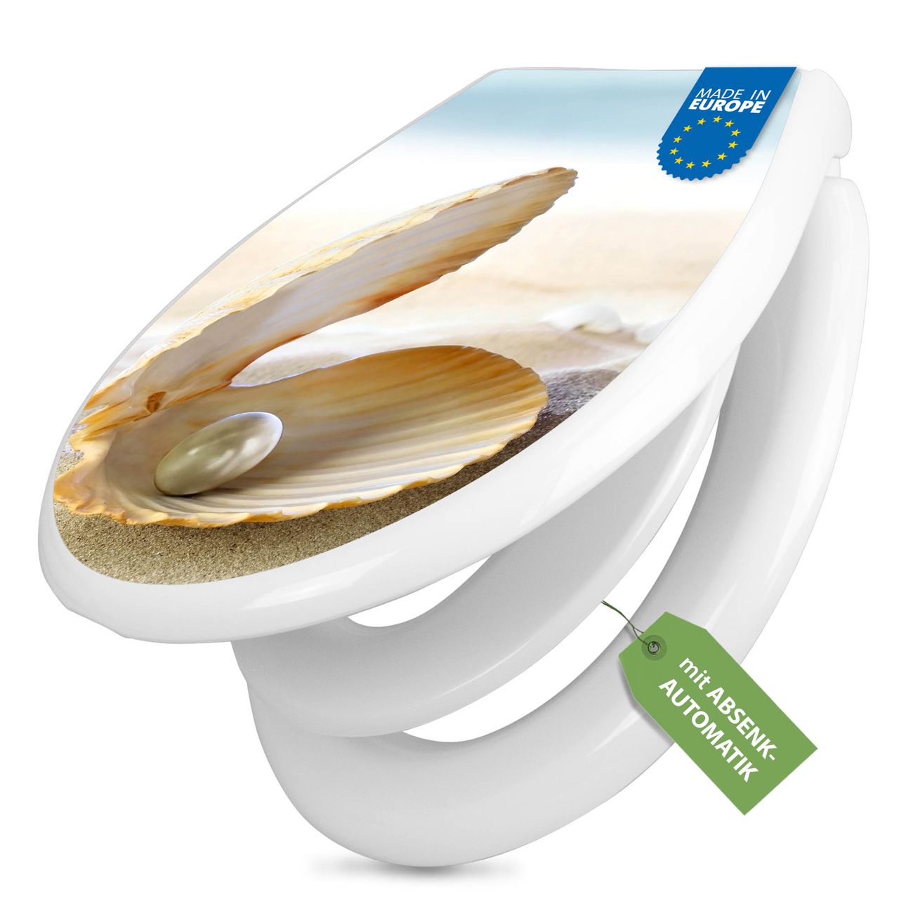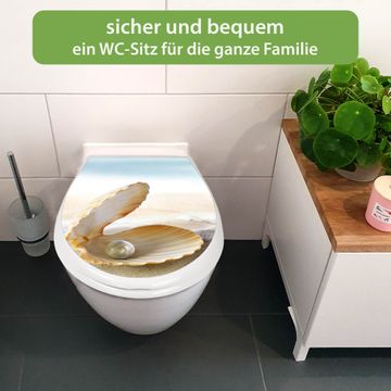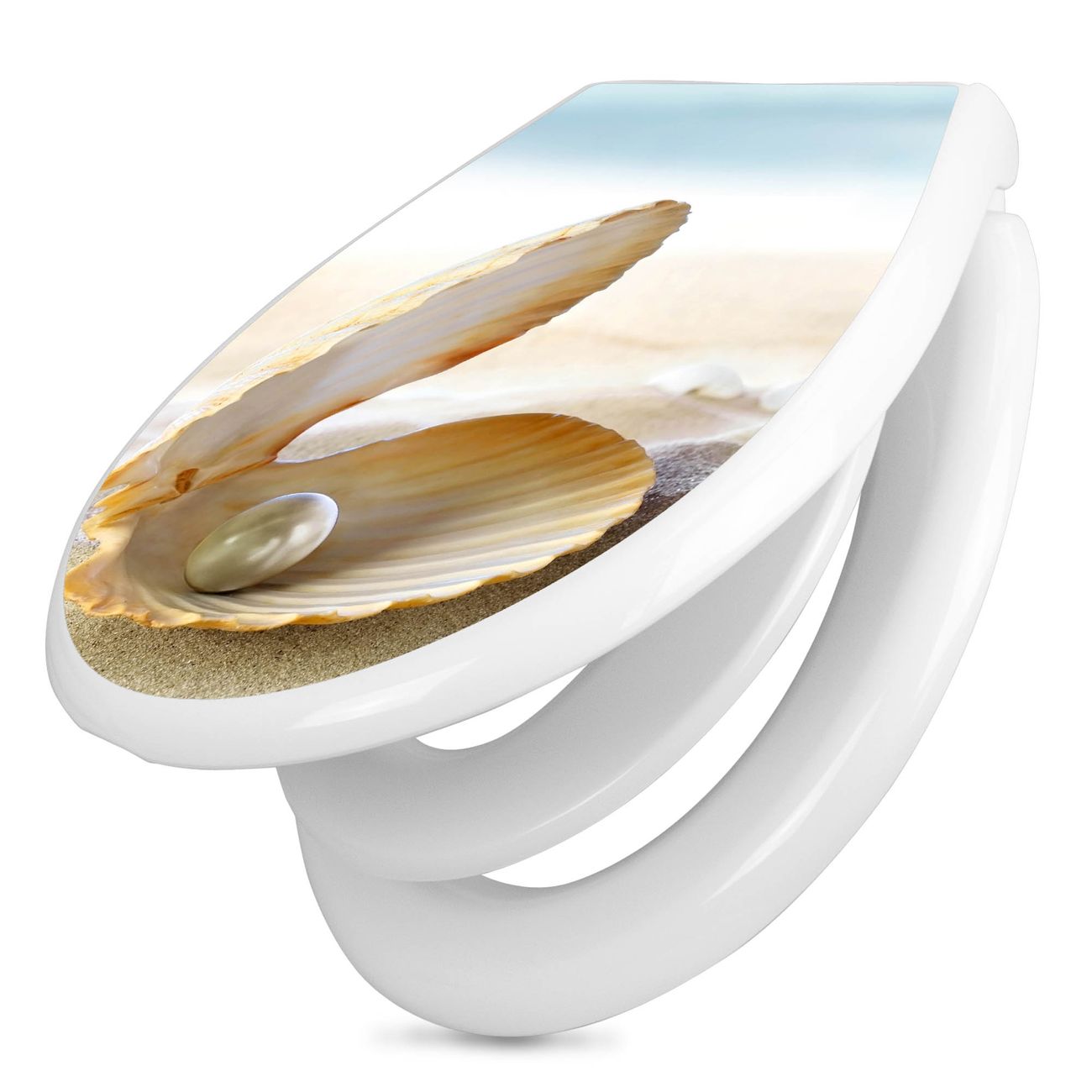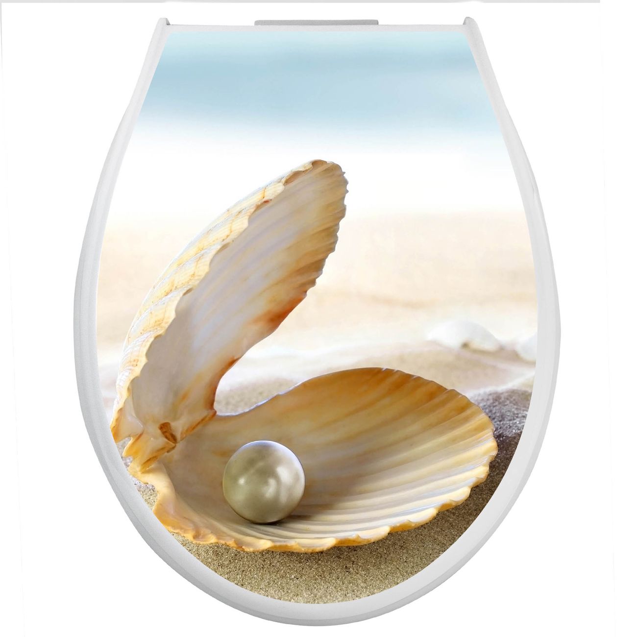 Toilettendeckel weiß mit Absenkautomatik Motiv Perlenmuschel