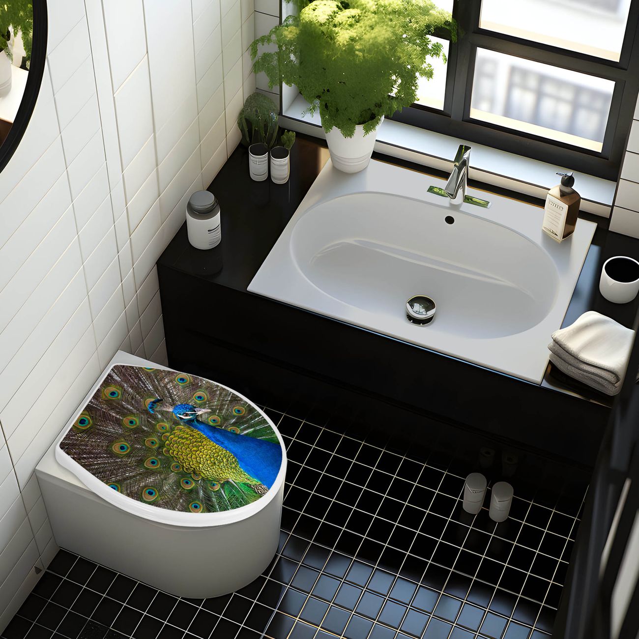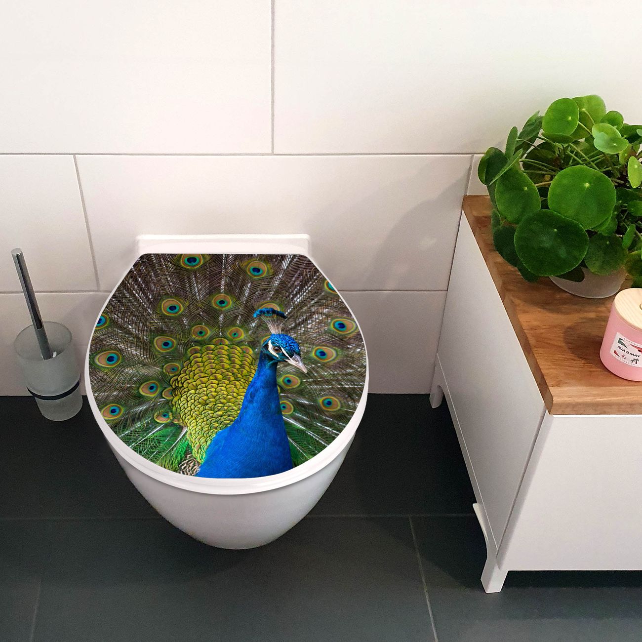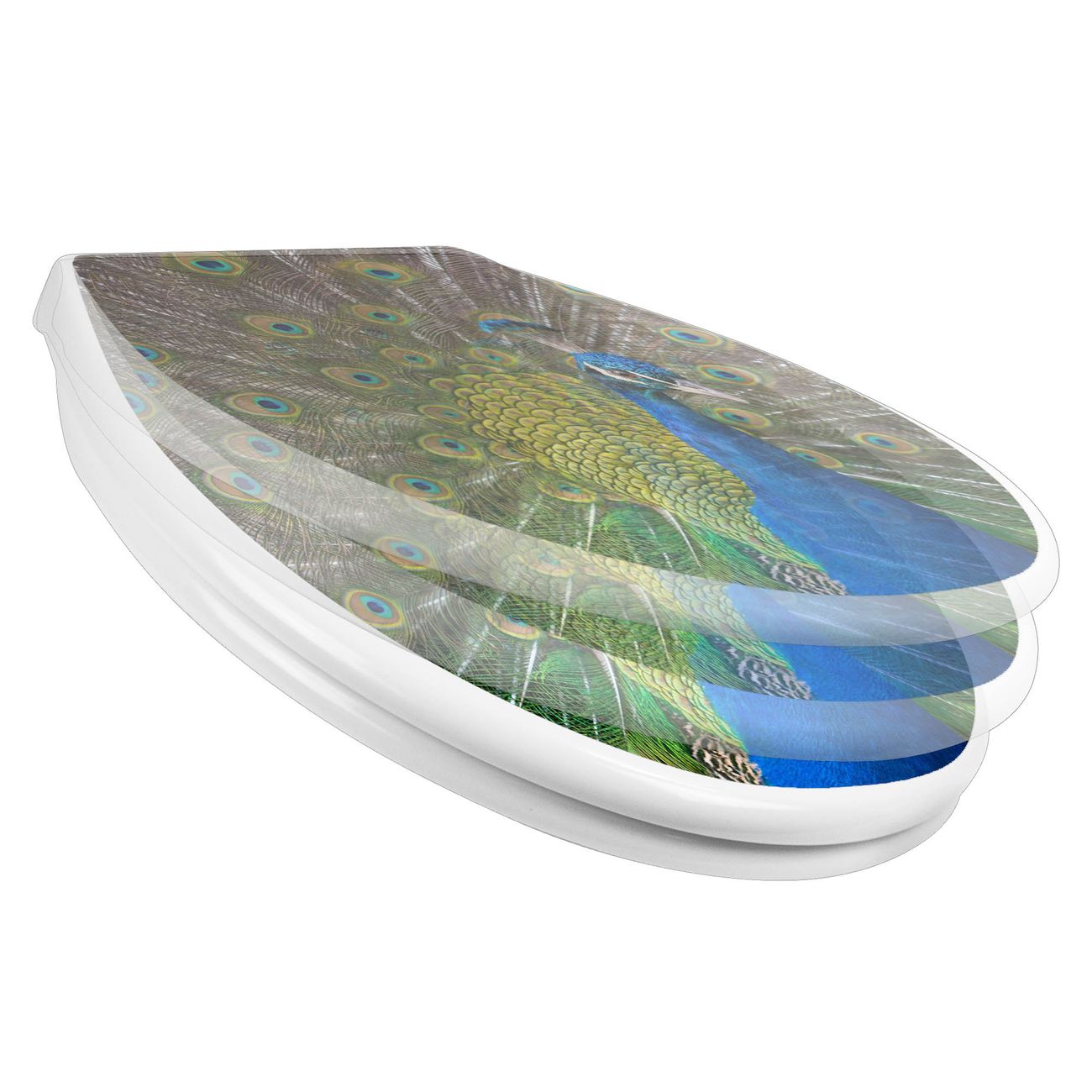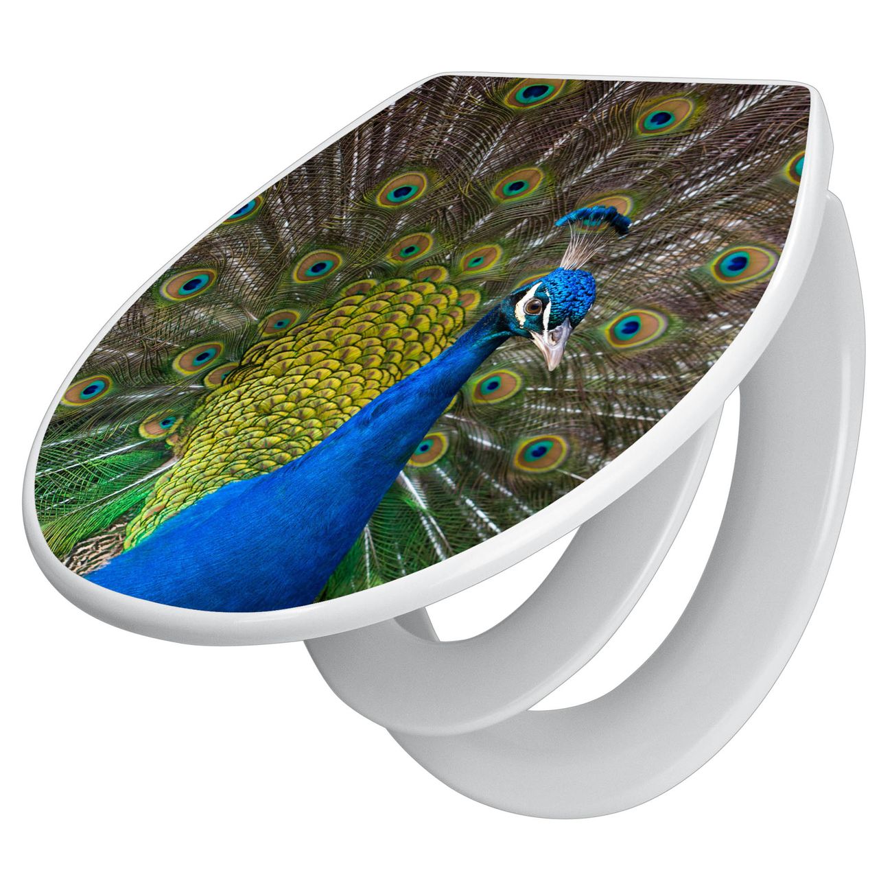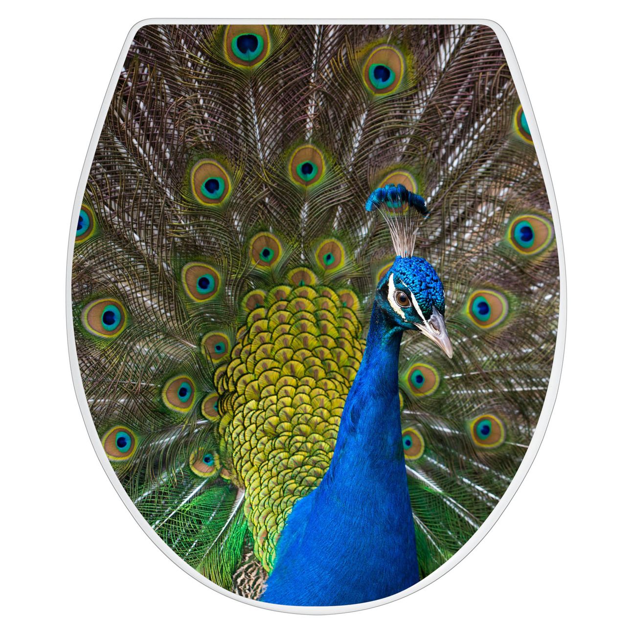 Toilettendeckel weiß mit Absenkautomatik Motiv Pfau