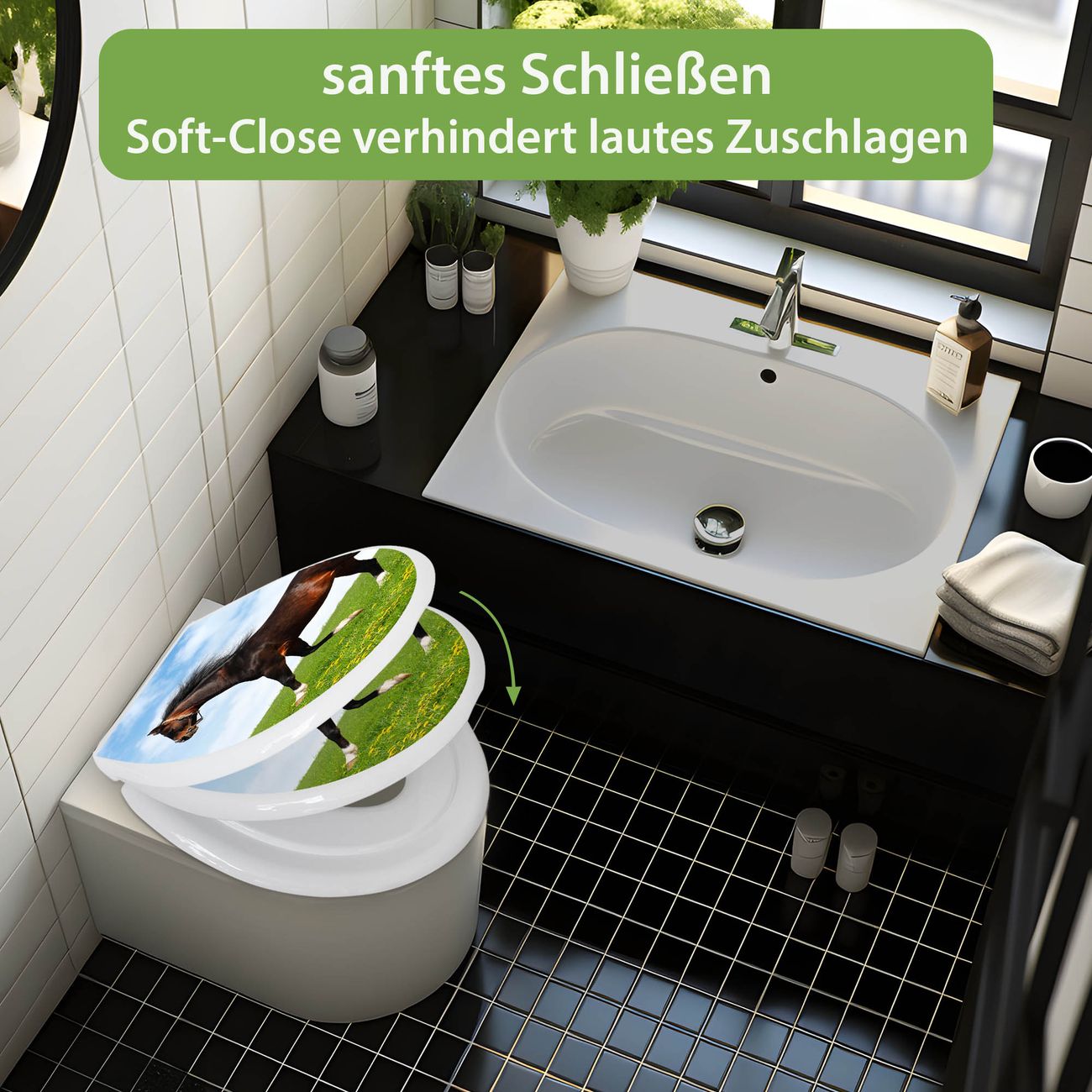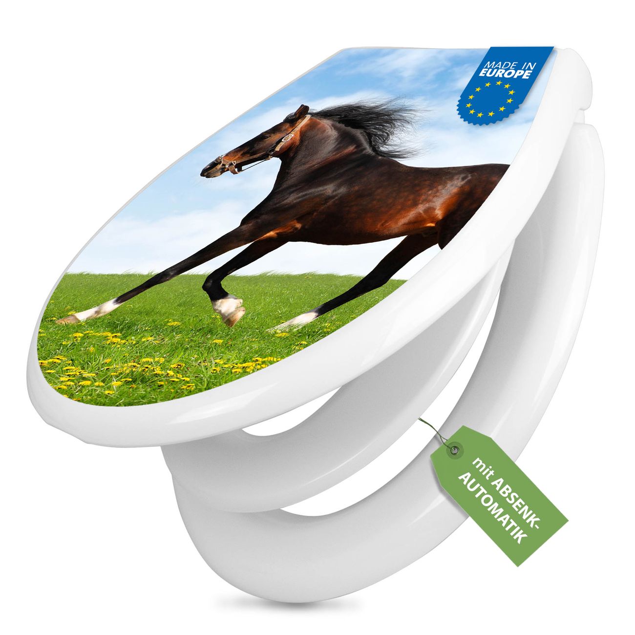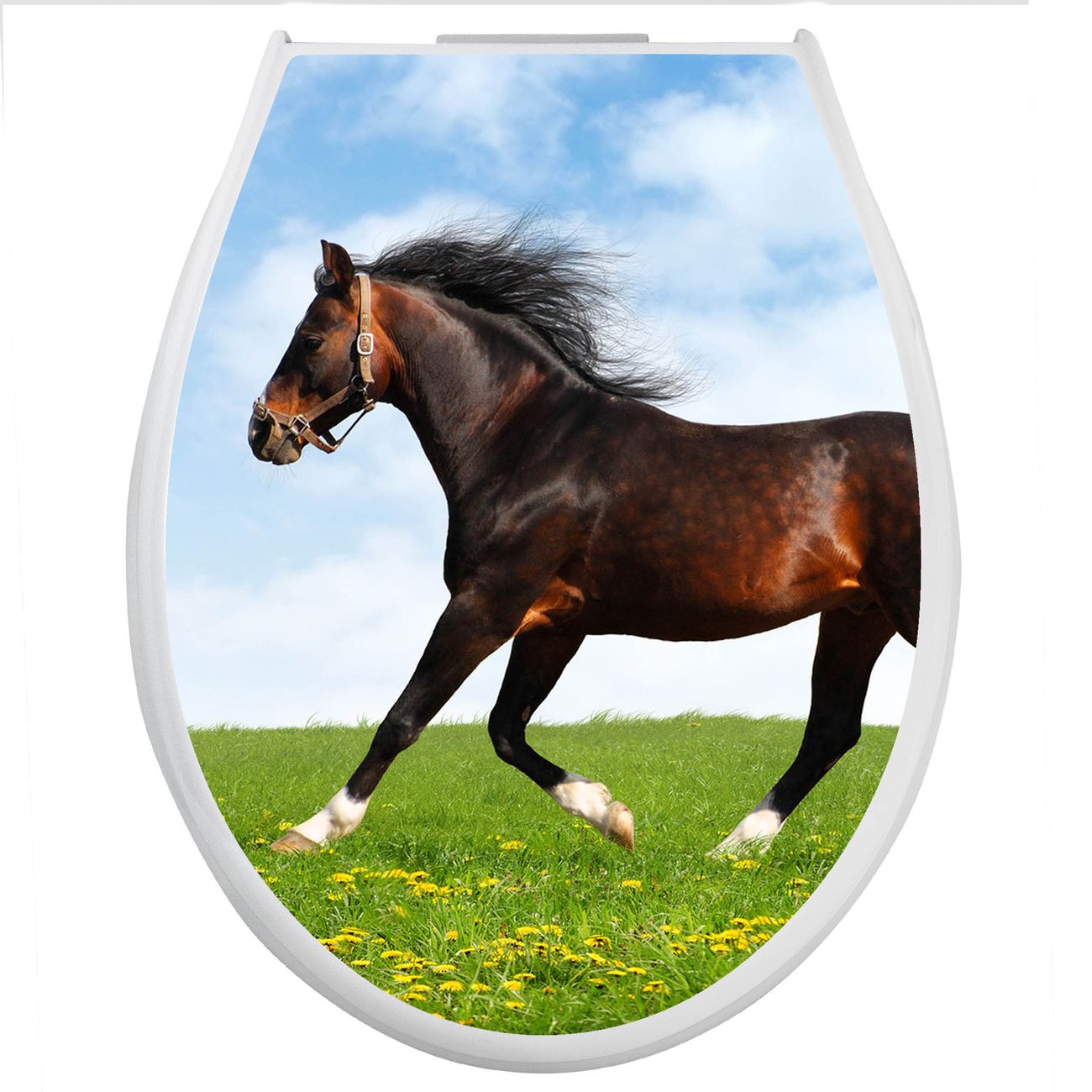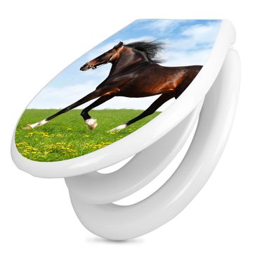 Toilettendeckel weiß mit Absenkautomatik Motiv Pferd