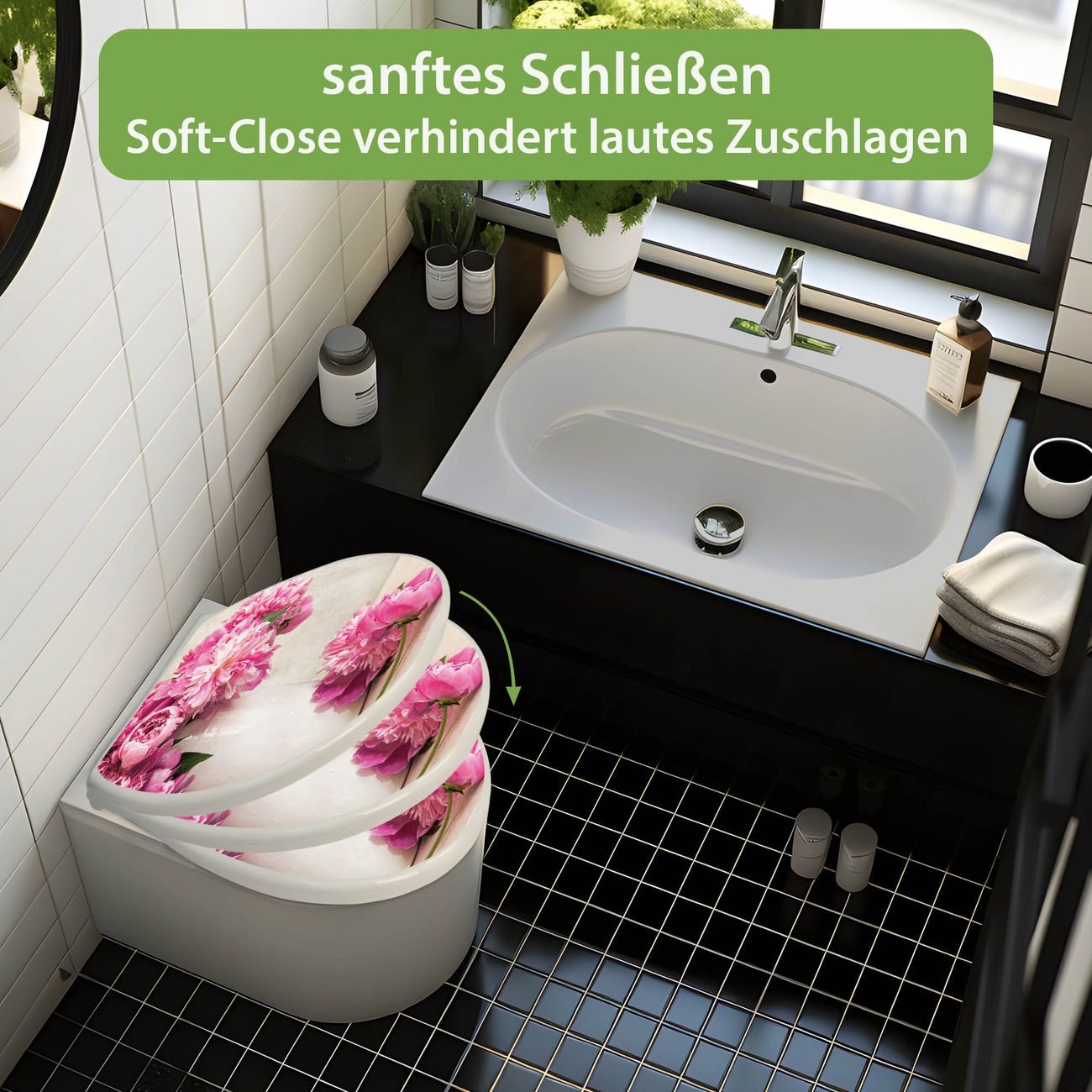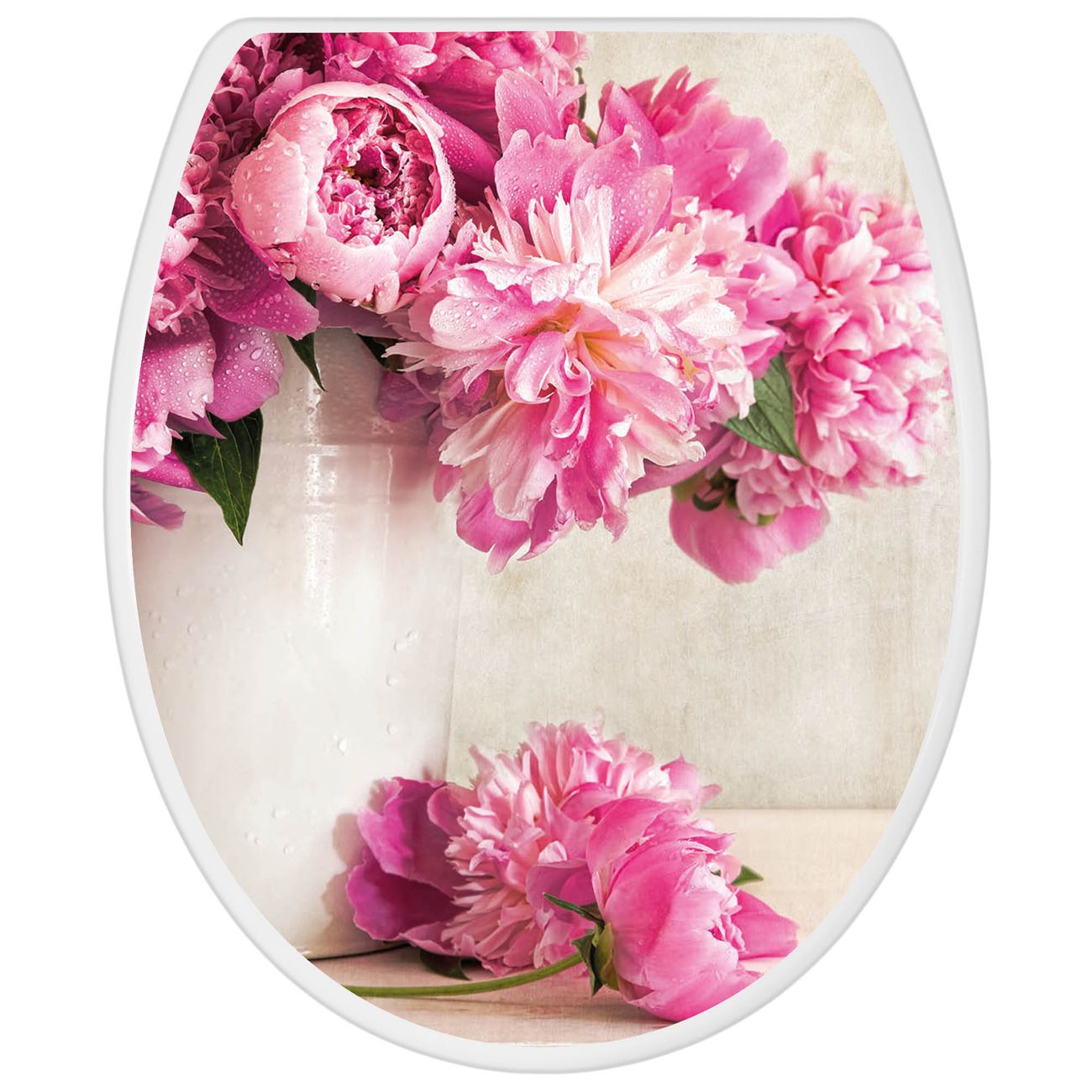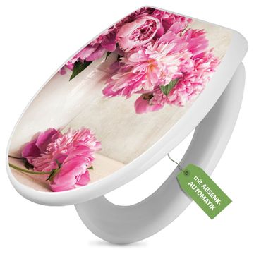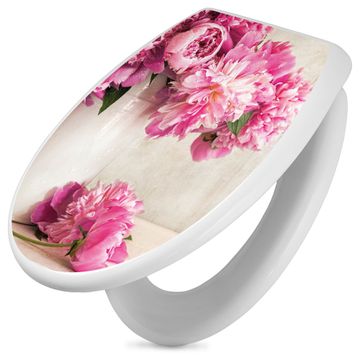 Toilettendeckel weiß mit Absenkautomatik Motiv Pfingstrose