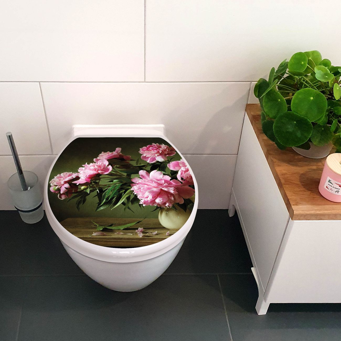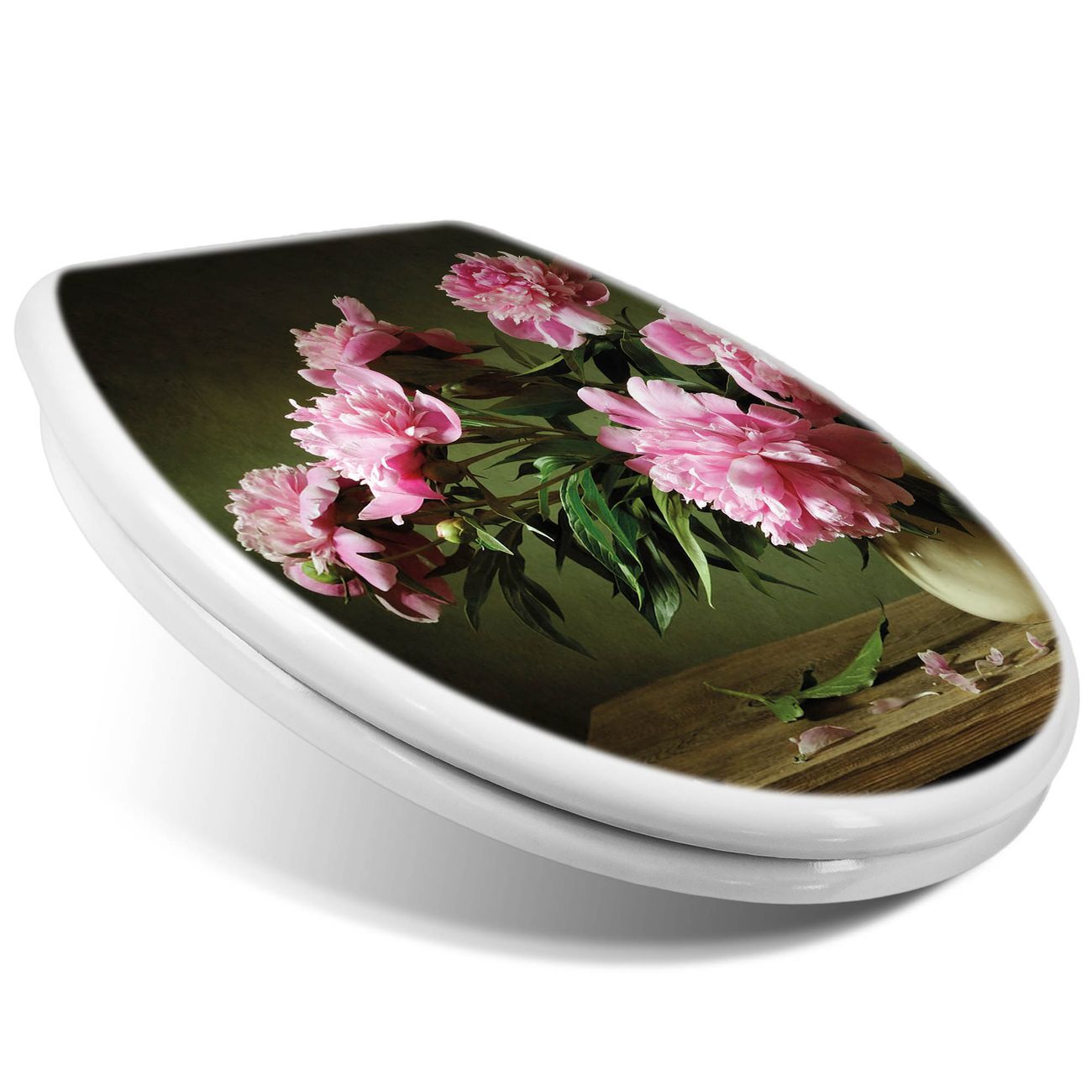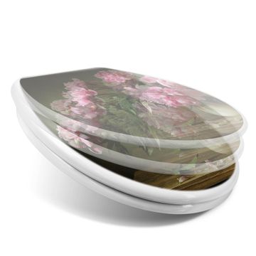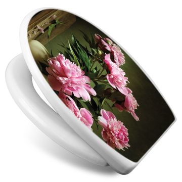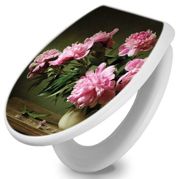 Toilettendeckel weiß mit Absenkautomatik Motiv Pinke Pfingstrosen