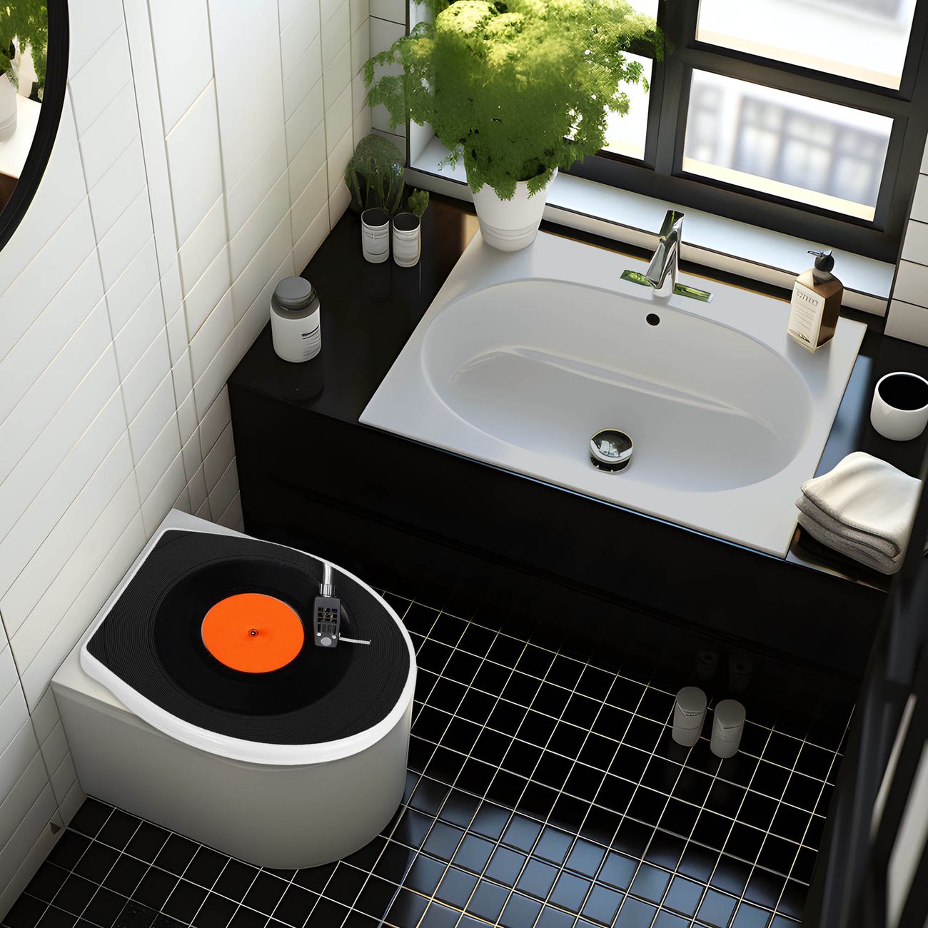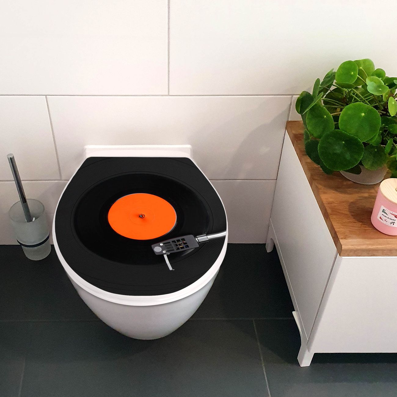 Toilettendeckel weiß mit Absenkautomatik Motiv Plattenspieler