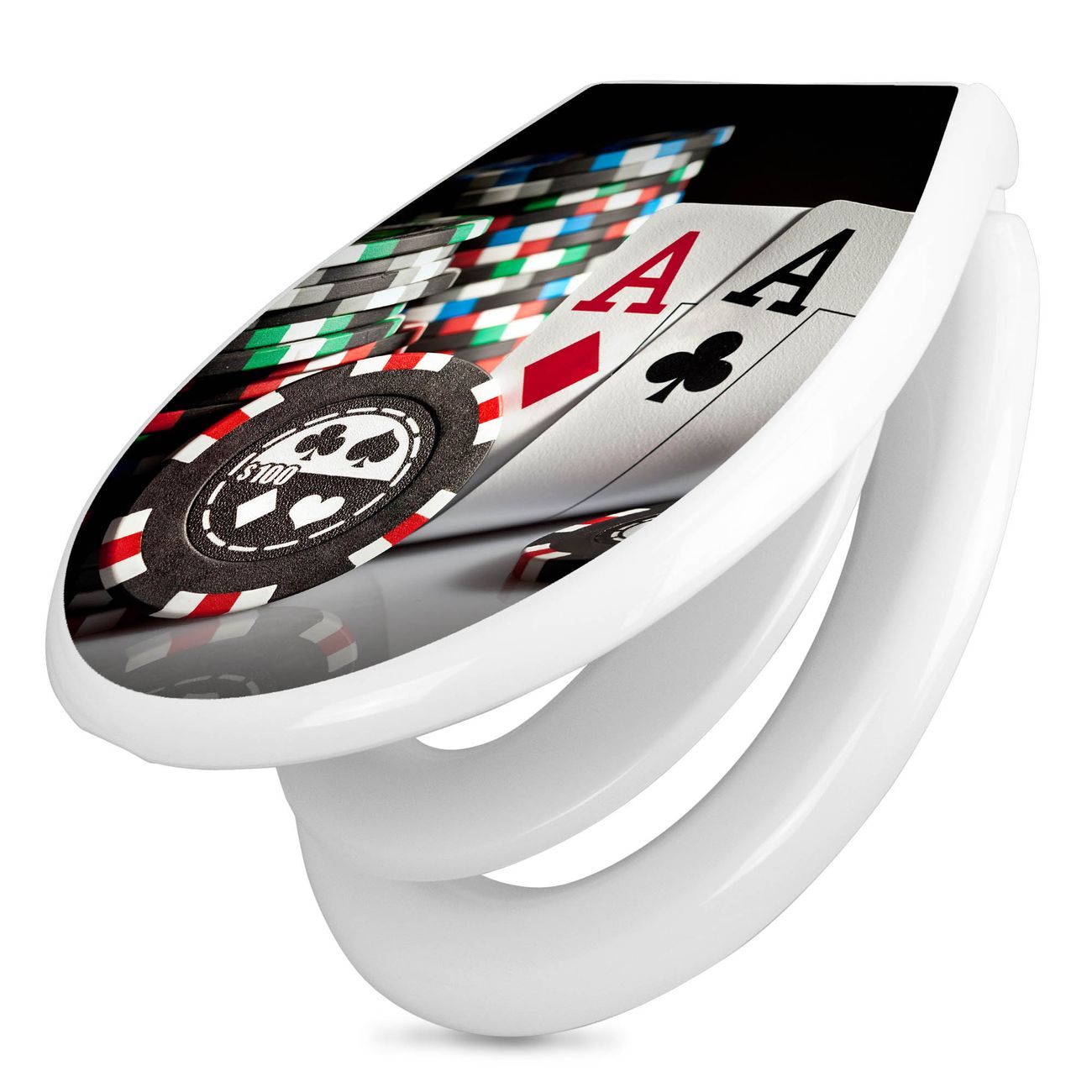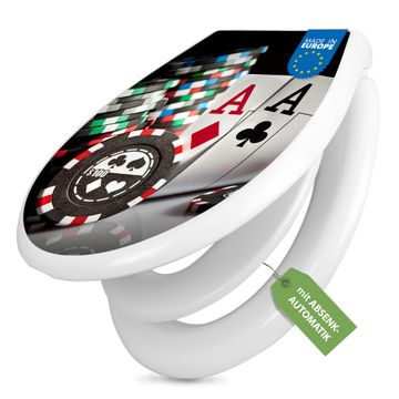 Toilettendeckel weiß mit Absenkautomatik Motiv Poker