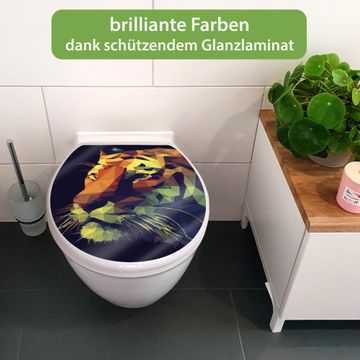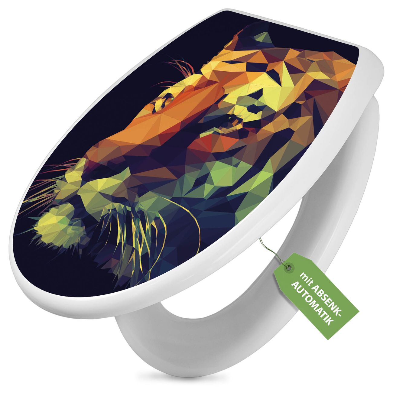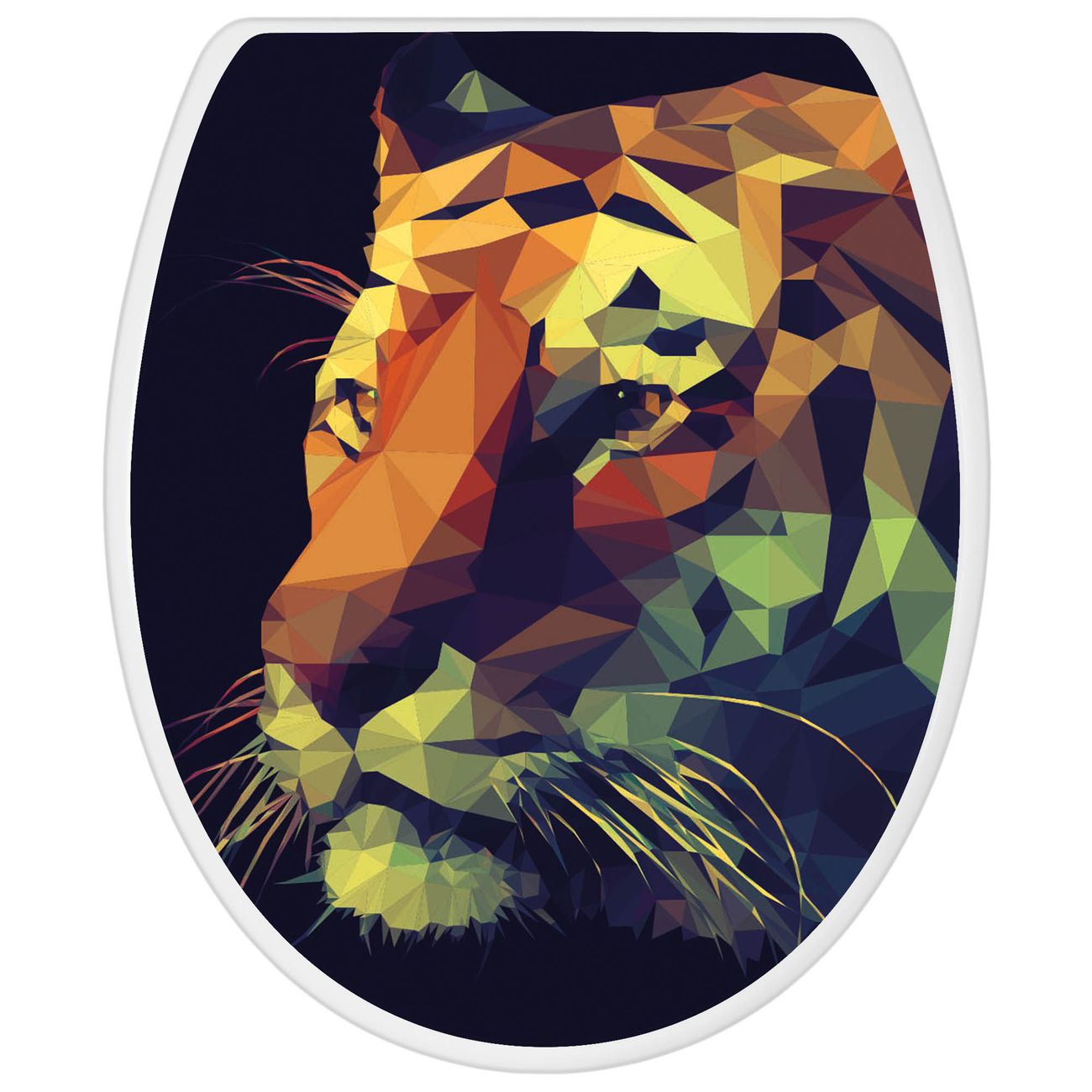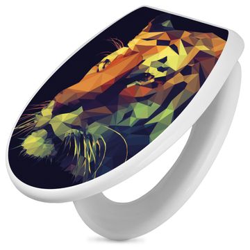 Toilettendeckel weiß mit Absenkautomatik Motiv Polygon Tiger