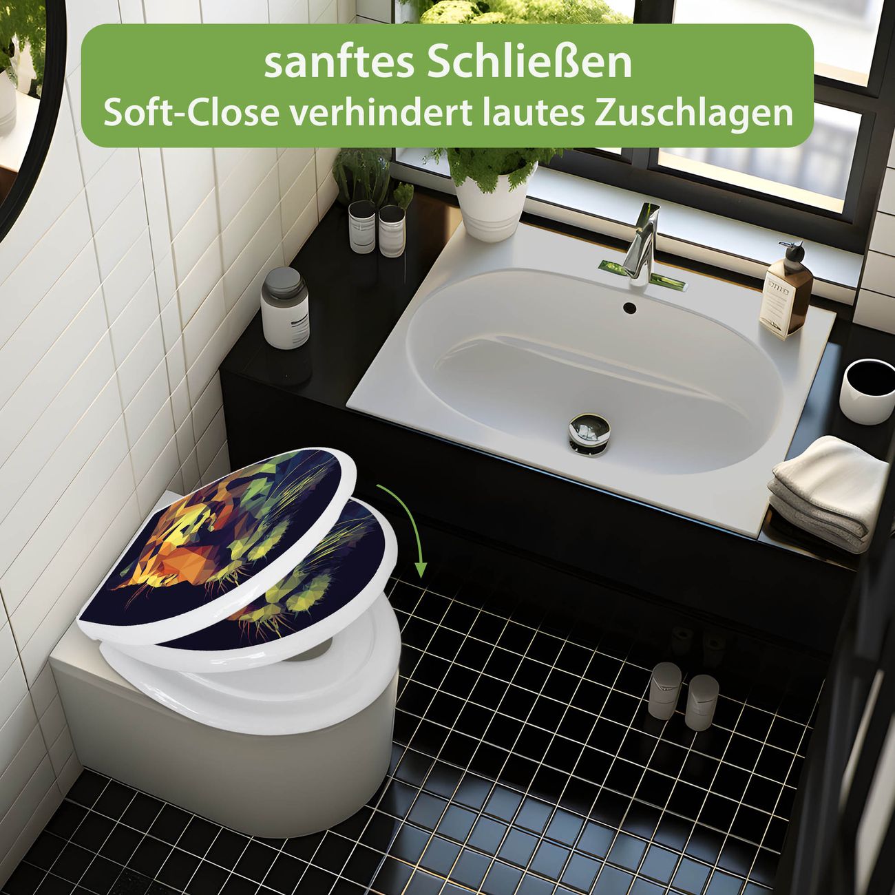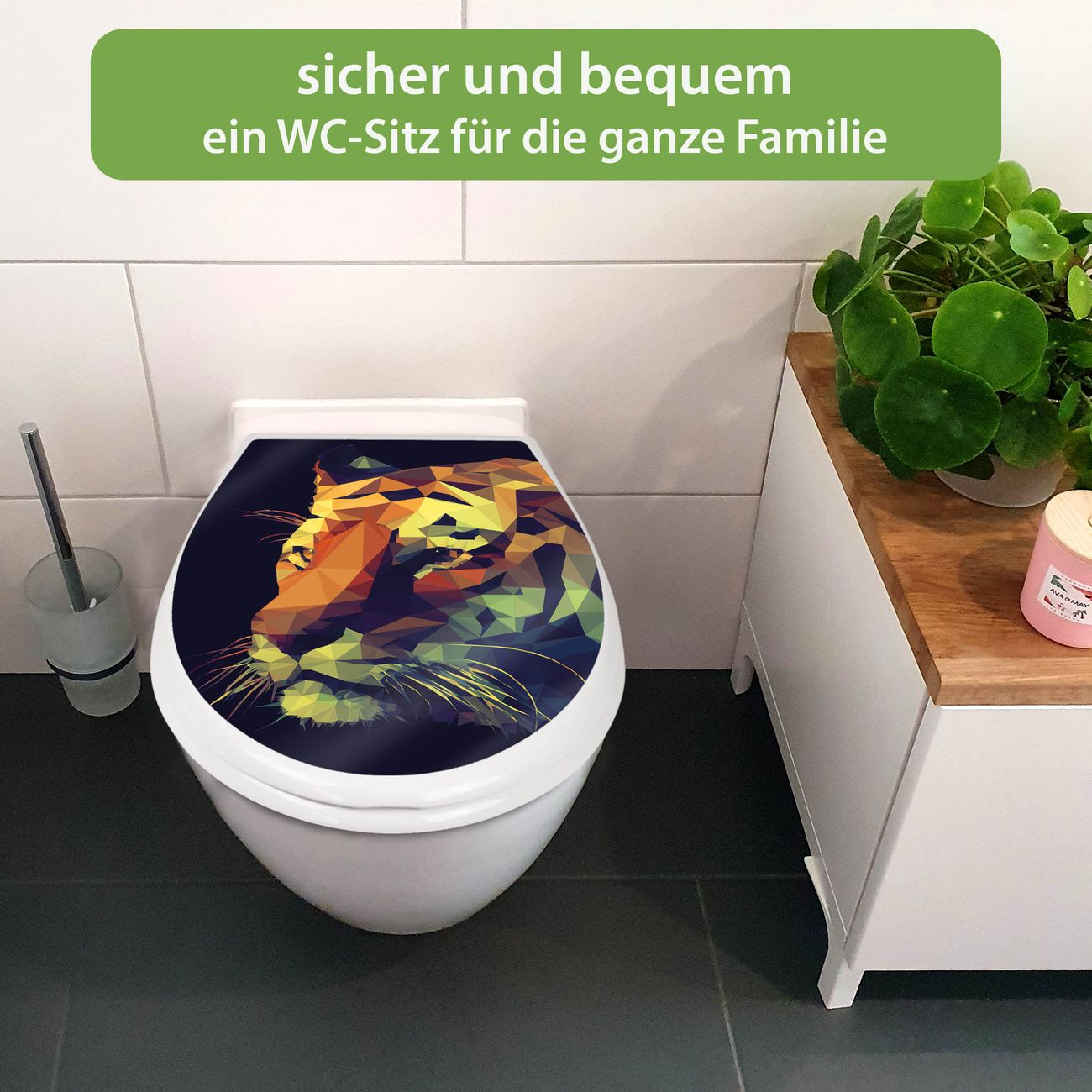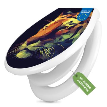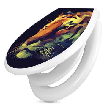 Toilettendeckel weiß mit Absenkautomatik Motiv Polygon Tiger