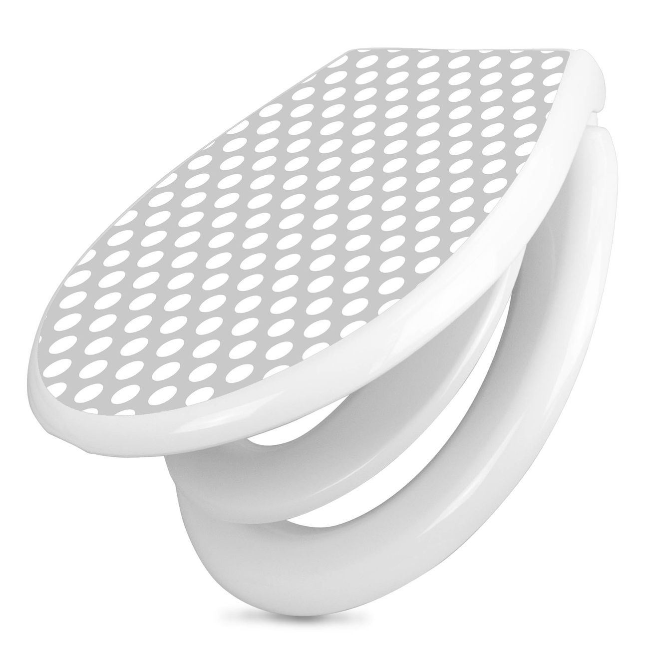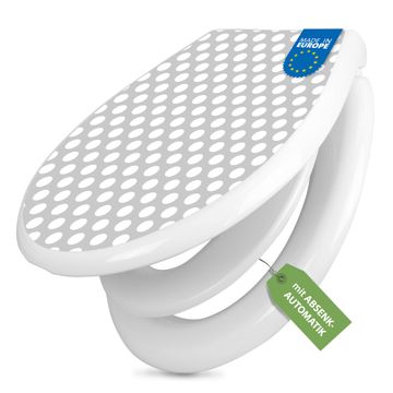 Toilettendeckel weiß mit Absenkautomatik Motiv Punkte Grau