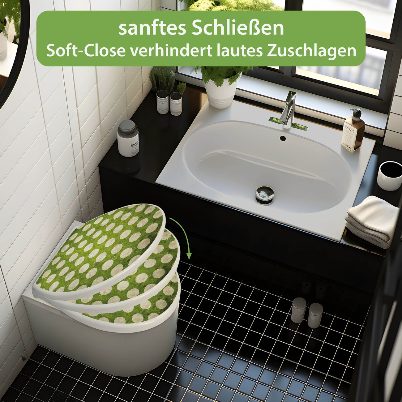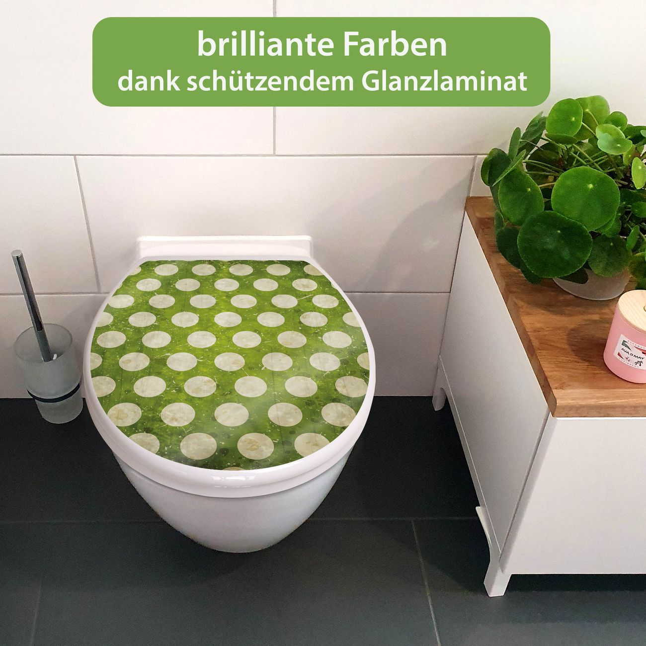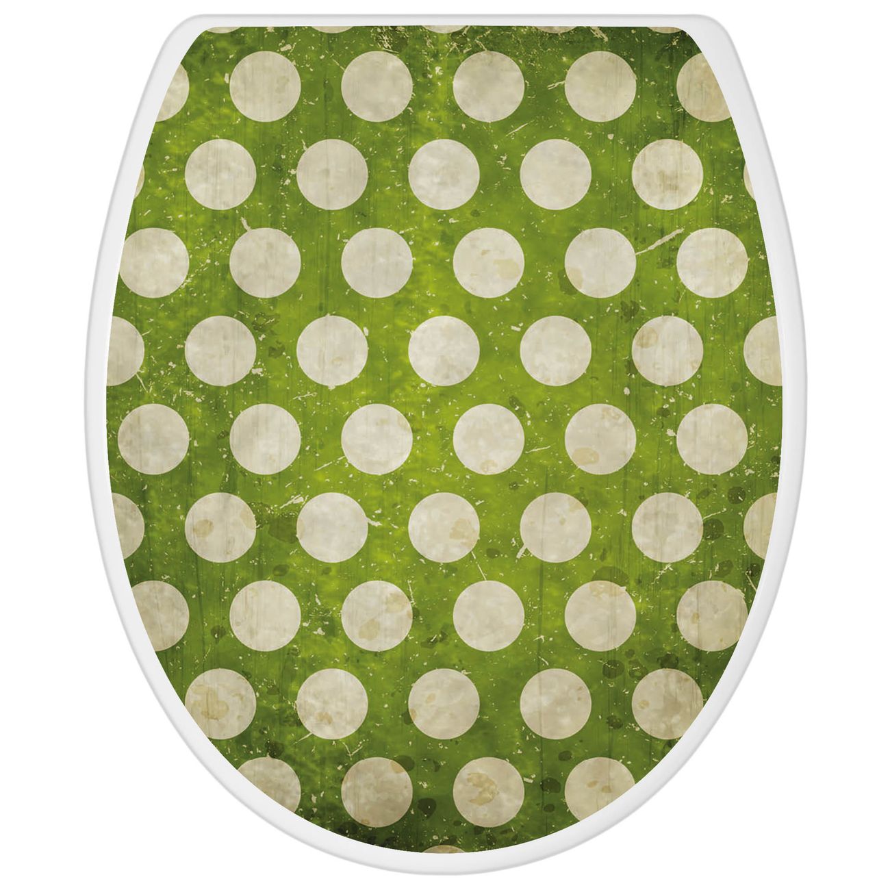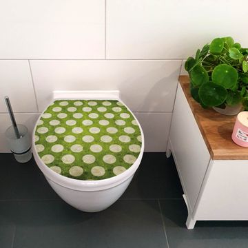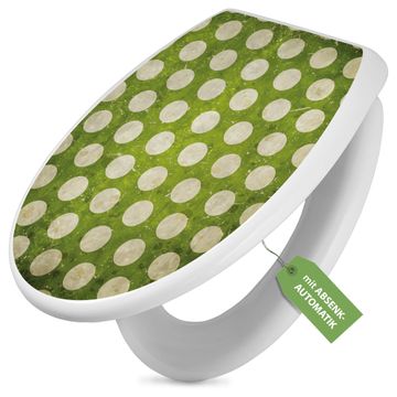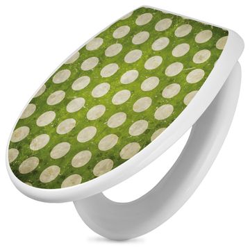 Toilettendeckel weiß mit Absenkautomatik Motiv Punkte Grün Vintage