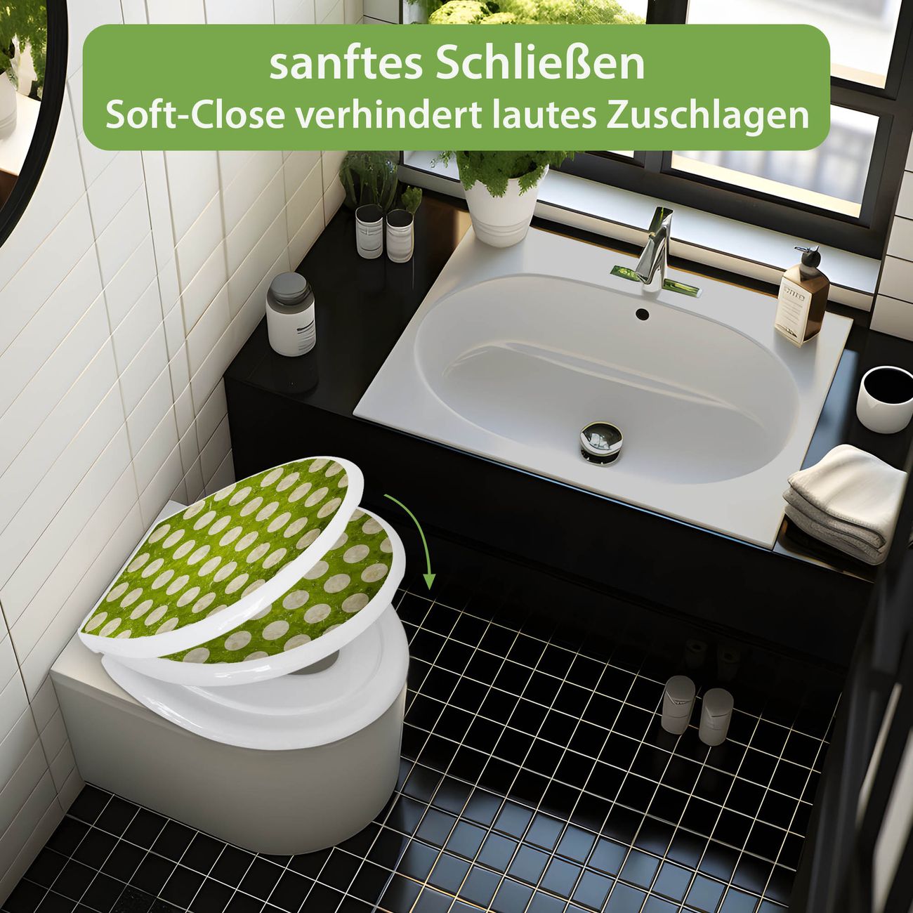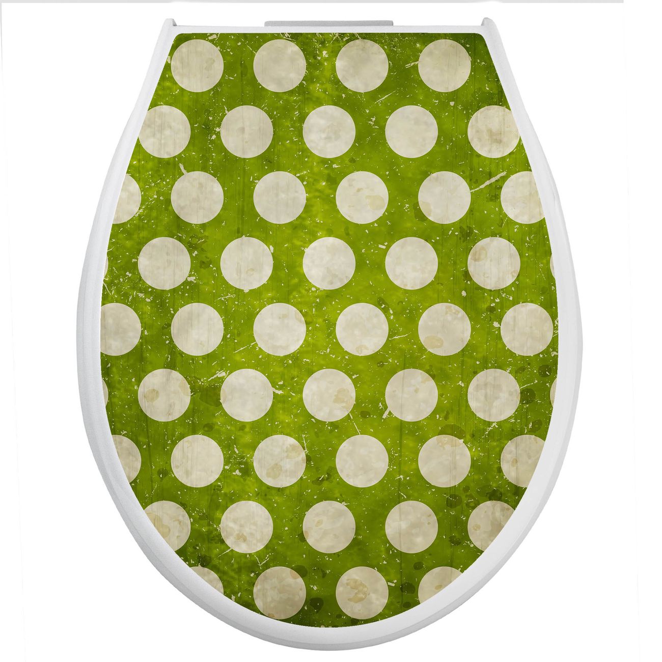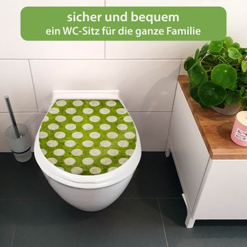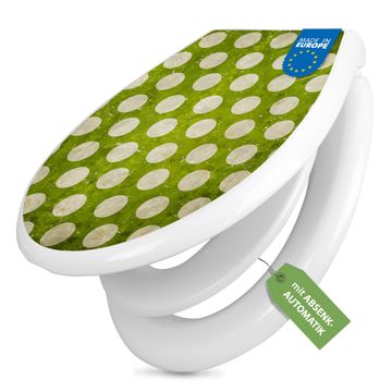 Toilettendeckel weiß mit Absenkautomatik Motiv Punkte Grün Vintage