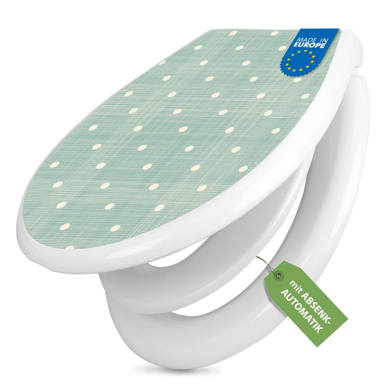 Toilettendeckel weiß mit Absenkautomatik Motiv Punkte Lindgrün