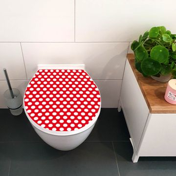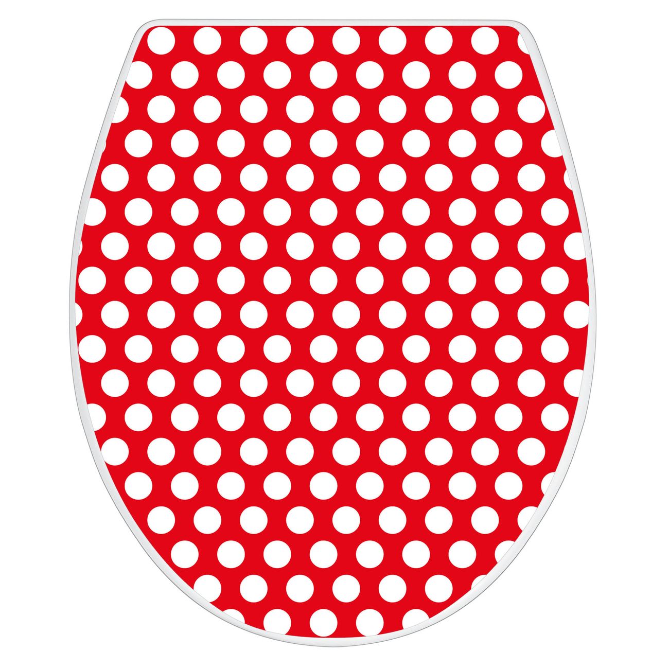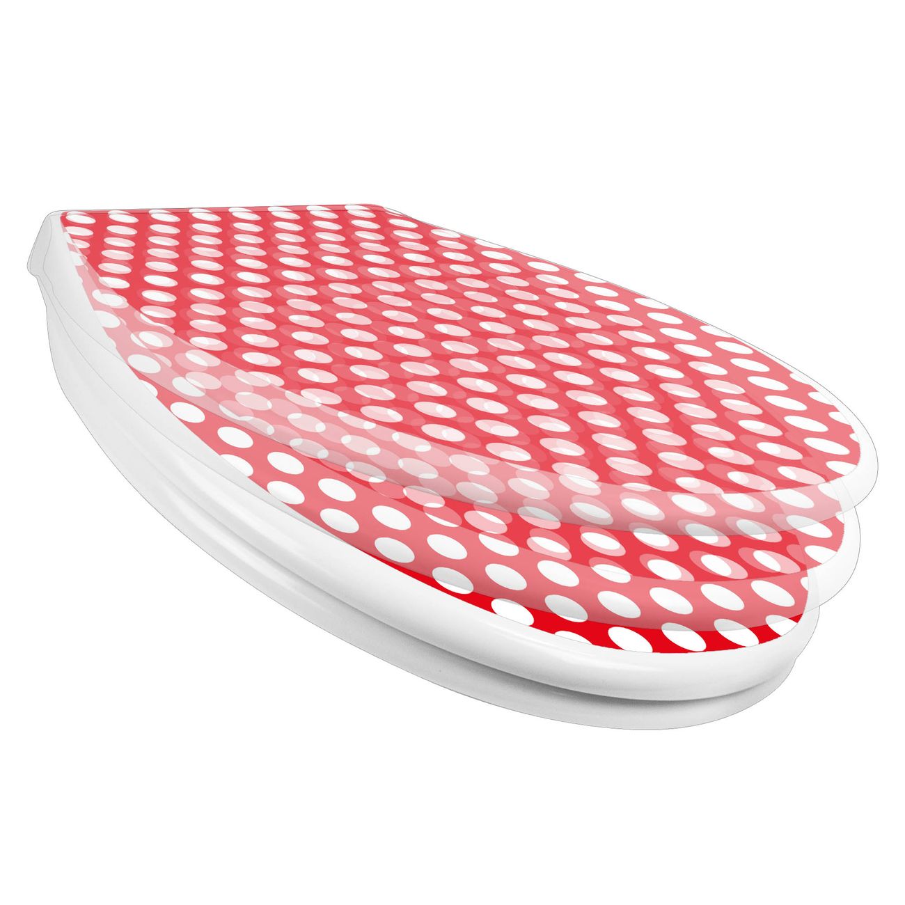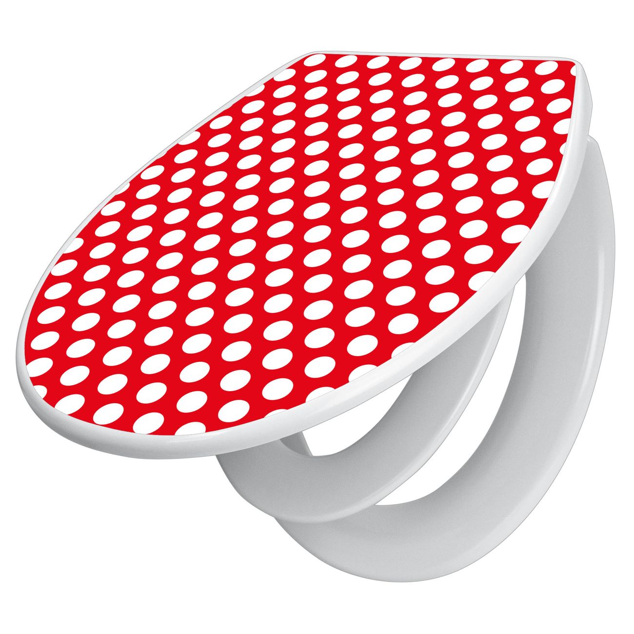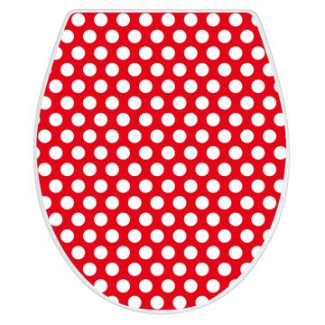 Toilettendeckel weiß mit Absenkautomatik Motiv Punkte Rot