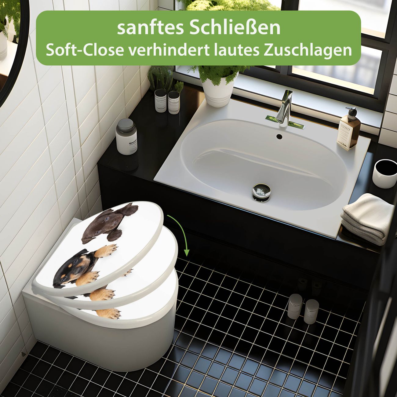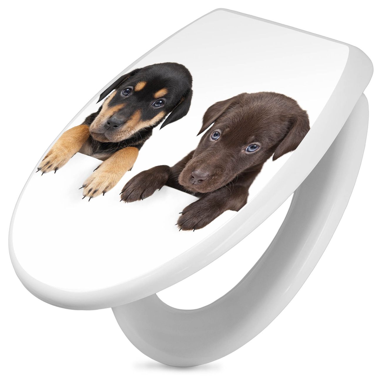 Toilettendeckel weiß mit Absenkautomatik Motiv Puppies