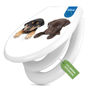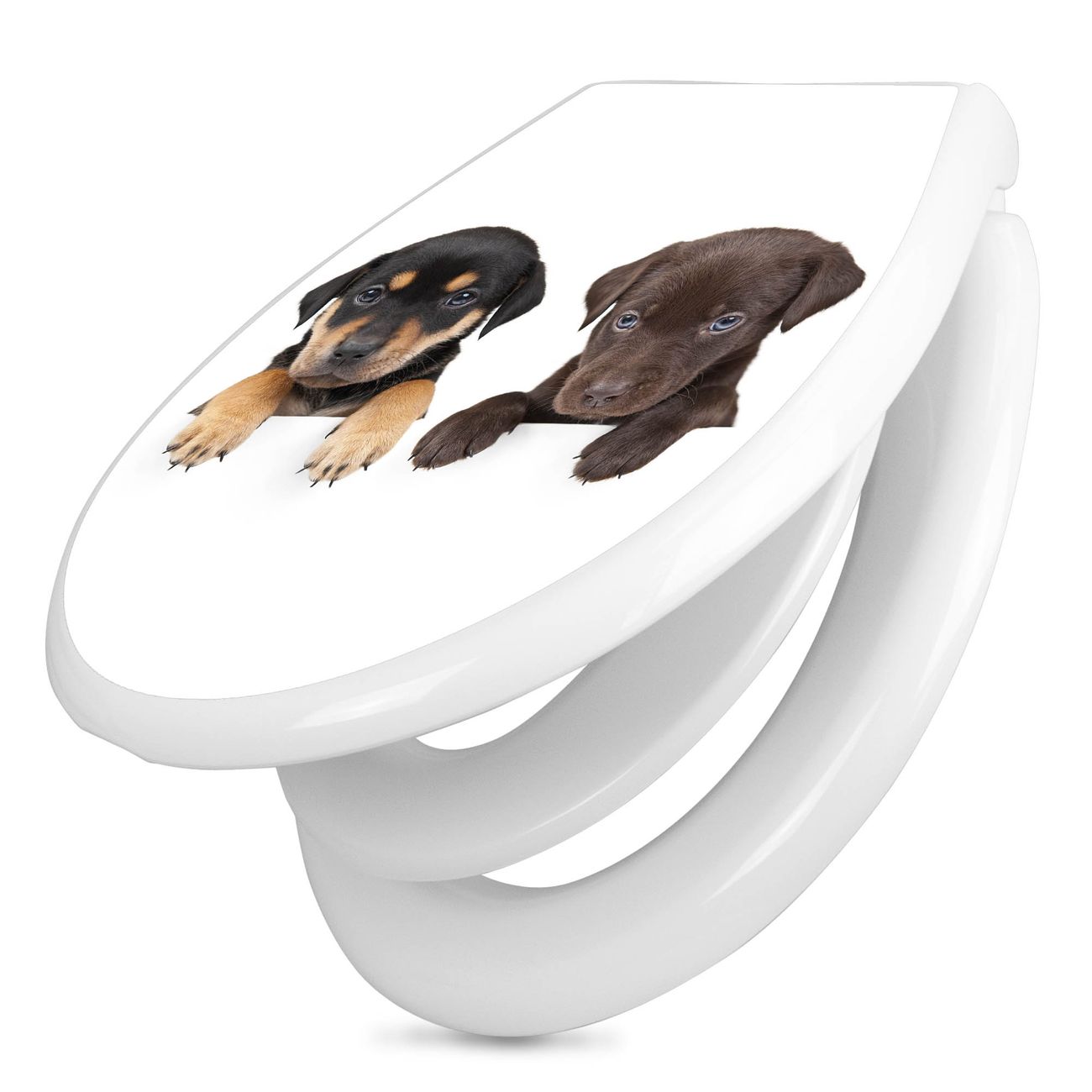 Toilettendeckel weiß mit Absenkautomatik Motiv Puppies