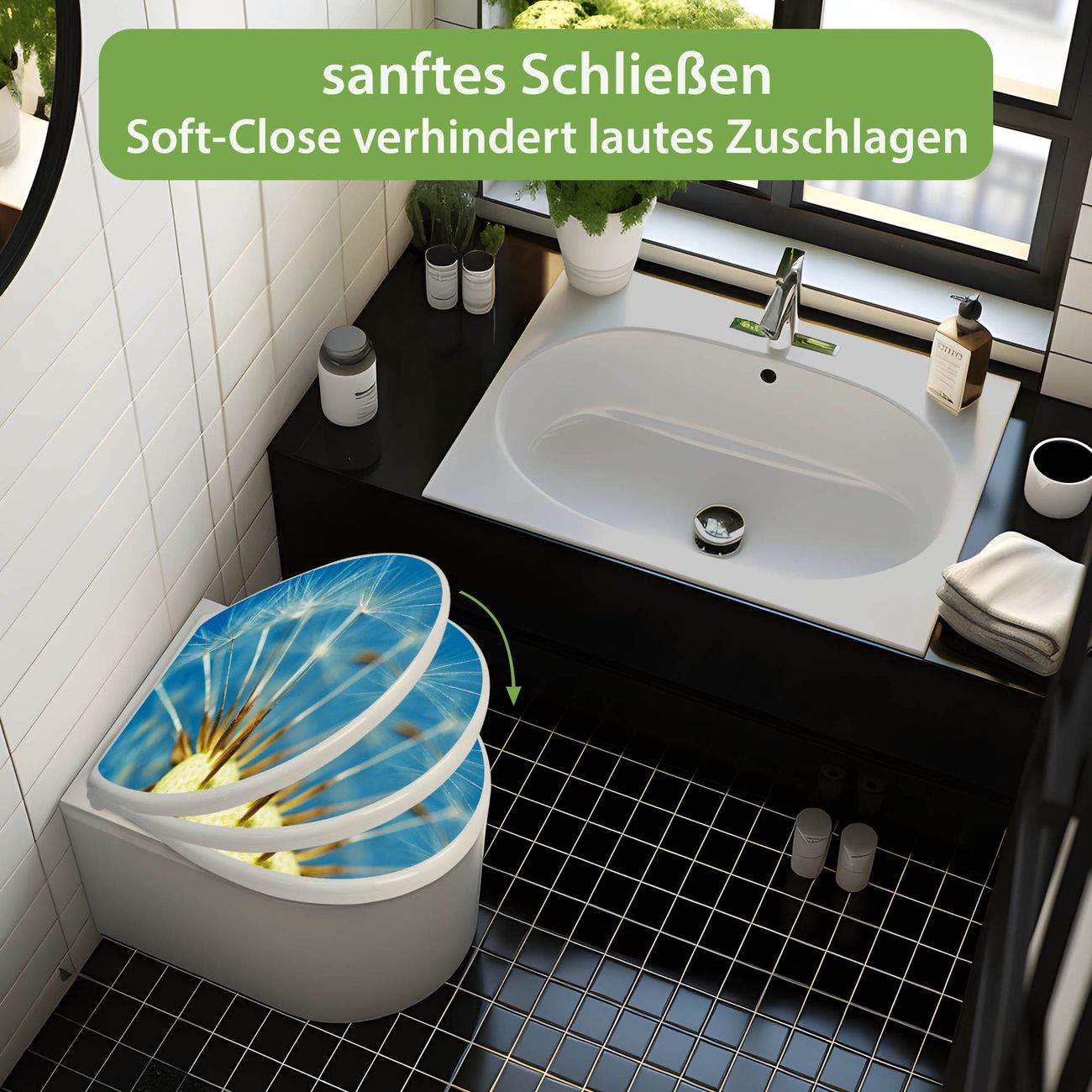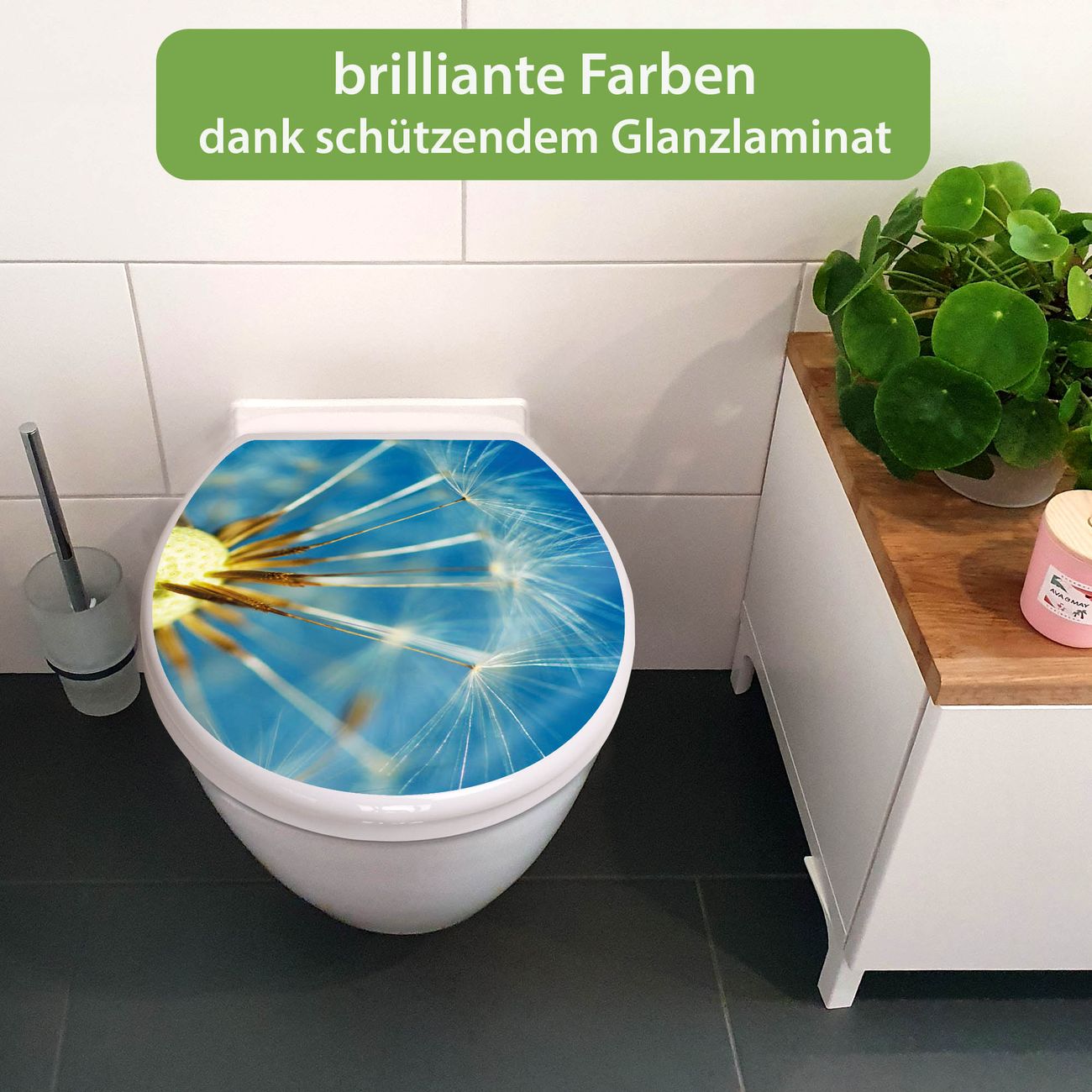 Toilettendeckel weiß mit Absenkautomatik Motiv Pusteblume Detail