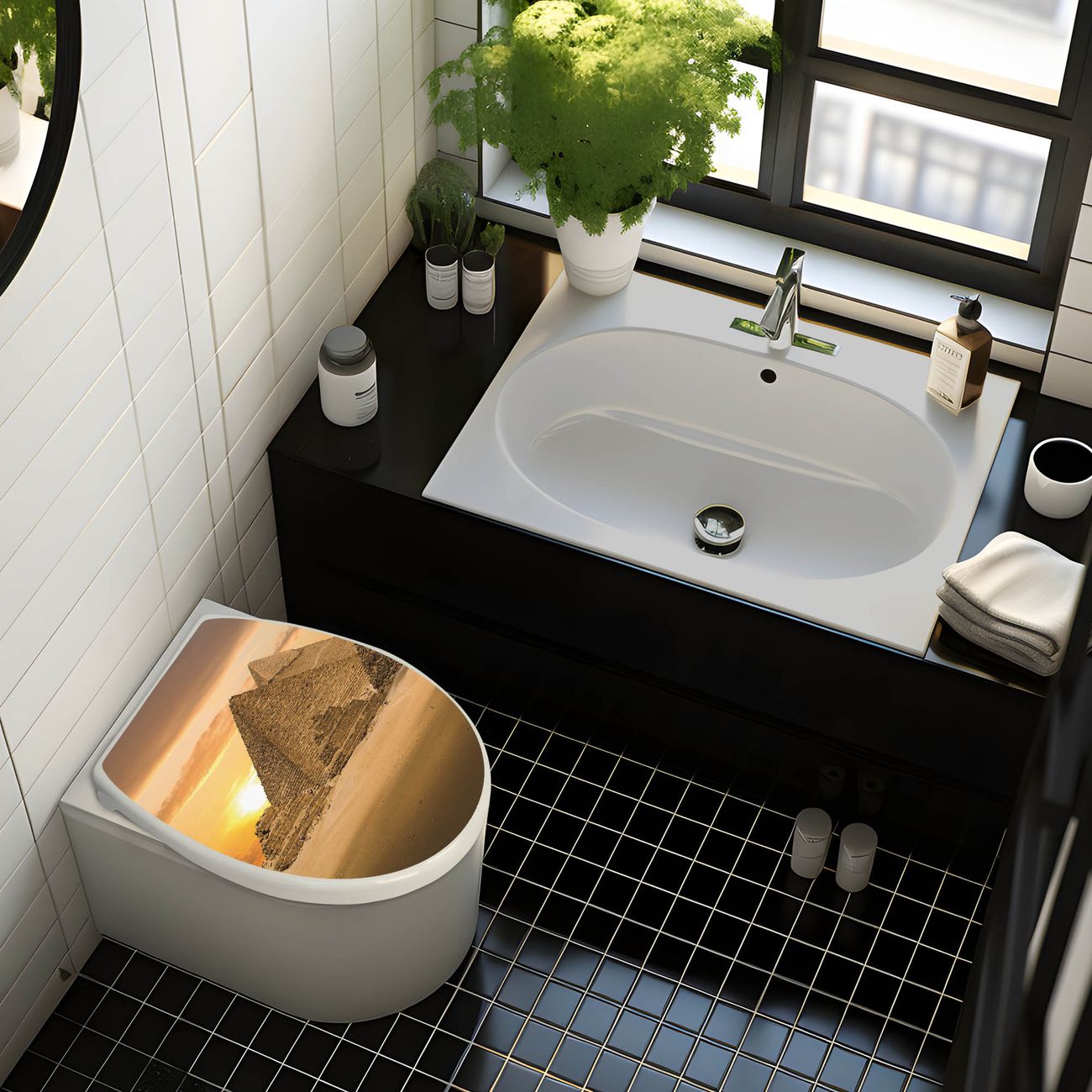 Toilettendeckel weiß mit Absenkautomatik Motiv Pyramiden