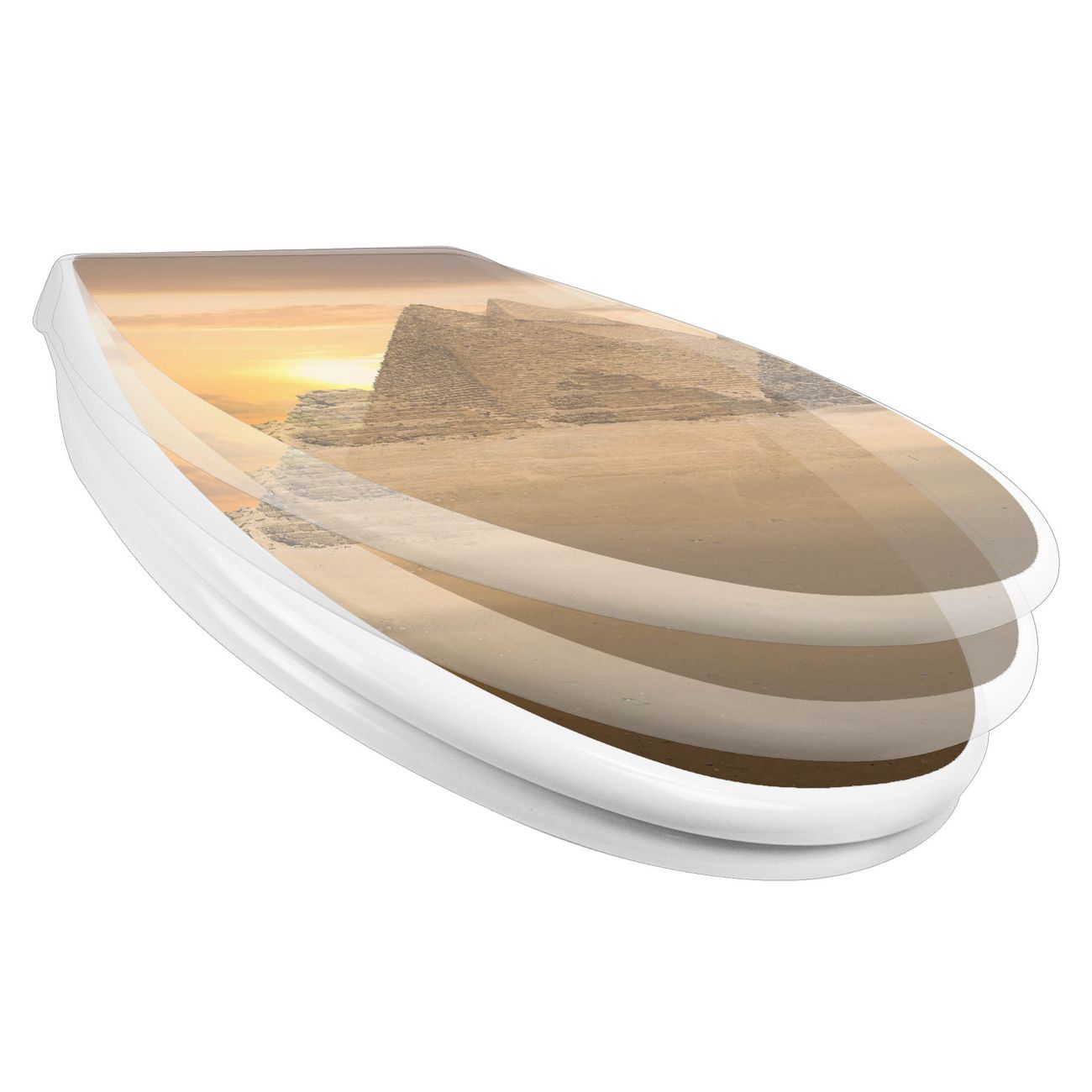 Toilettendeckel weiß mit Absenkautomatik Motiv Pyramiden