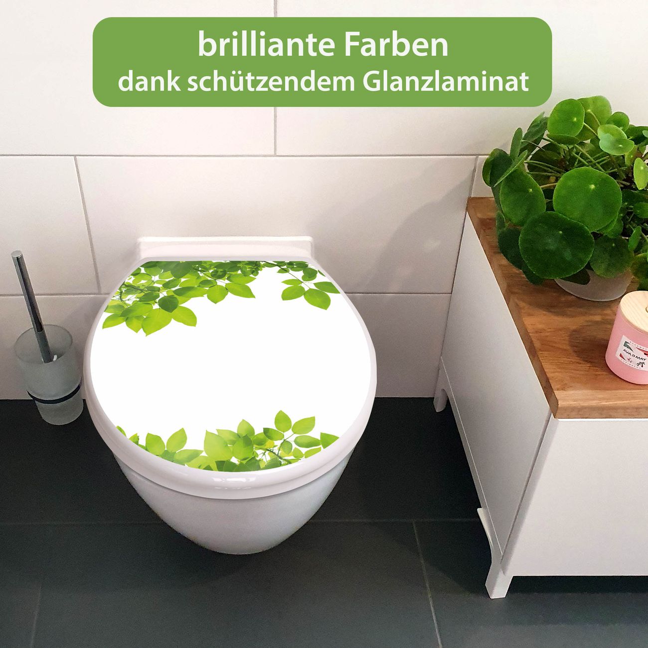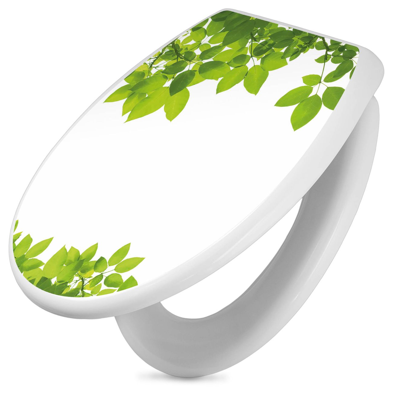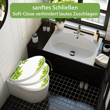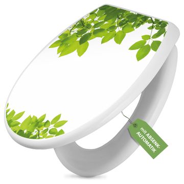 Toilettendeckel weiß mit Absenkautomatik Motiv Rahmen Blätter