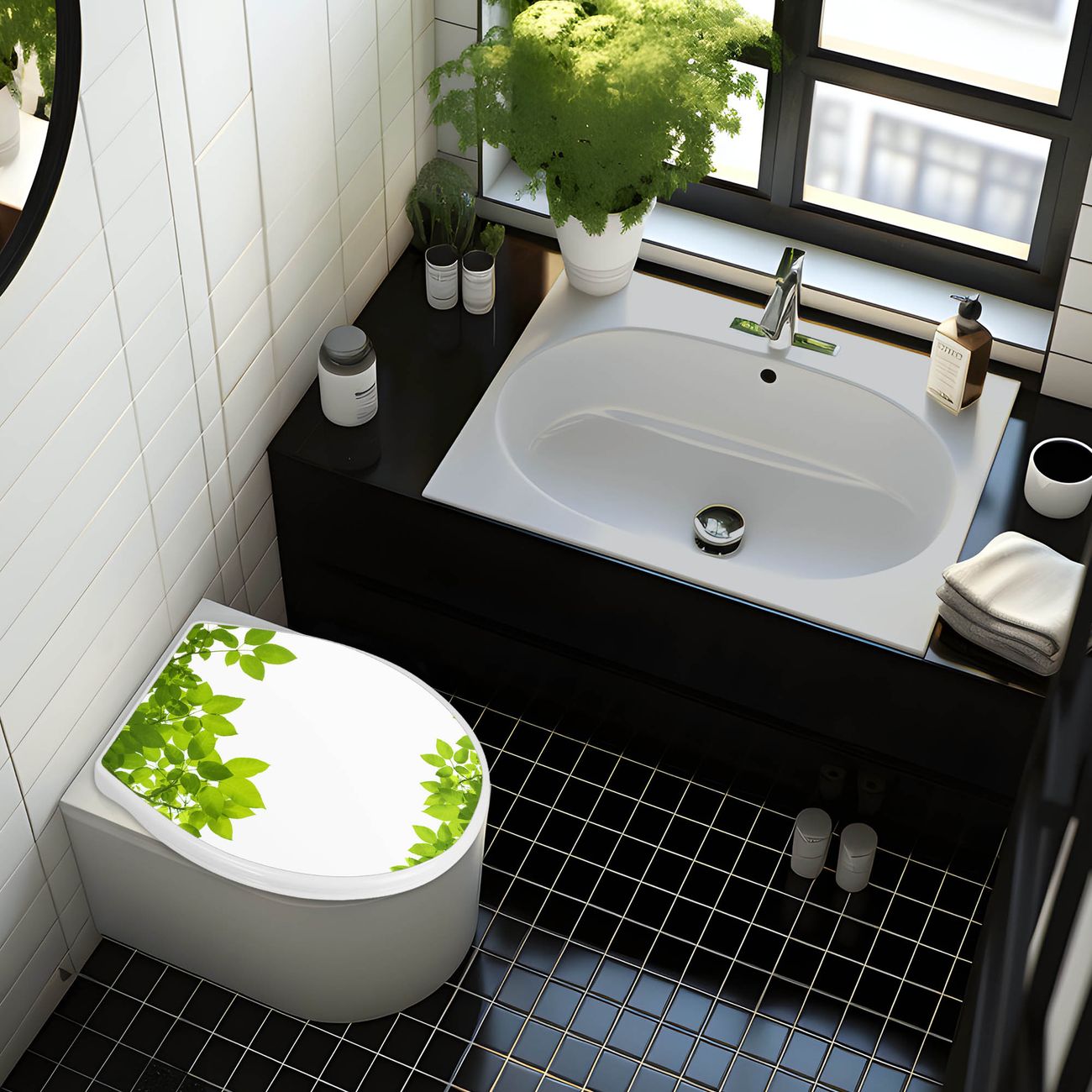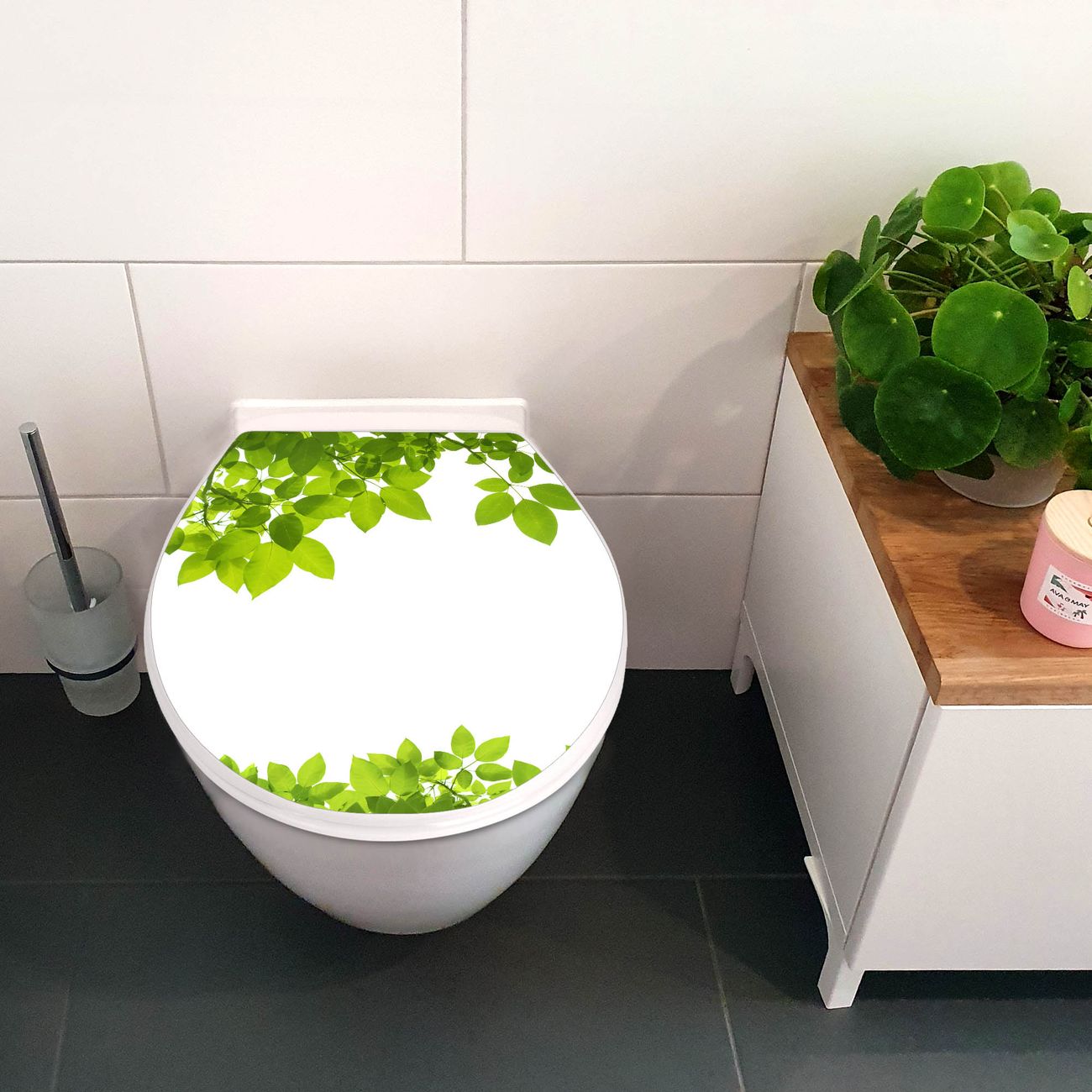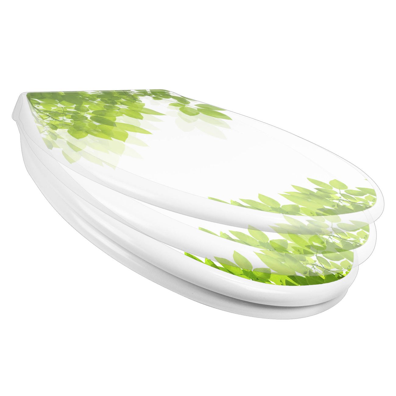 Toilettendeckel weiß mit Absenkautomatik Motiv Rahmen Blätter