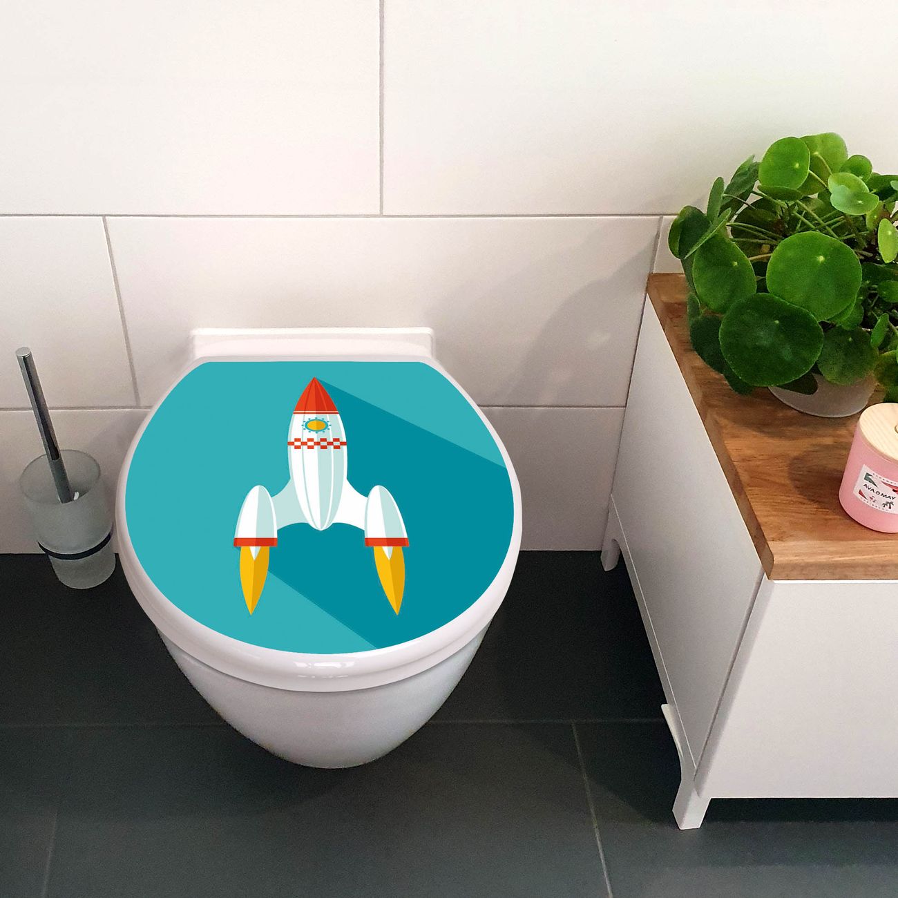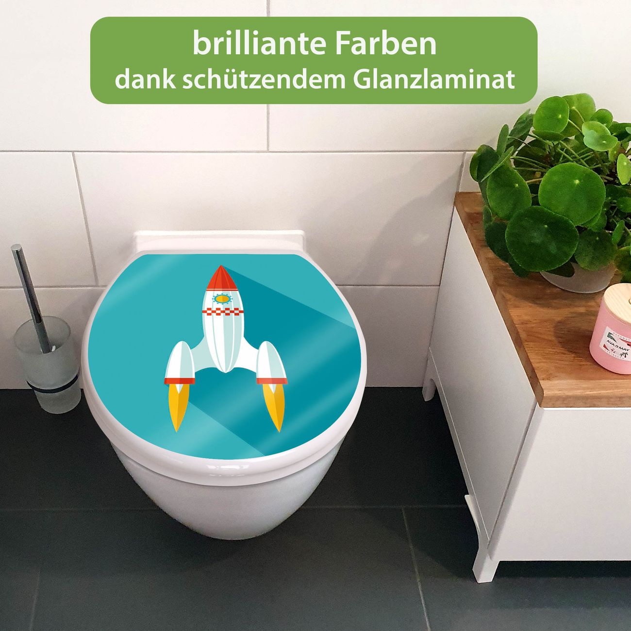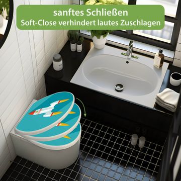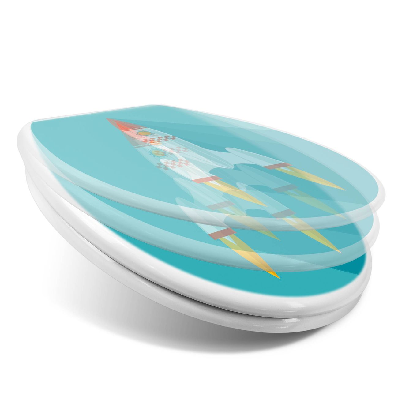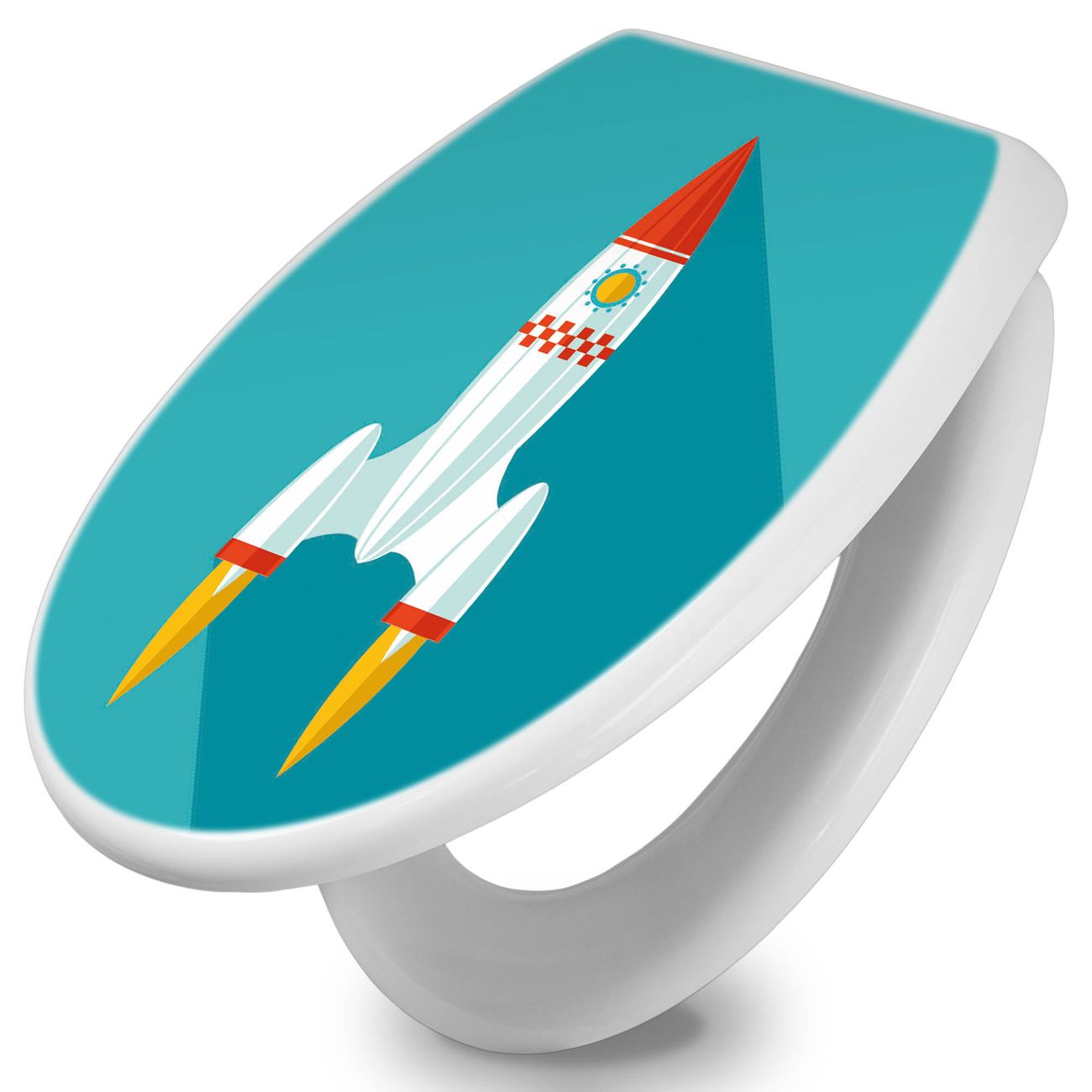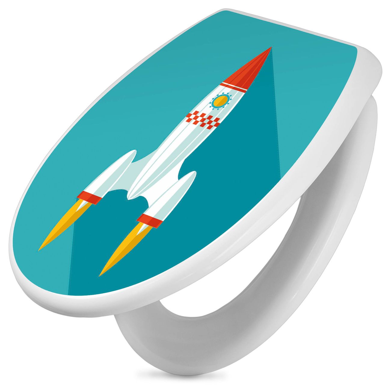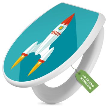 Toilettendeckel weiß mit Absenkautomatik Motiv Rakete