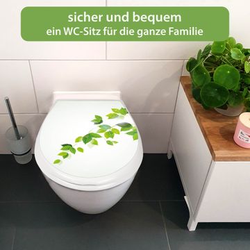 FUNKTION:Mit dem banjado Familien WC Sitz mit Absenkautomatik und dem Motiv Motiv Ranke Gelb Weiß verbinden Sie Design mit Funktionalität. Sie erhalten den Toilettendeckel in bewährt guter Qualität mit Montagematerial passend auf alle Euro-WC-Becken. Die Gesamtgröße beträgt 37,1cm x 44,9cm x 5cm, die Grundfarbe ist weiß.</p> DESIGN:Der Klodeckel in weiß mit Motiv Motiv Ranke Gelb Weiß hat eine ansprechende Optik, eine besondere Form und ist sehr stabil. Das Motiv besteht aus einer farbbrillianten Motivfolie, die durch ein Schutzlaminat zusätzlich vor Kratzern schützt. Der integrierte Kindersitz fügt sich harmonisch ein. DETAILS:Der Toilettensitz mit Soft Close besteht aus hochwertigem Polypropylen, ist geruchlos, ungiftig und kann mit handelsüblicher Seife gereinigt werden. Die Montage kann von von oben oder von unten erfolgen und ist kinderleicht. NUTZEN:Mit Hilfe der detaillierten Aufbauanleitung ermöglichen wir eine schnelle und unkomplizierte Montage. Die banjado Klobrille ist universell geeignet für alle Euro-WC-Schüsseln. Der Kindersitz kann unkompliziert entfernt werden. BANJADO:Ihr WC-Deckel wird in Sachsen in einer kleinen Manufaktur von Hand veredelt. Die Motivfolie ist lösungsmittelfrei und schutzlaminiert für einen langen Halt. Wir wünschen viel Freude bei der Auswahl eines schönen Motivs.