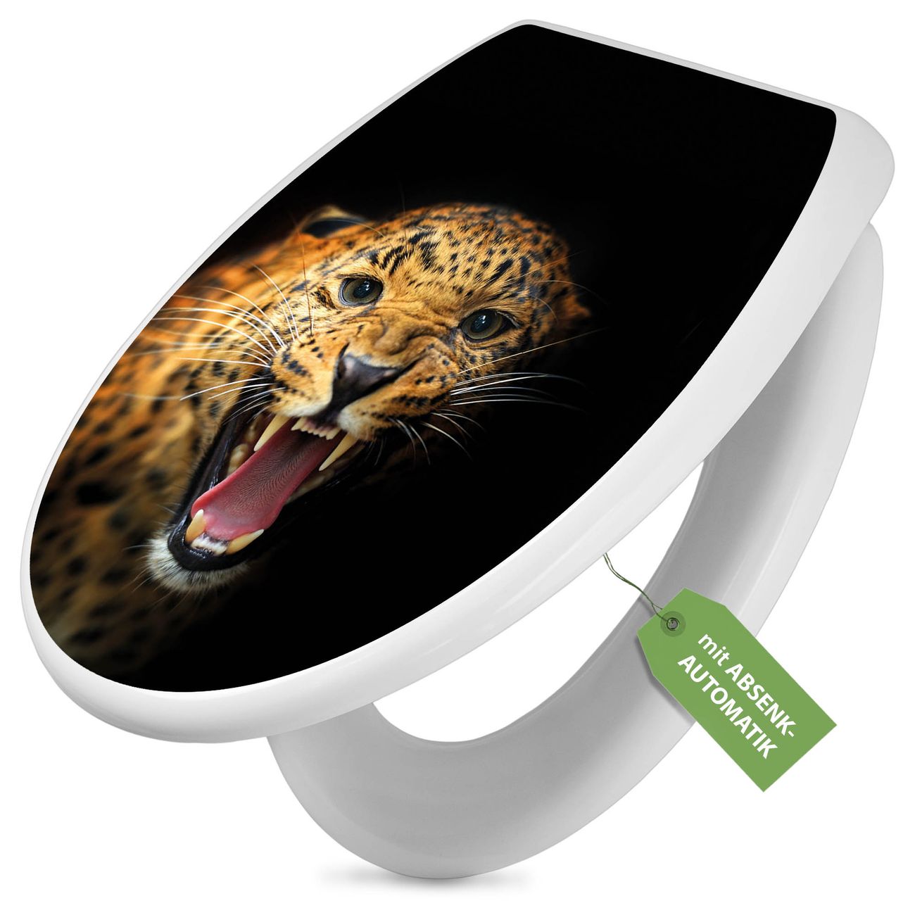 Toilettendeckel weiß mit Absenkautomatik Motiv Raubkatze