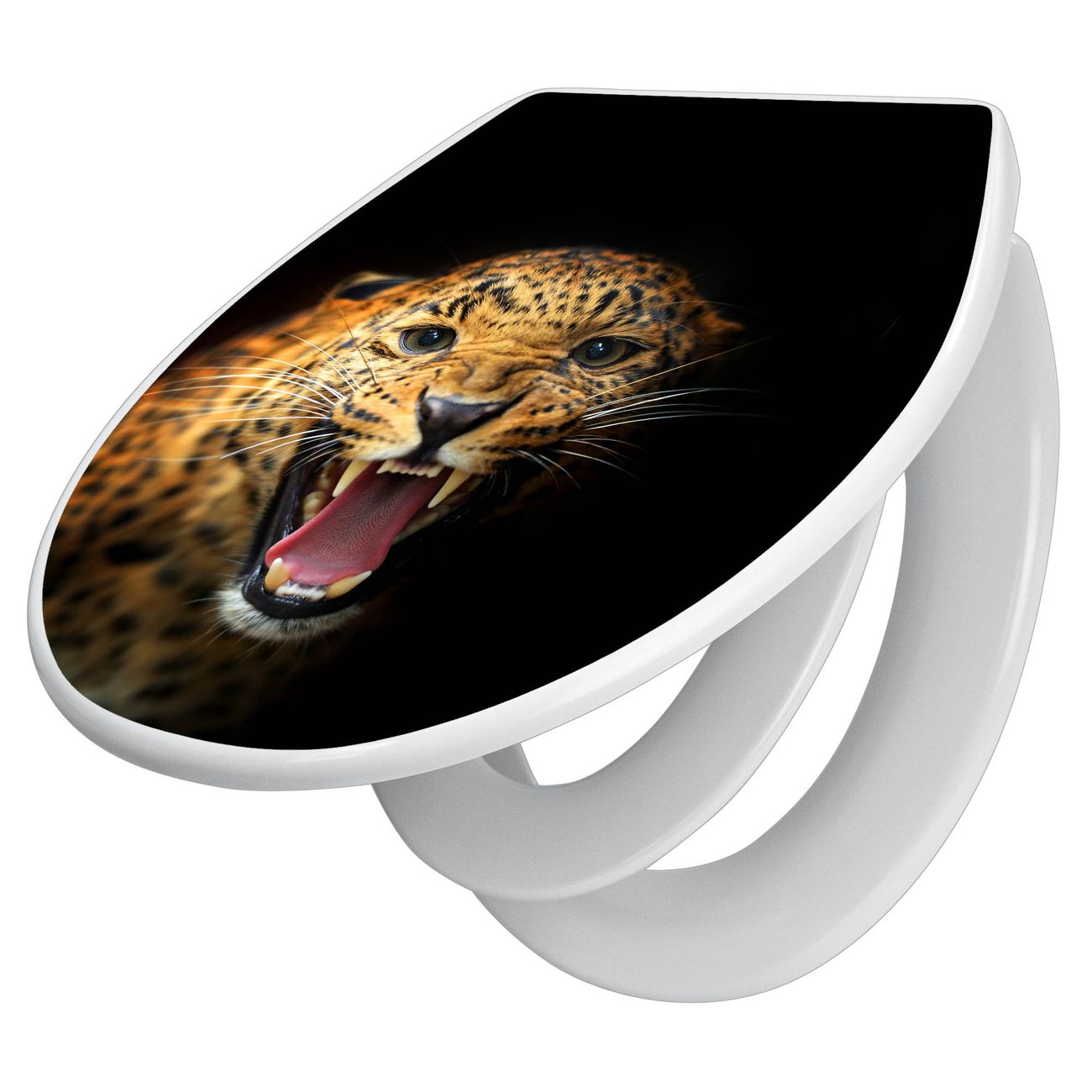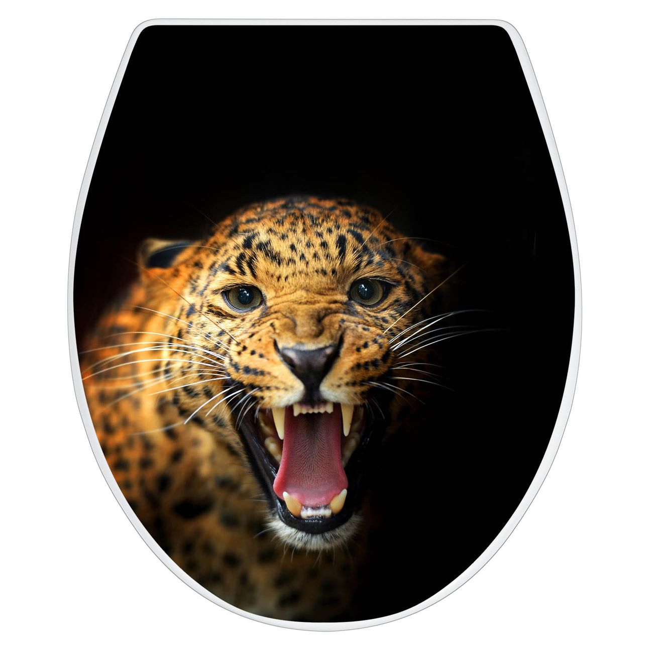 Toilettendeckel weiß mit Absenkautomatik Motiv Raubkatze